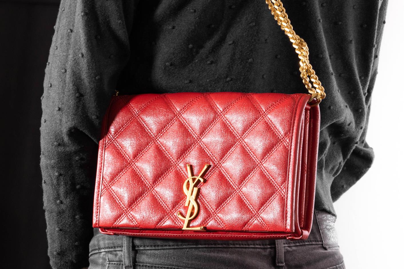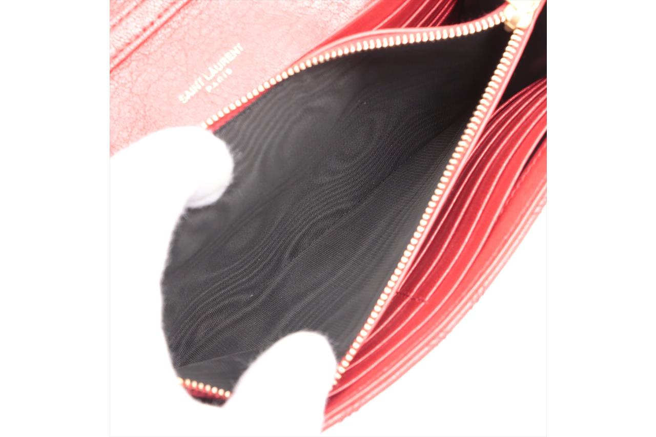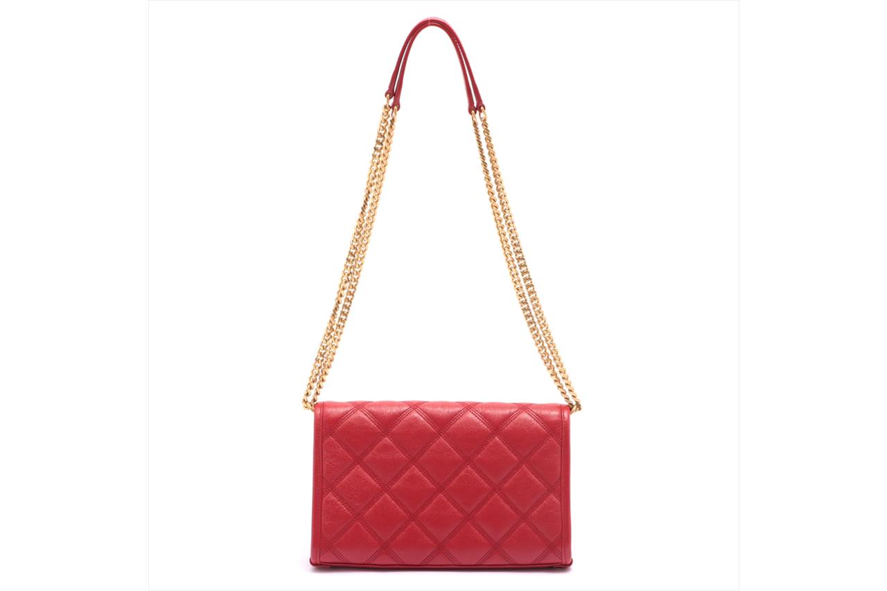 Saint Laurent Becky Quilted Wallet on Chain. Red lambskin leather. Gold-tone hardware. Featuring logo plaque, diamond quilting, chain-link shoulder strap and internal zip-fastening pocket. Approximate dimensions: 23cm (L) x 14cm (H) x 4cm (D) and 34cm strap drop. Accompanied by YSL box and dust bag. With Entrupy Certificate of Authenticity. (Pre-owned)