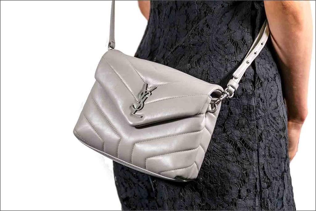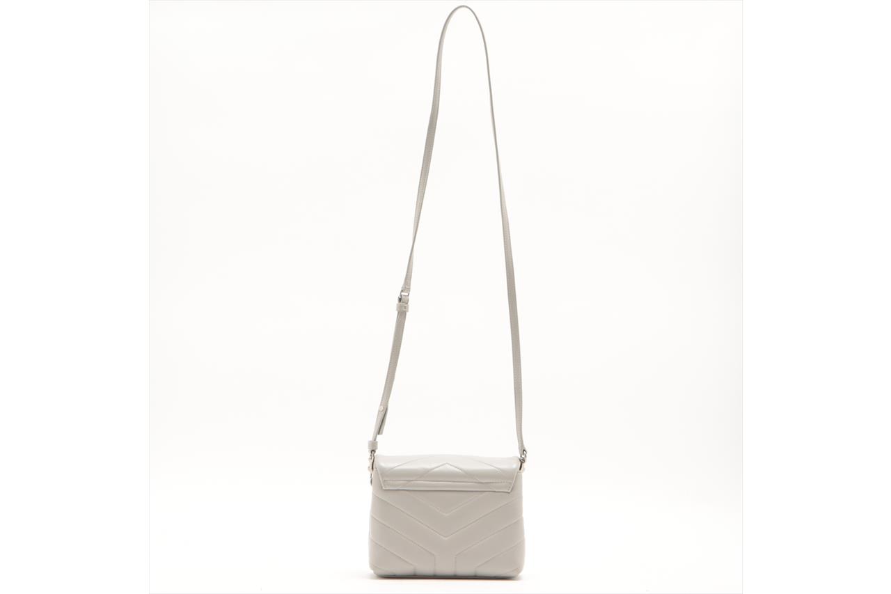 Saint Laurent Loulou Toy Shoulder Bag in Gray Calfskin Quilted 'Y' Leather. Featuring silver tone hardware, front flap decorated with Y quilted overstitching and metal YSL initials, magnetic snap closure, interior with two main compartments, one zip pocket, and three card slots. Approximate dimensions: 19.5cm (L) x 14cm (H) x 7cm (D), and 57-60cm adjustable shoulder strap drop. Accompanied by Saint Laurent dust bag and box. With Entrupy Certificate of Authenticity. (Pre-owned)