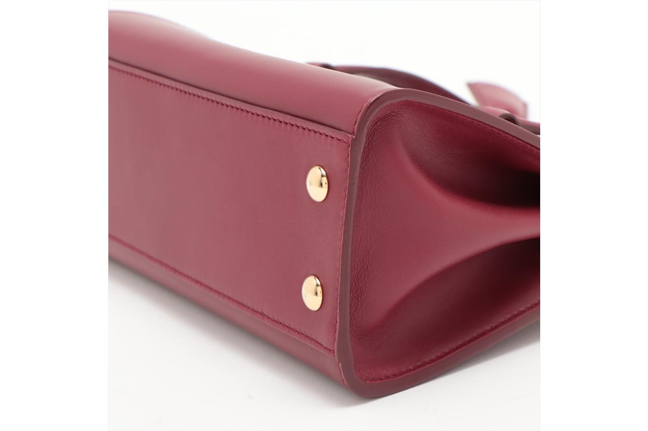 Salvatore Ferragamo Gancini Leather 2way shoulder crossbody handbag in Bordeaux color. Featuring gold-tone hardware. Approximate dimensions: 20cm (L) x 14.5cm (H) x 9.5cm (D), 63cm shoulder strap and 7.5cm handle drop. With Entrupy Certificate of Authenticity. Accompanied with Salvatore Ferragamo box and dust bag. (Pre-owned)