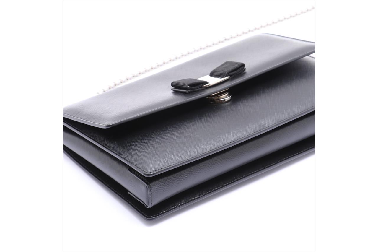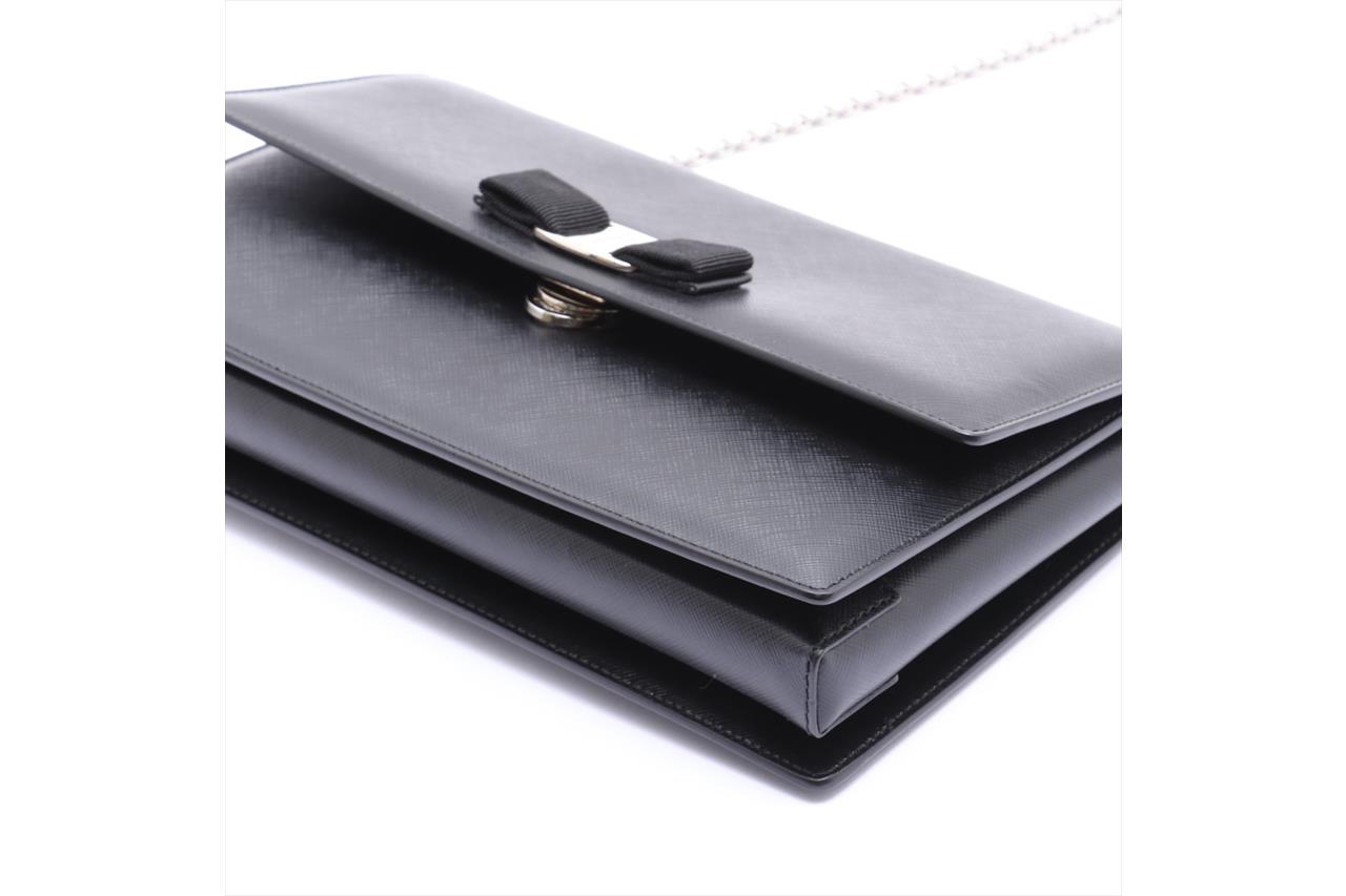 Salvatore Ferragamo Vara Black Leather Shoulder Bag. With bow detailing and gold-tone hardware. Fold over top, press-stud fastening, and chain-link shoulder strap. Made in Italy. Approximate dimensions: 26cm (L) x 16cm (H) x 3.5cm (D). (Pre-owned)