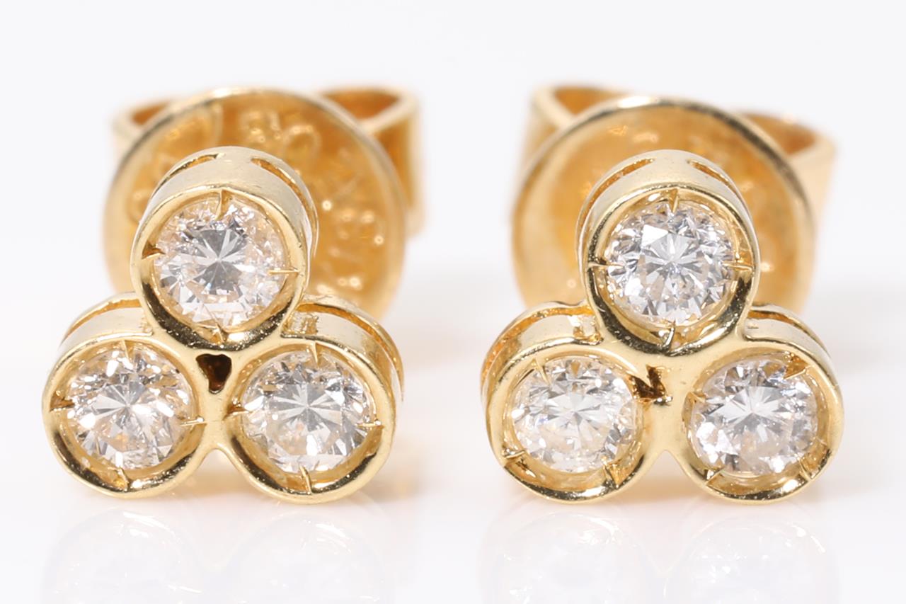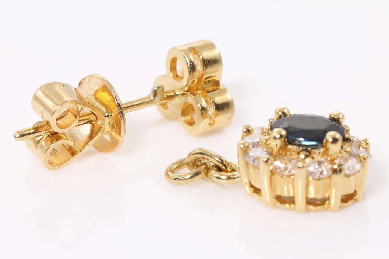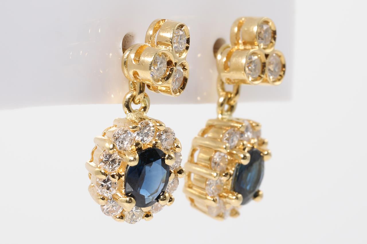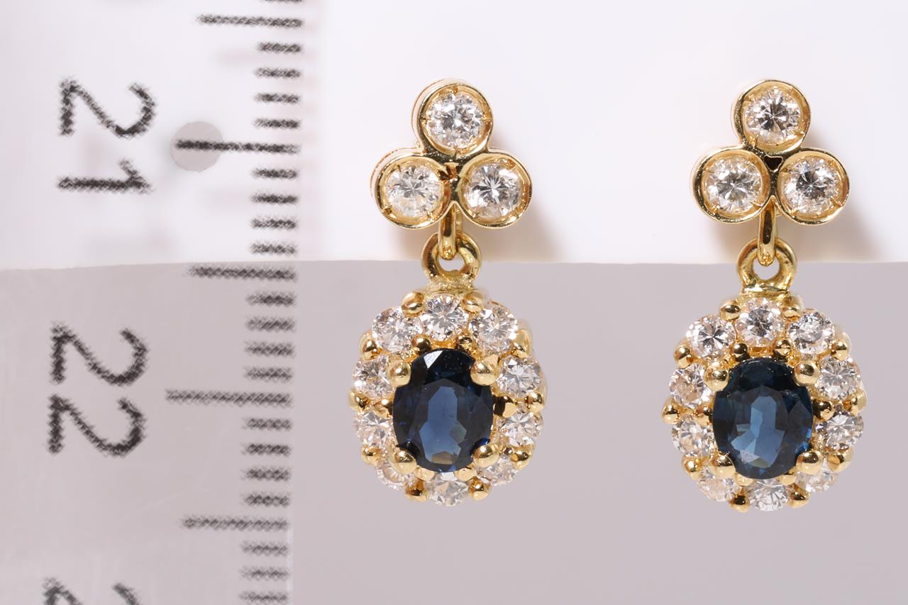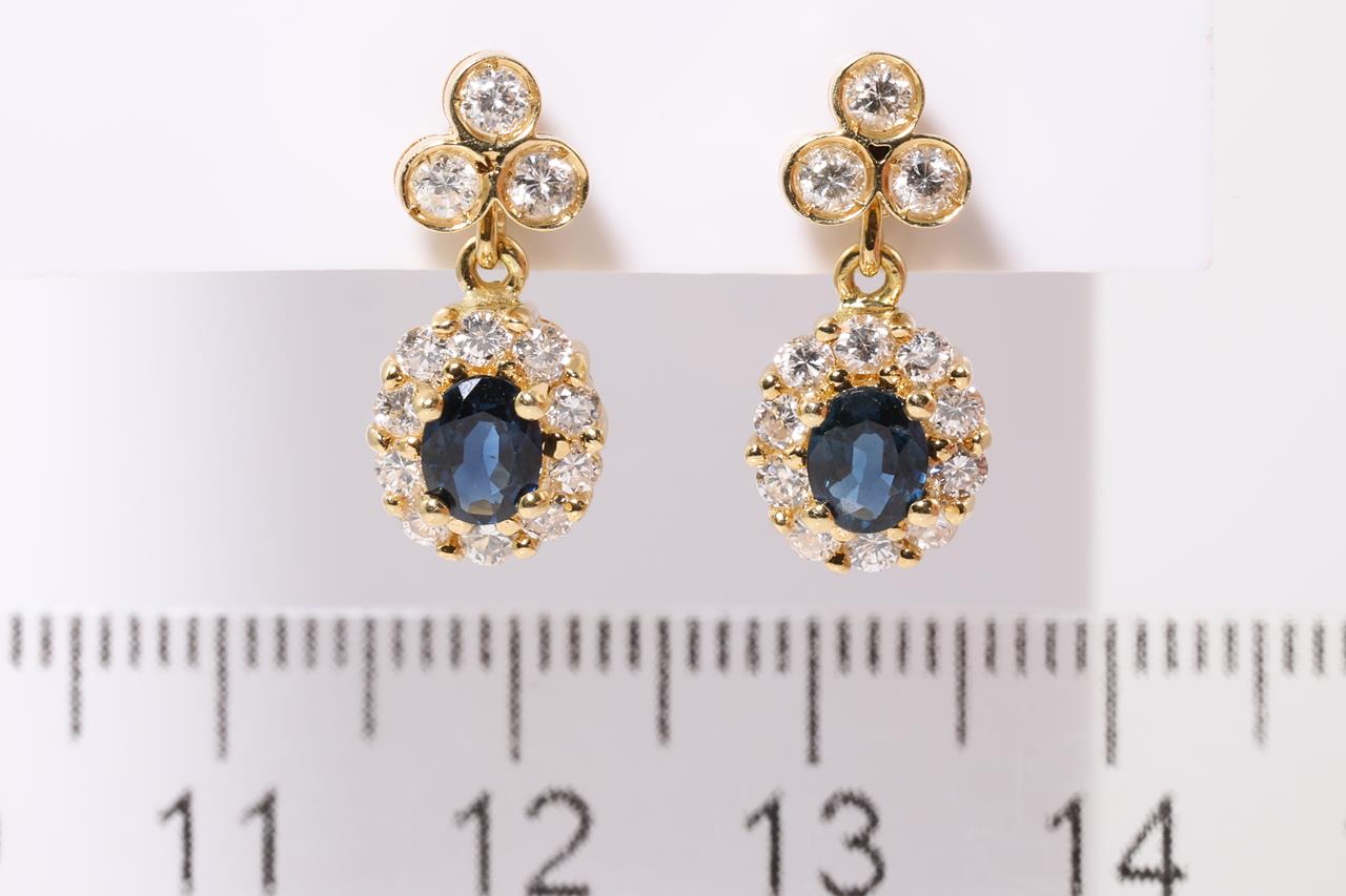 Sapphire and Diamond detachable earrings with oval blue Sapphires totalling approximately 0.60cts and Diamonds totalling approximately 0.90cts (Estimated grading: H SI-P1). 18ct yellow gold. Weight: 5.1g (Pre-owned)