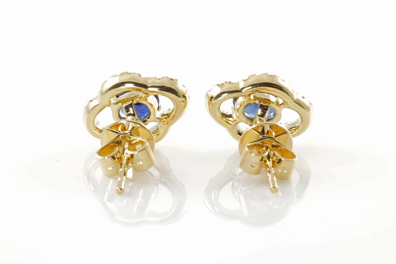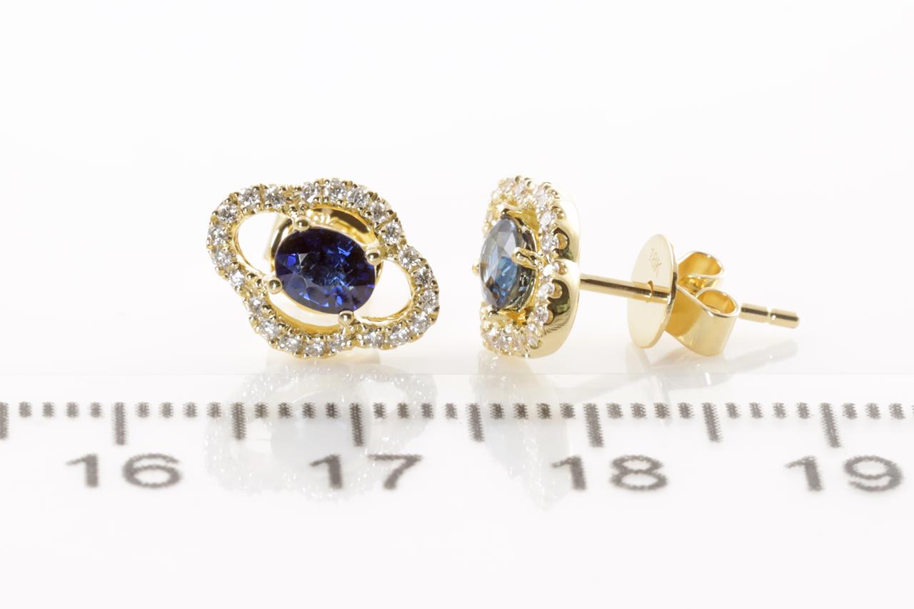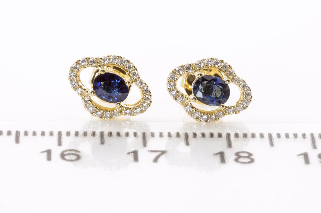 Sapphire and Diamond earrings with oval blue Sapphire totalling 0.70cts and Diamonds totalling 0.16cts. 18ct yellow gold. Weight: 2.2g. (New)