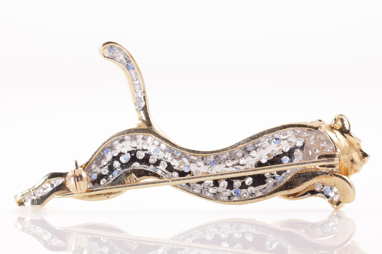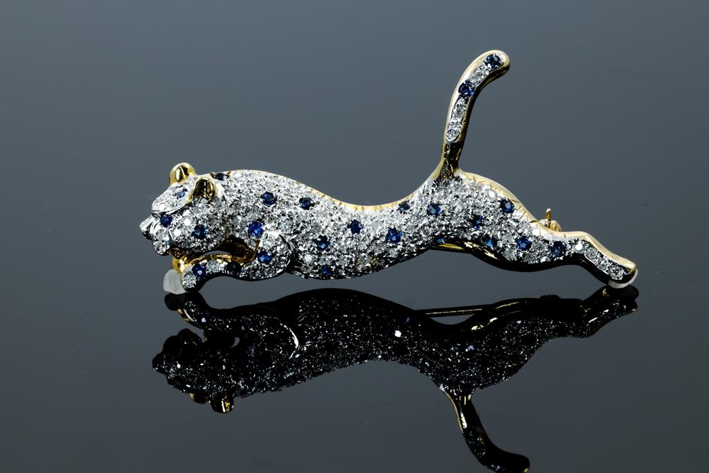 Sapphire and Diamond Panther Brooch