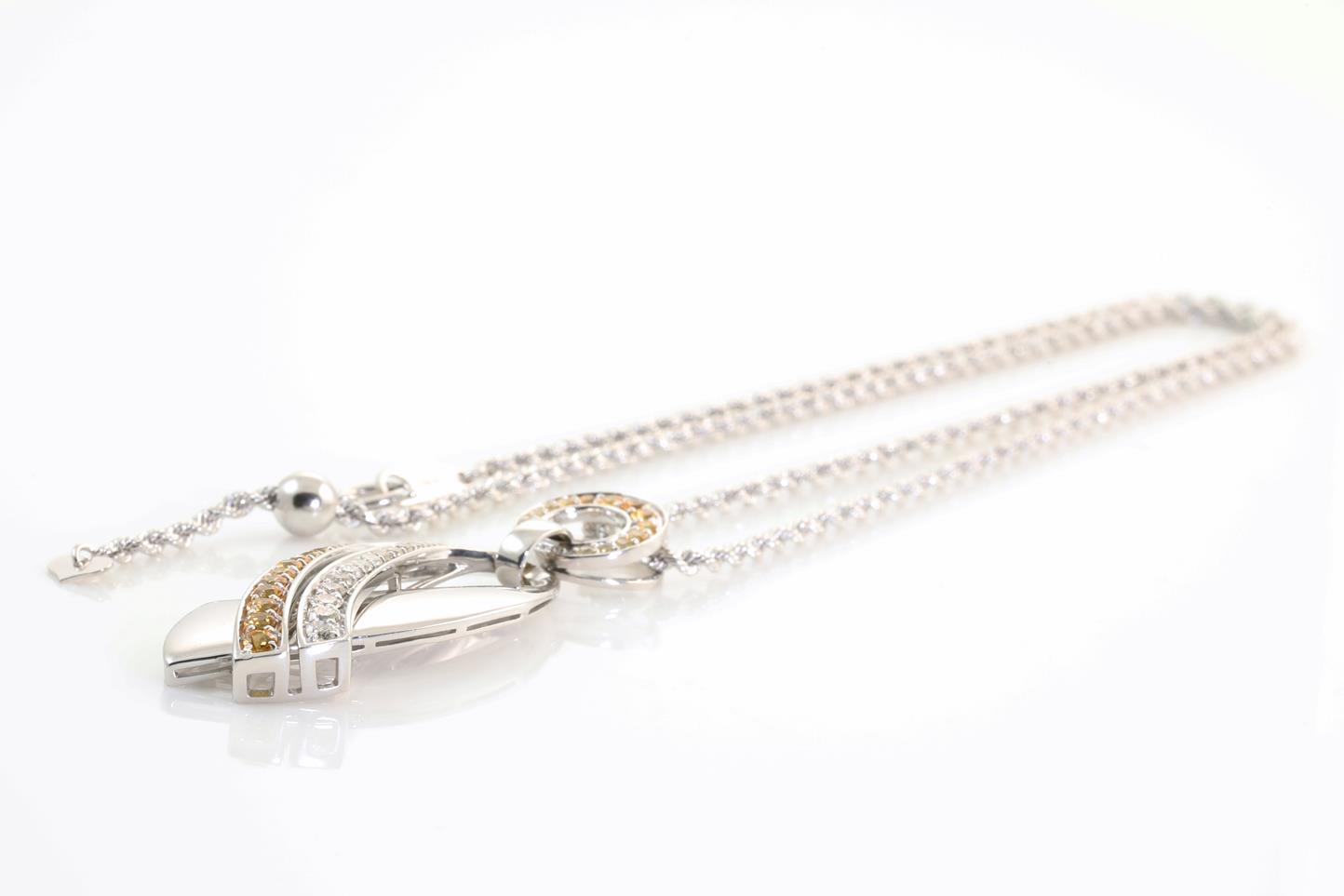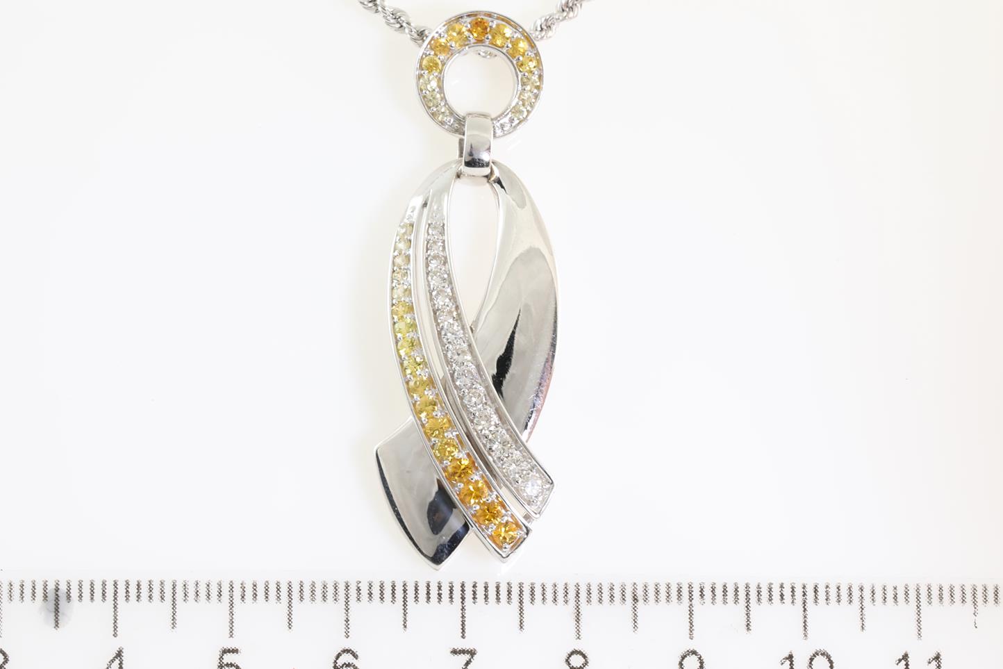 Sapphire and Diamond pendant with yellow Sapphires totalling 0.80cts and Diamonds totalling 0.43cts (Estimated grading: G-H VS). 18ct white gold with 18ct white gold 45cm adjustable chain. Weight: 12.8g (Pre-owned)
