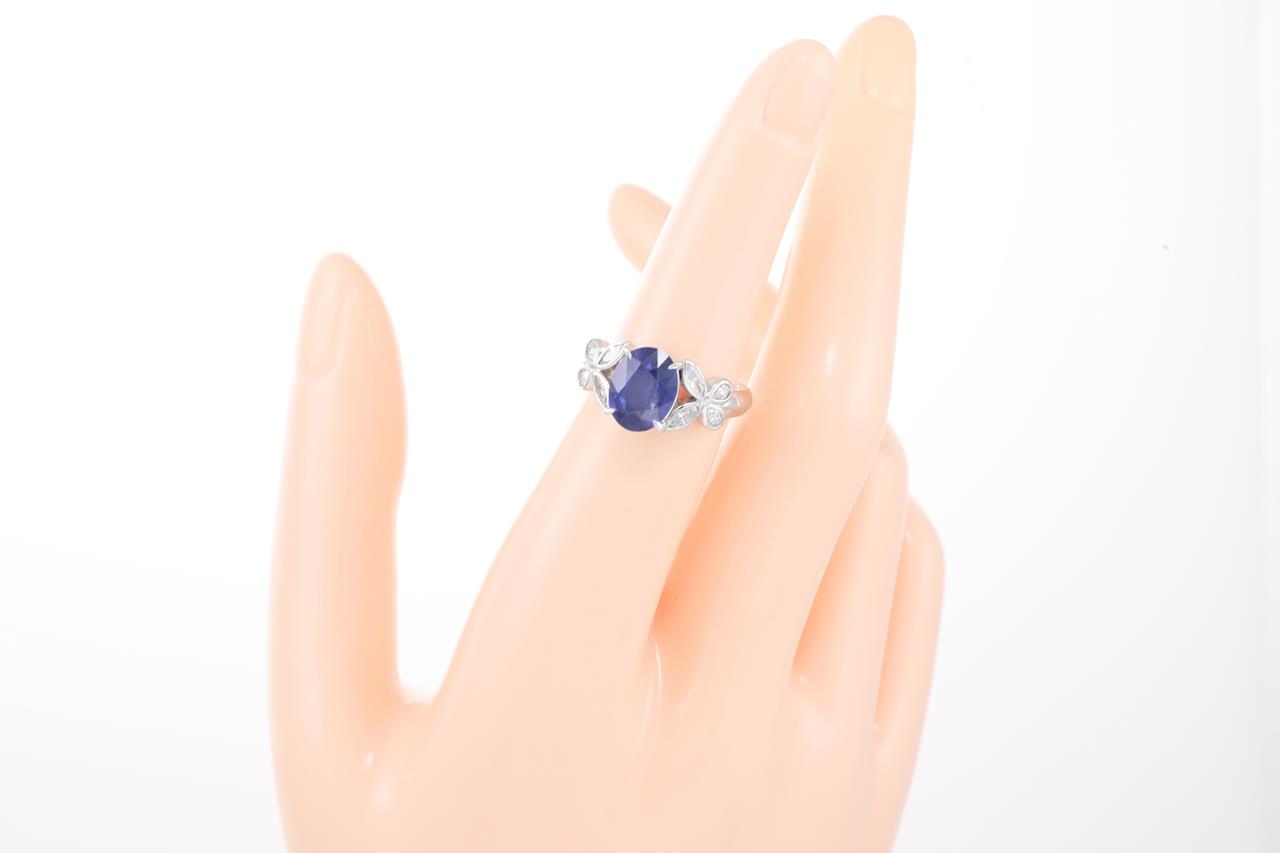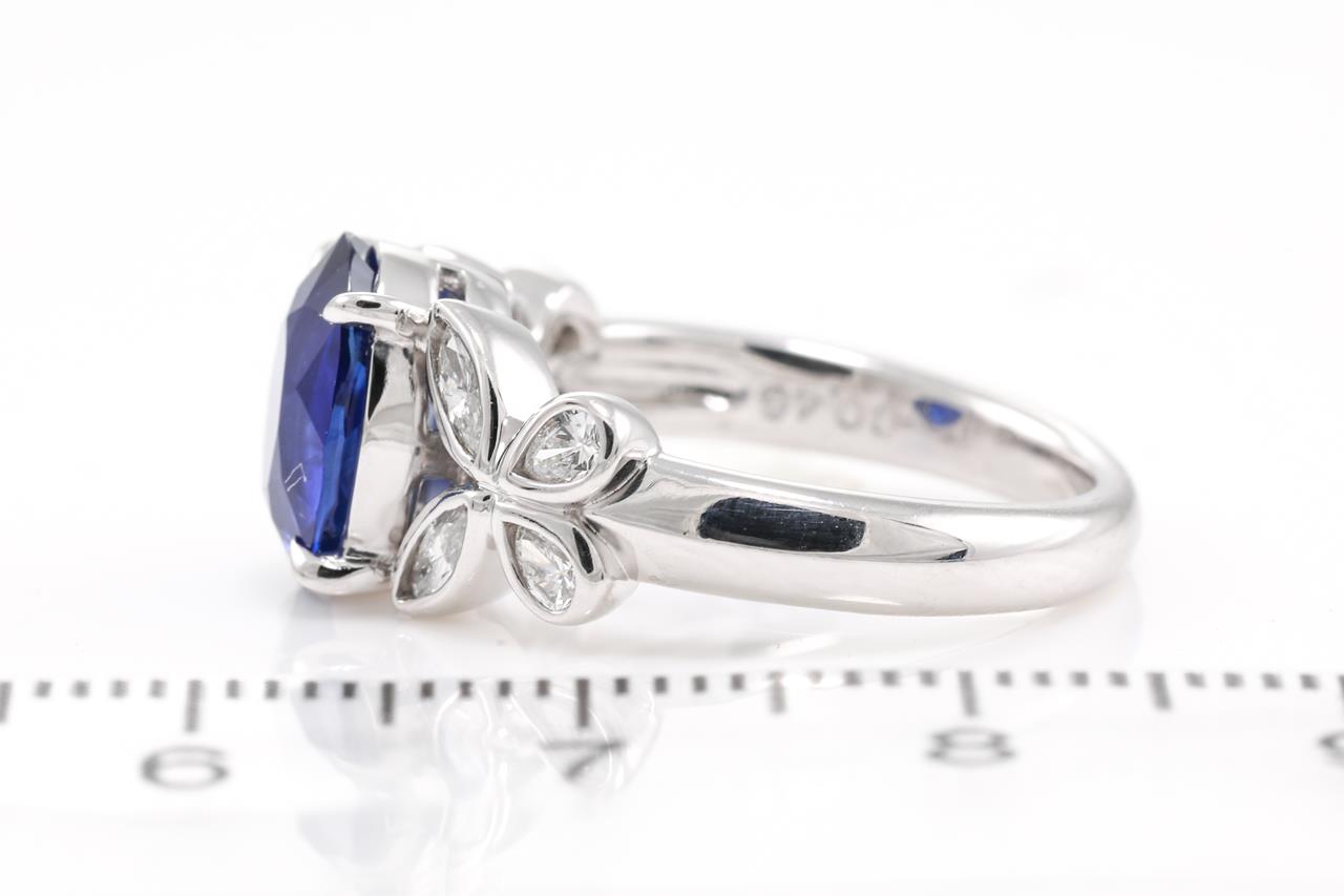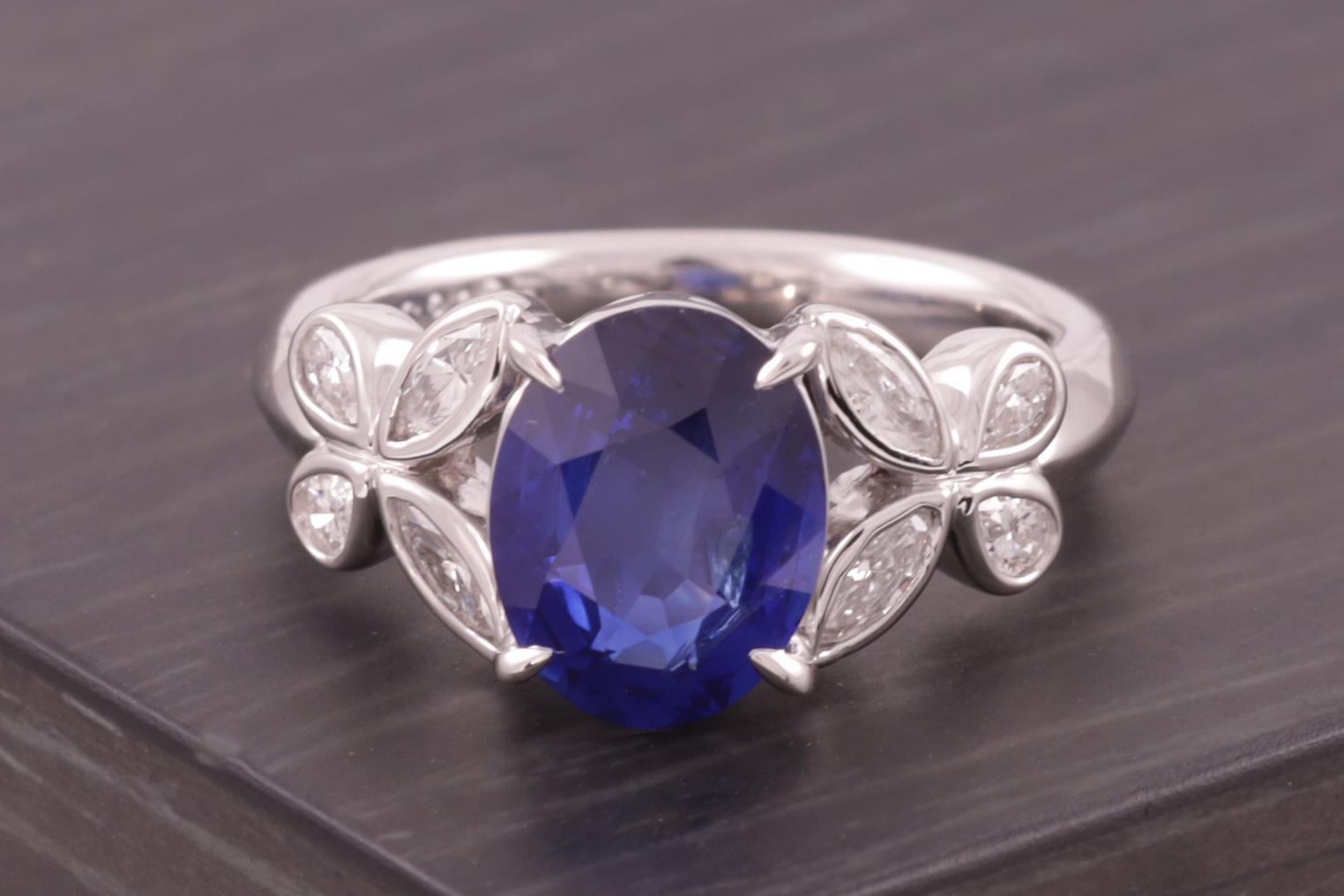 Sapphire and Diamond Ring with oval shape blue Sapphire of 3.12ct and Diamonds totalling 0.46cts (Estimated grading: G SI). Platinum. Ring size: M. Weight: 8.5g. With Certificate #414957. (Pre-owned)
