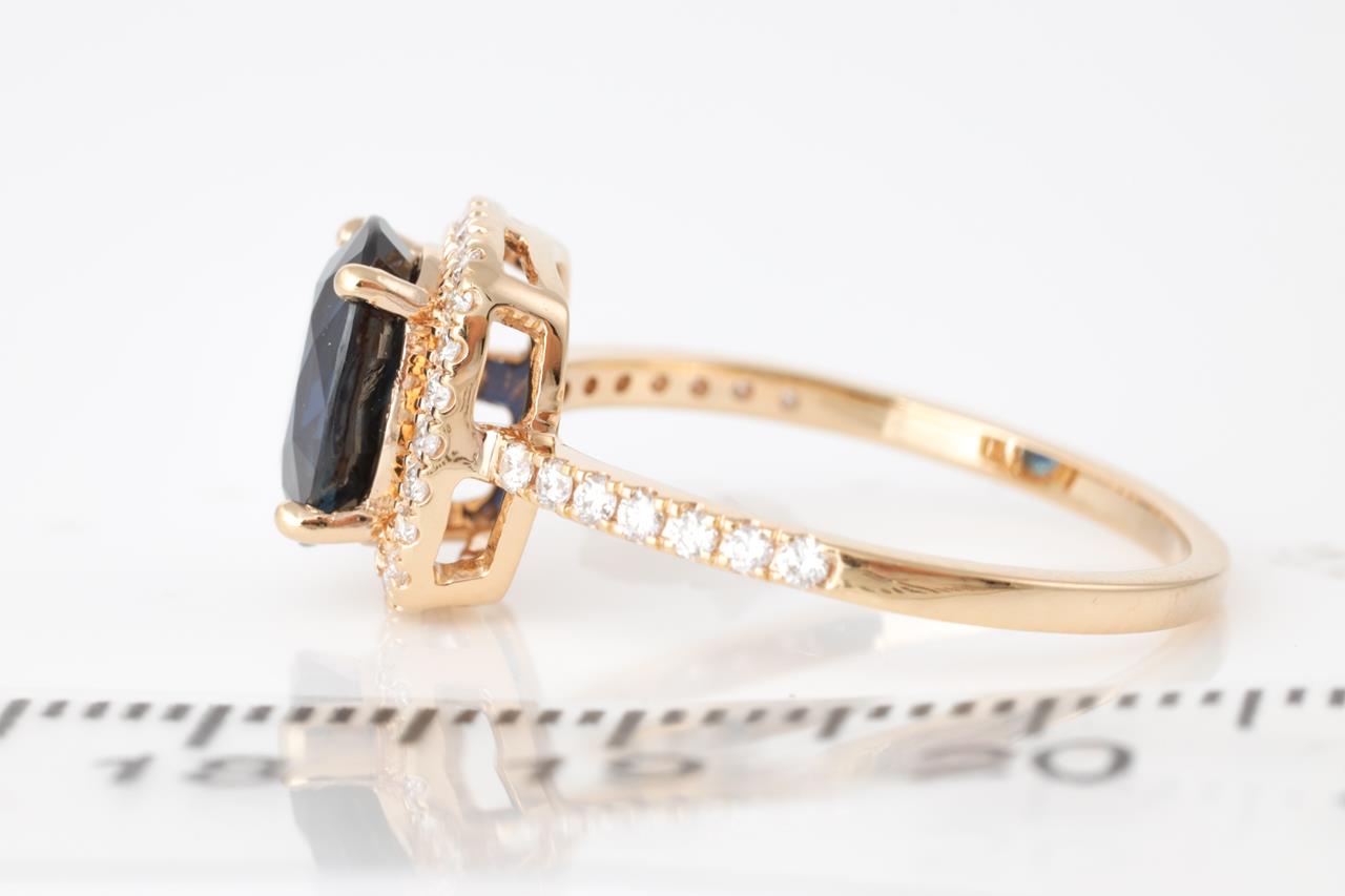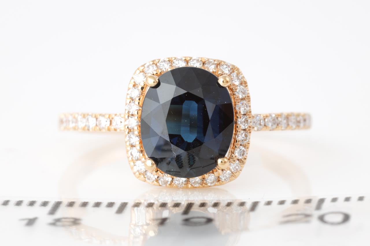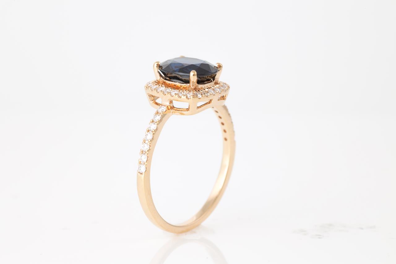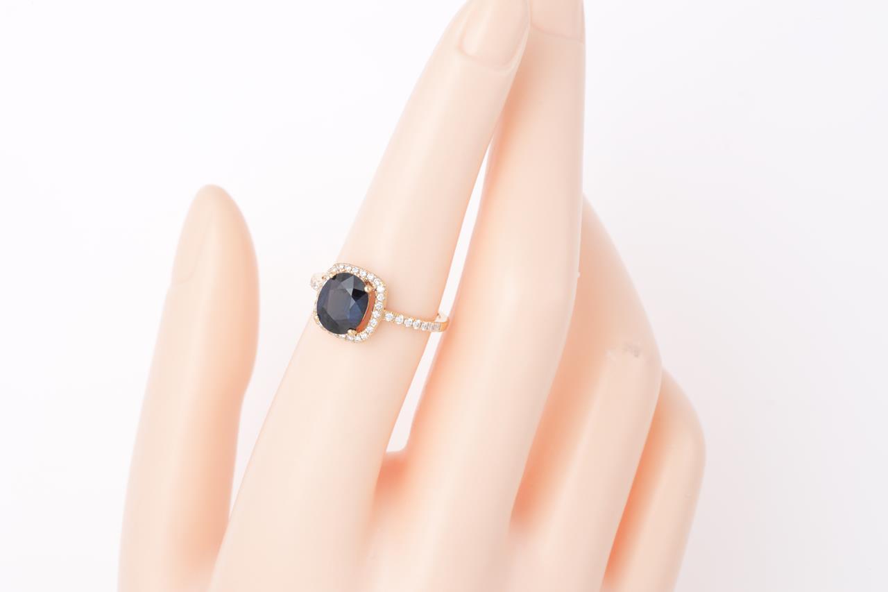Sapphire Ring with an oval blue Sapphire of 2.06ct and round Diamonds totalling approximately 0.40cts (estimated grading: G-H SI). 18ct rose gold. Ring size M1/2. Weight 2.7g. (As New)