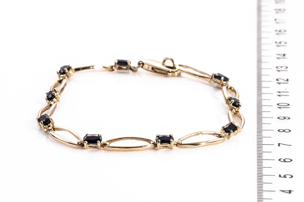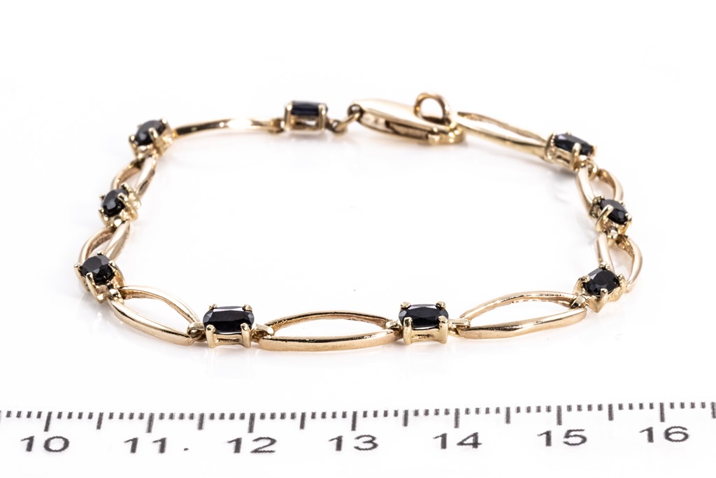 Sapphire bracelet with oval cut Australian Sapphires totalling approximately 1.00cts. 9ct yellow gold. Length 20cm. Weight 7.0g. (Pre-owned)