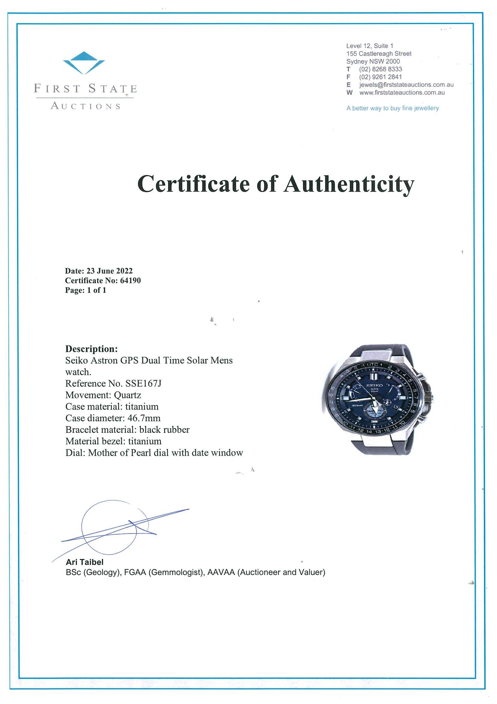 Seiko Astron GPS Solar Mens Watch | First State Auctions