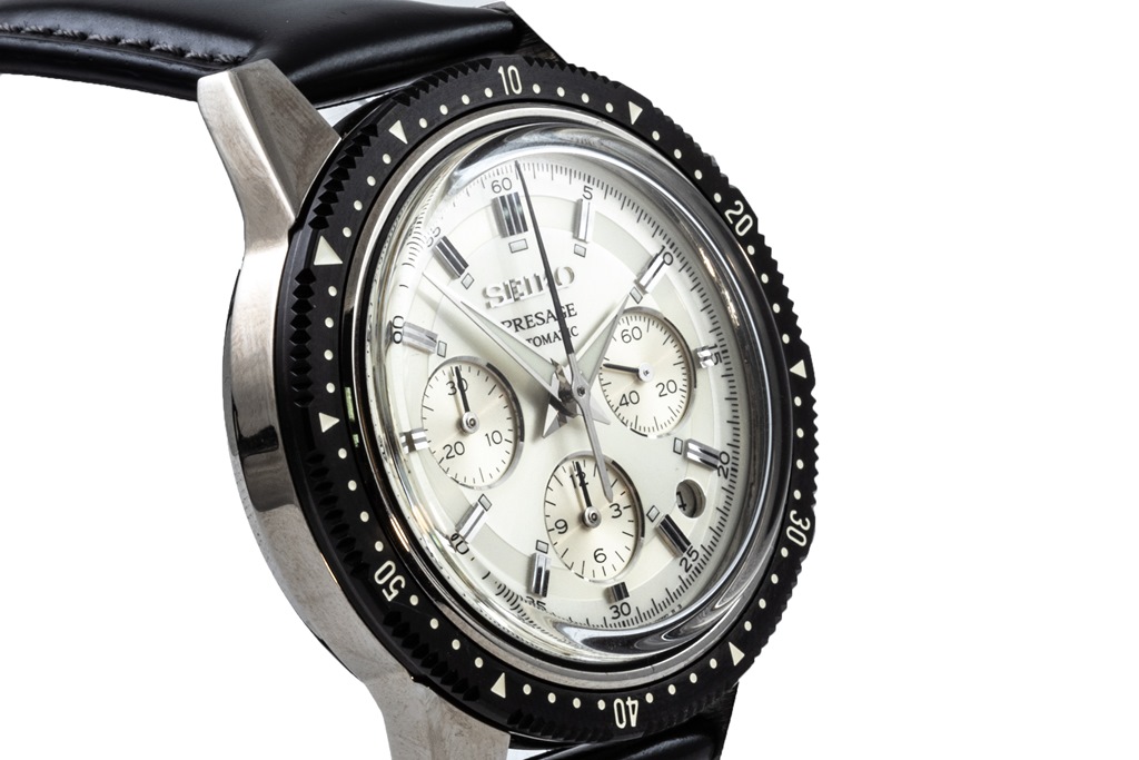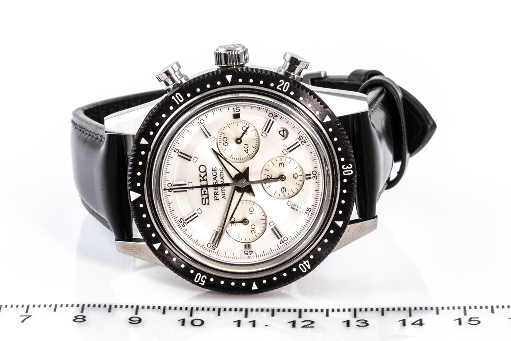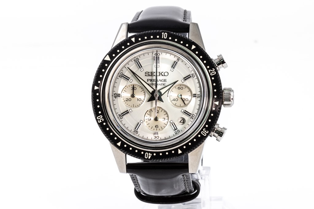 Seiko Presage limited edition of 1000 stainless steel automatic mens watch. Silver chronograph dial, date, case diameter: 42mm, wrist size: 19cm, made in Japan. Ref# SRQ031J. With Seiko black leather strap and clasp. With Certificate of Authenticity and Seiko slightly damaged box. 3 month FSA warranty. (As New, Note: light wear on strap and minor scratches on case due to being display stock)