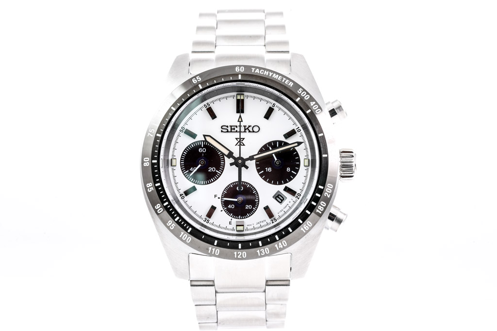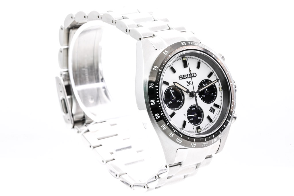 Seiko Prospex stainless steel Solar mens watch. White dial, date, case diameter: 39mm, wrist size: 19cm, made in Japan. Ref# SSC813P. With Seiko stainless steel bracelet and clasp. With Seiko Certificate of Limited Guarantee card and Seiko box. Seiko warranty applies. (As New, Note: minor scratches on case and bracelet due to being display stock)