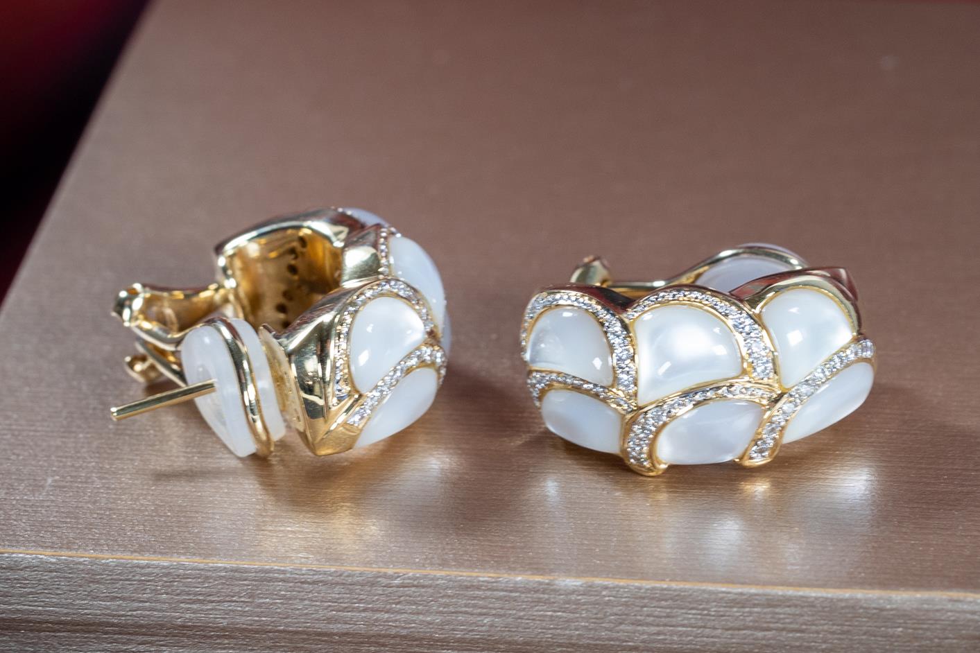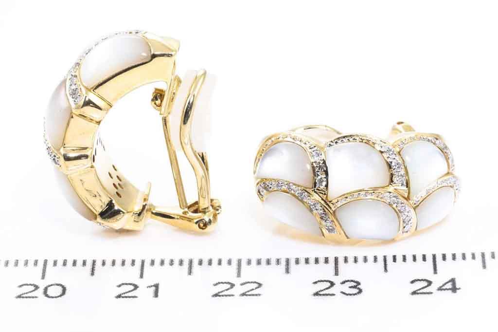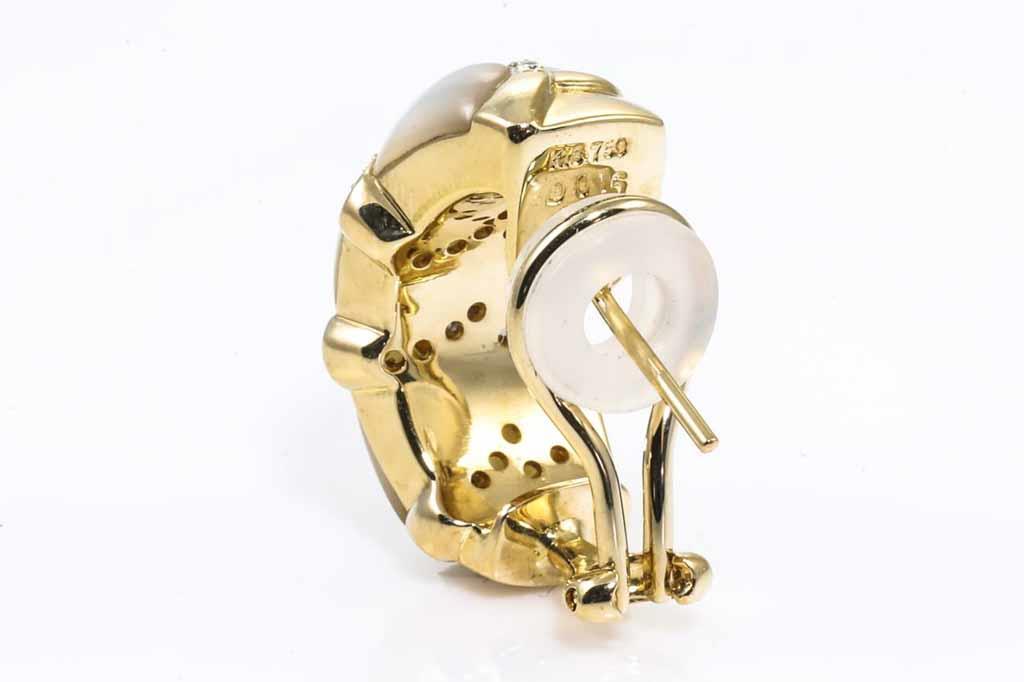 Shell and Diamond earrings (for pierced ears and non pierced, with foldable post) with round Diamonds totalling 0.32cts (Estimated grading: H-I SI-P1). 18ct yellow gold. Weight: 16.5g. (Pre-owned)