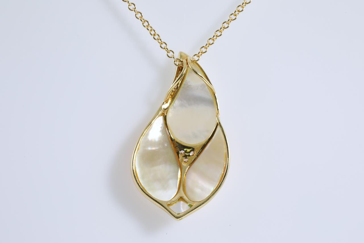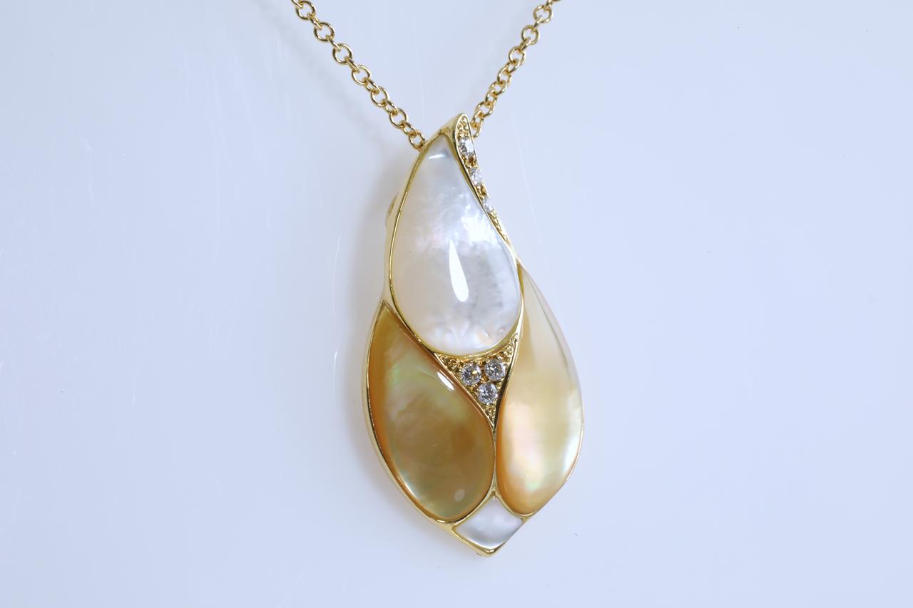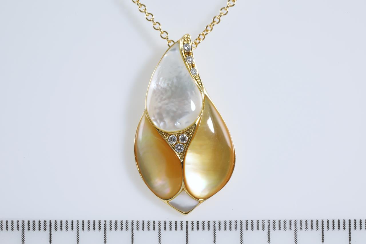 Shell and Diamond pendant with Diamonds totalling 0.11cts. 18ct yellow gold with 44cm 18ct yellow gold chain. Weight: 5.8g (Pre-owned)