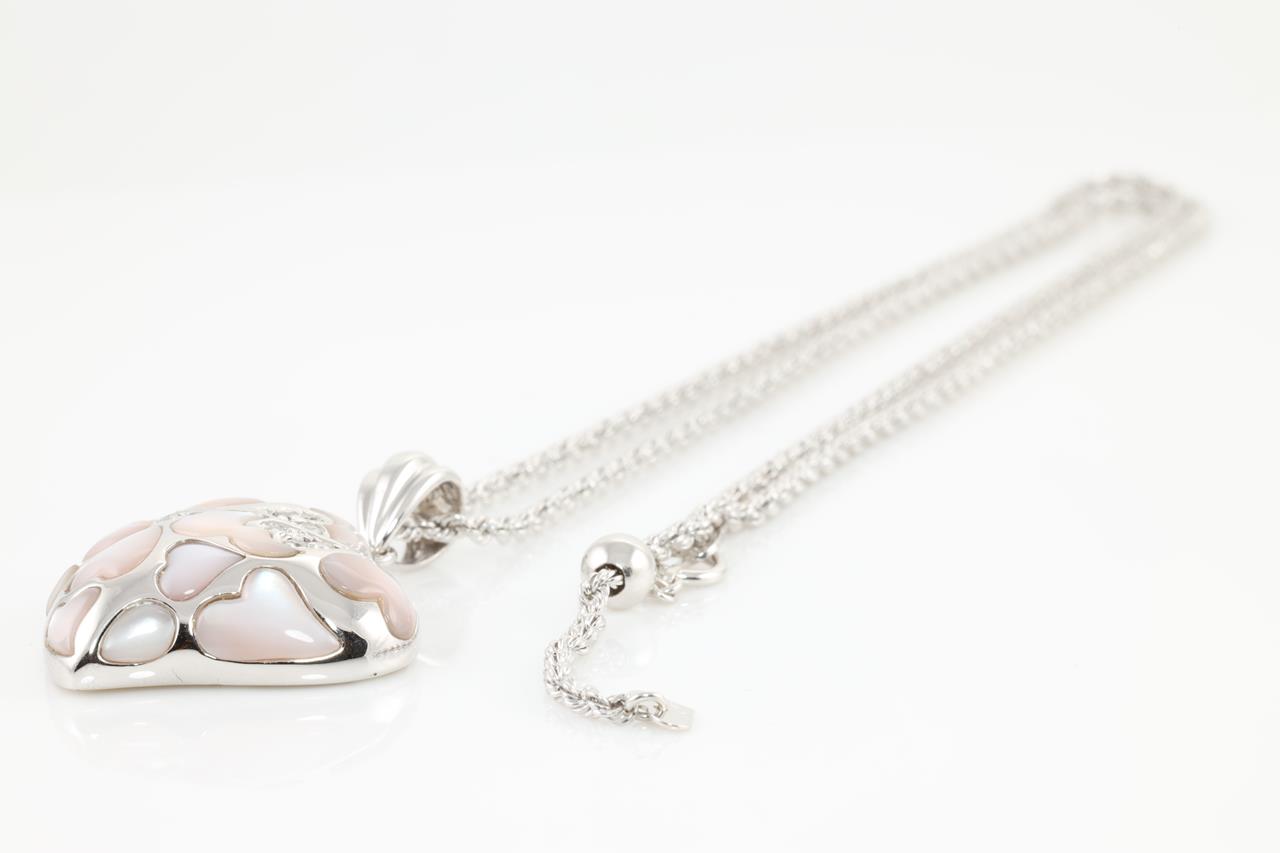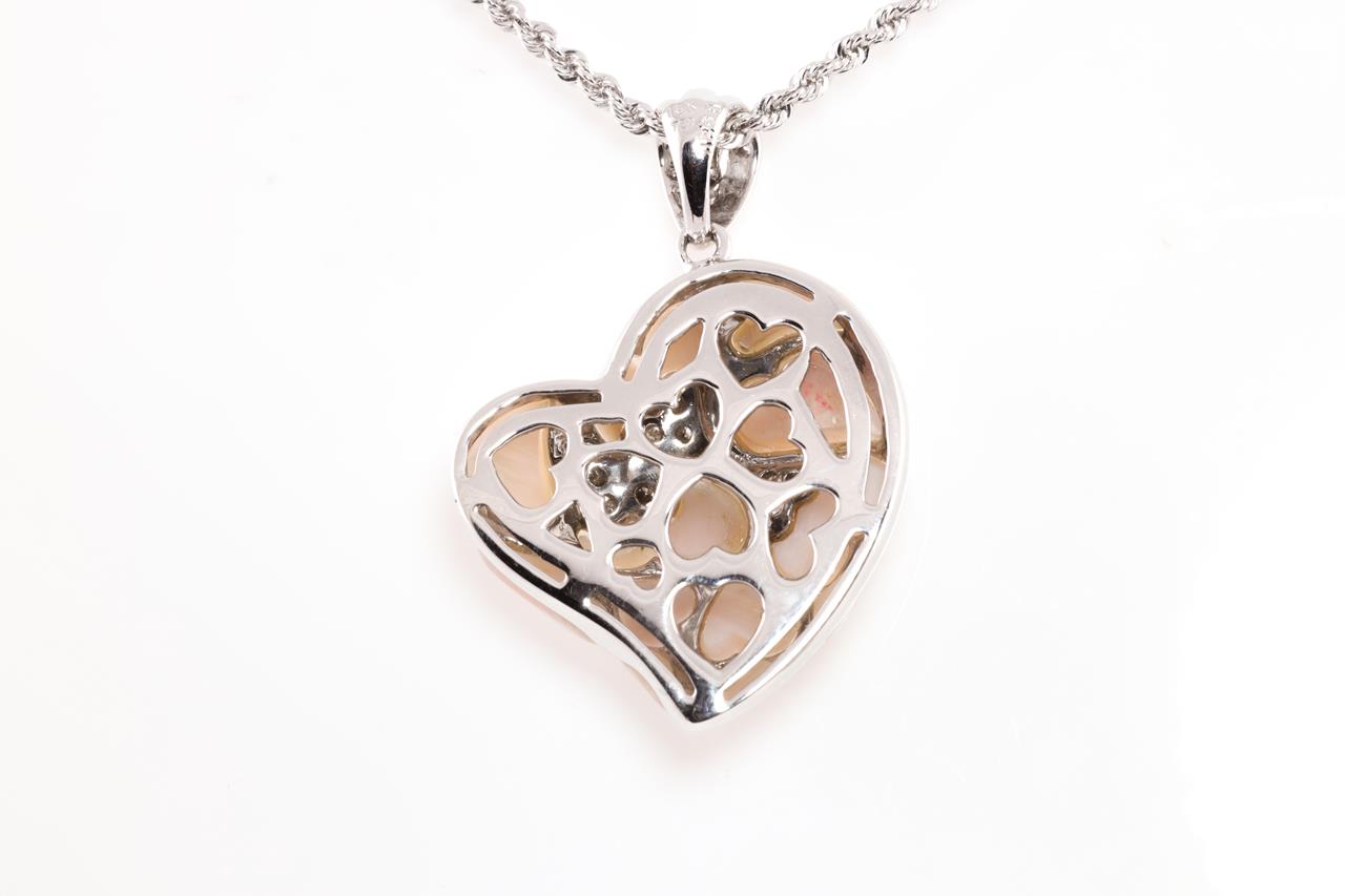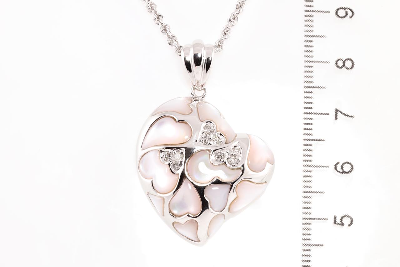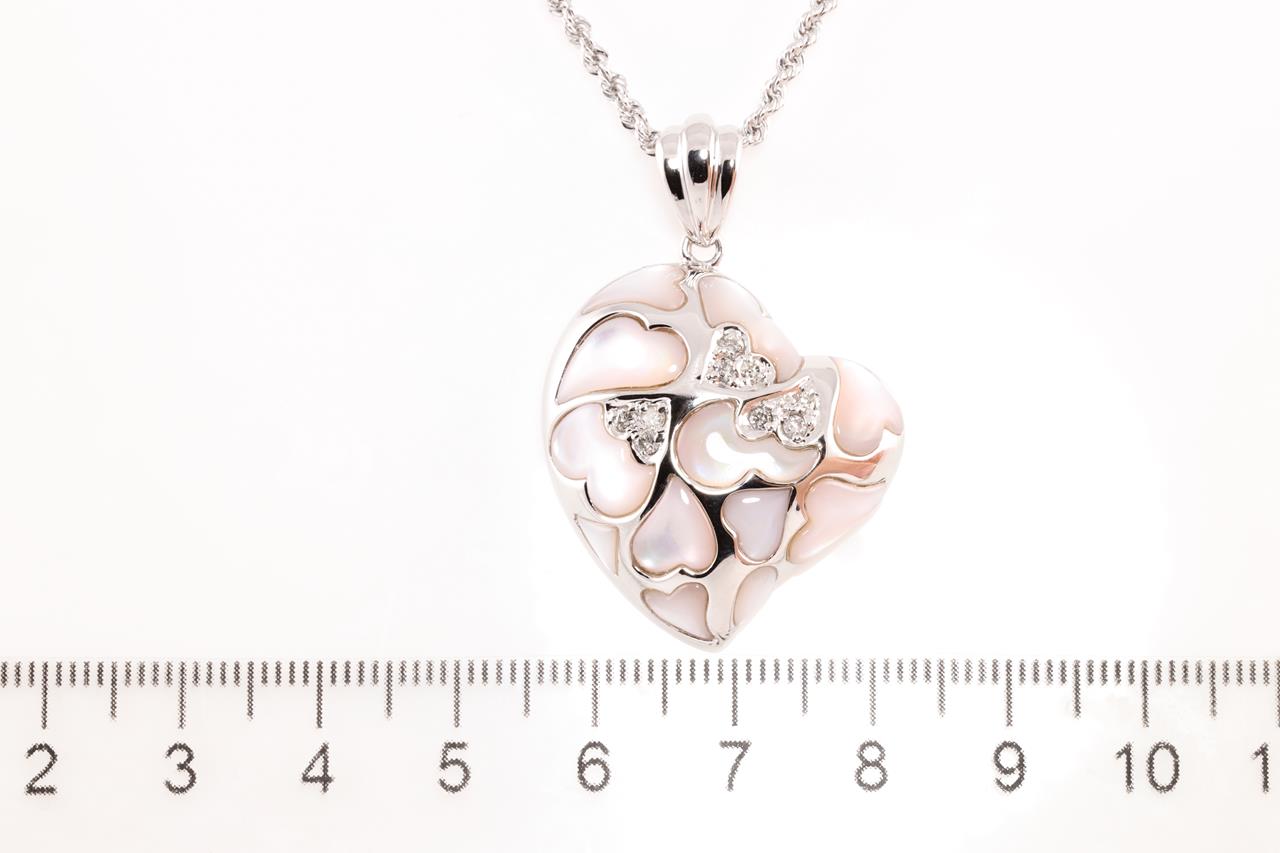 Shell and Diamond pendant with fancy shape Shell and round Diamonds totalling 0.20cts. 18ct white gold with 18ct gold adjustable 50cm chain. Weight: 13.8g (Pre-owned)