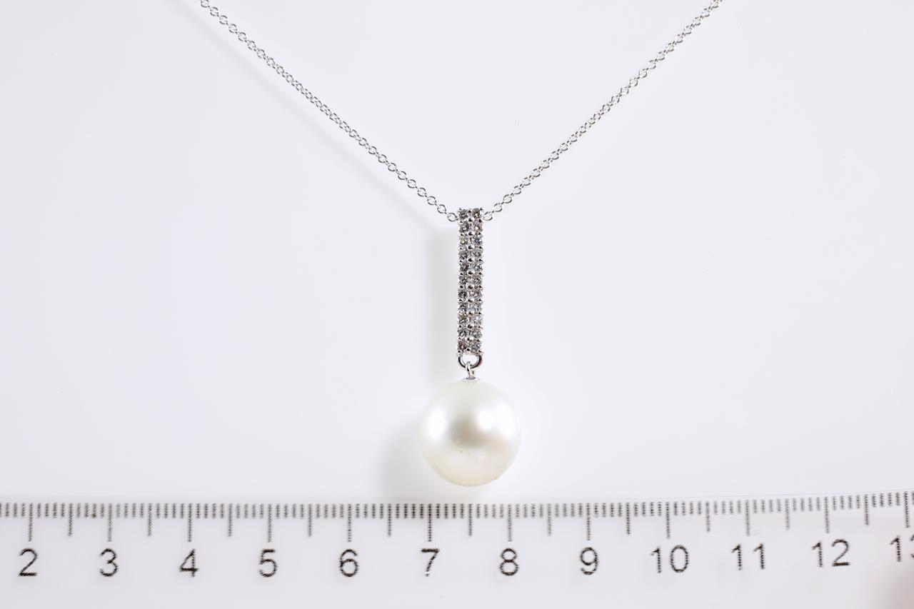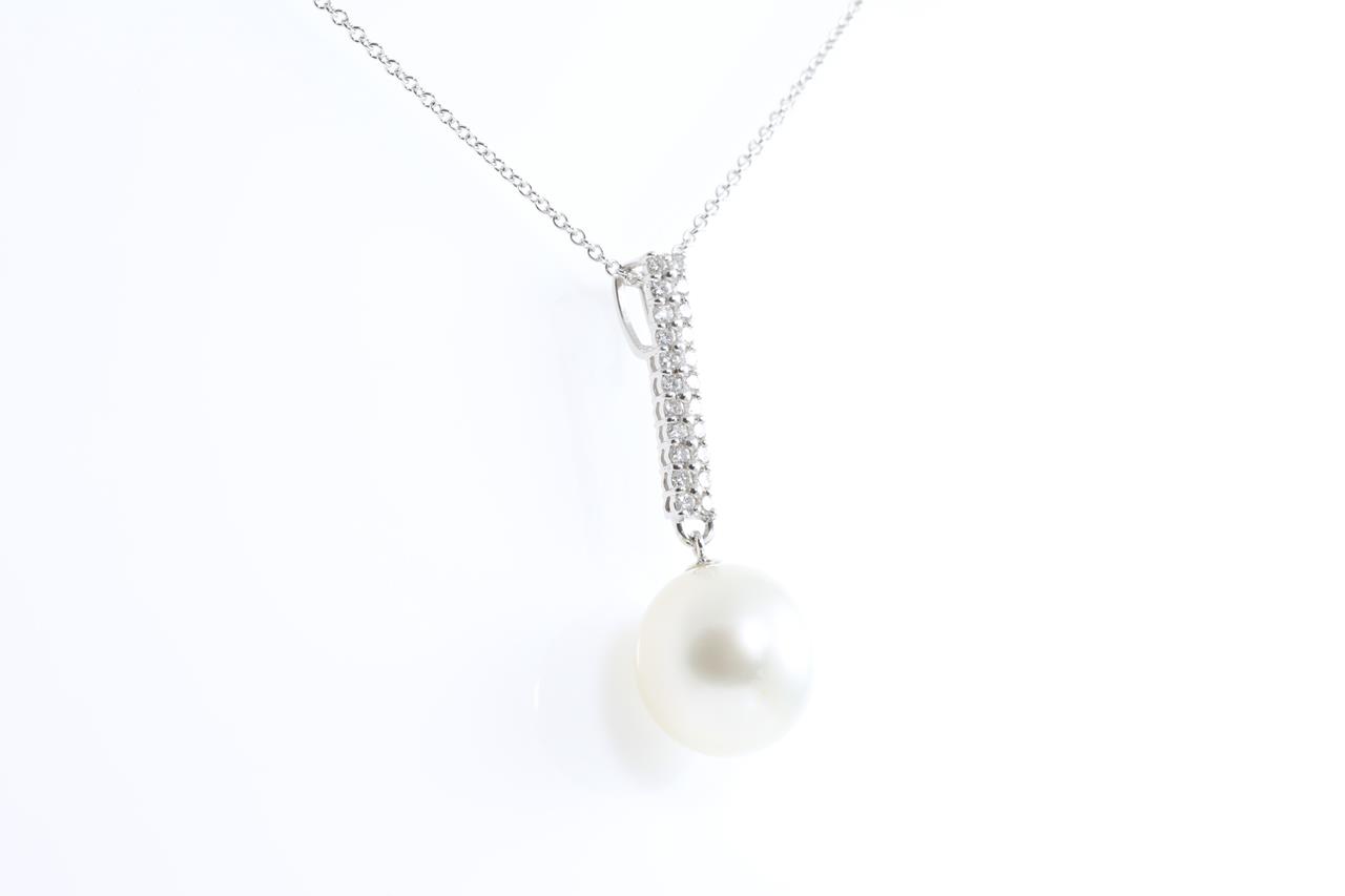 Pearl and Diamond Pendant with South Sea Pearl of 12.7mm and Diamonds totalling 0.35cts (Estimated grading: G-H SI-P1). Platinum. Weight: 4.8g. (Pre-owned)