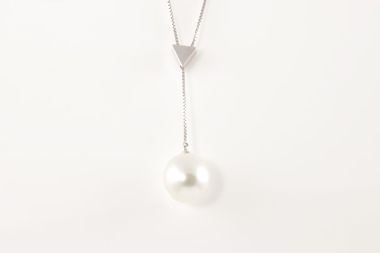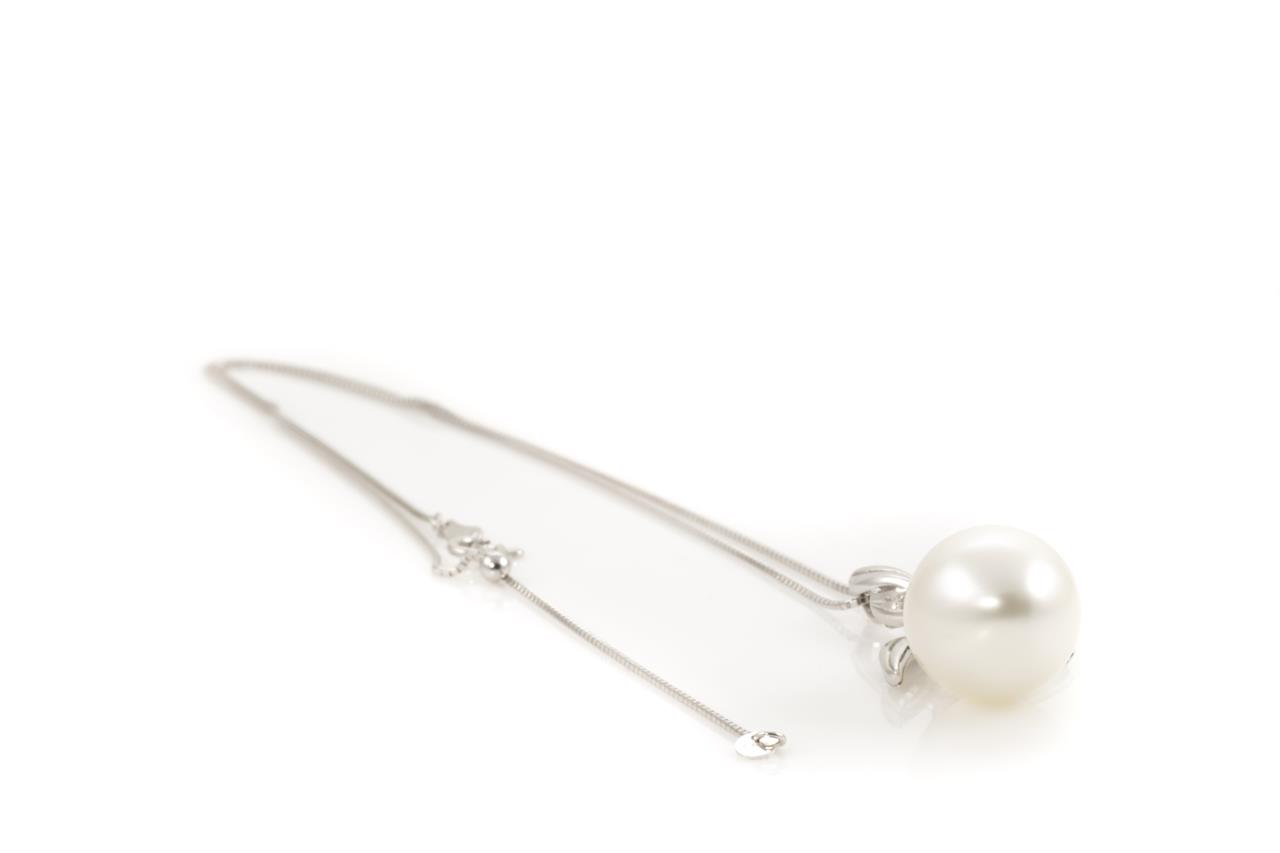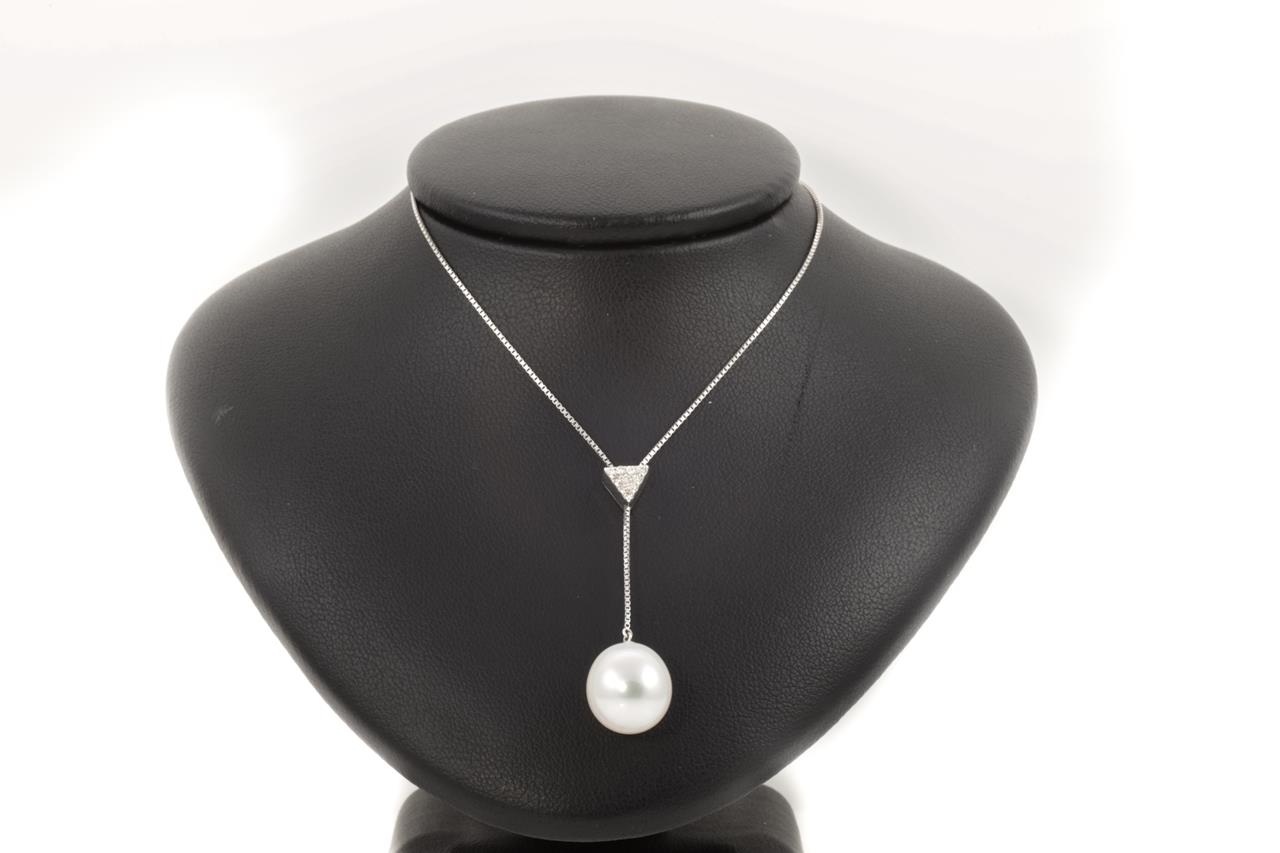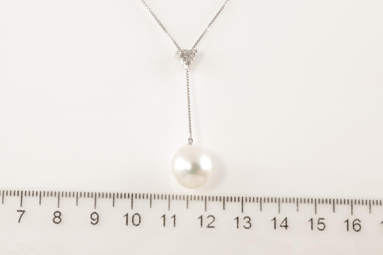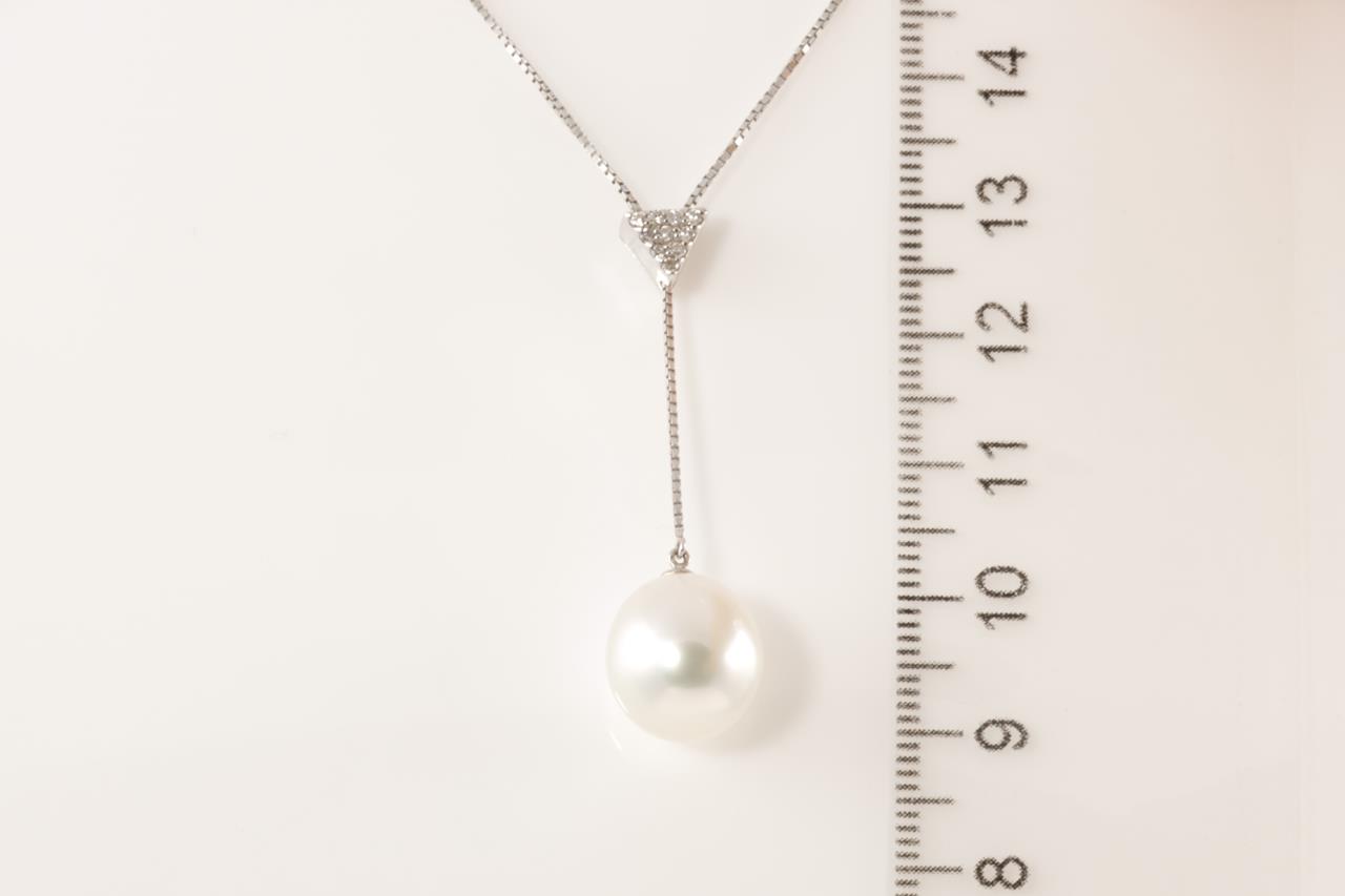 Pearl and Diamond pendant with a South Sea Pearl of 11.2mm and Diamonds totalling 0.08cts. 18ct white gold with adjustable 42cm chain. Weight: 4.7g (Pre-owned)