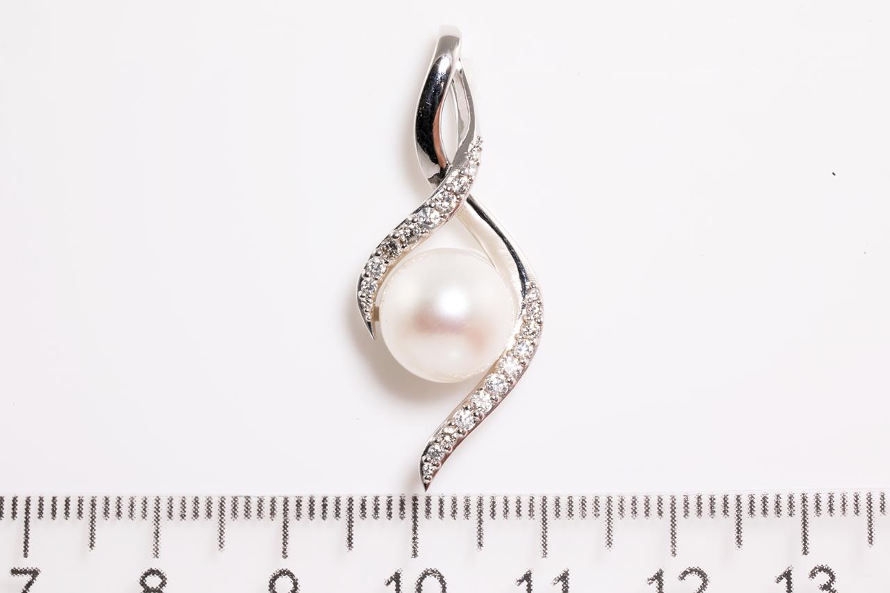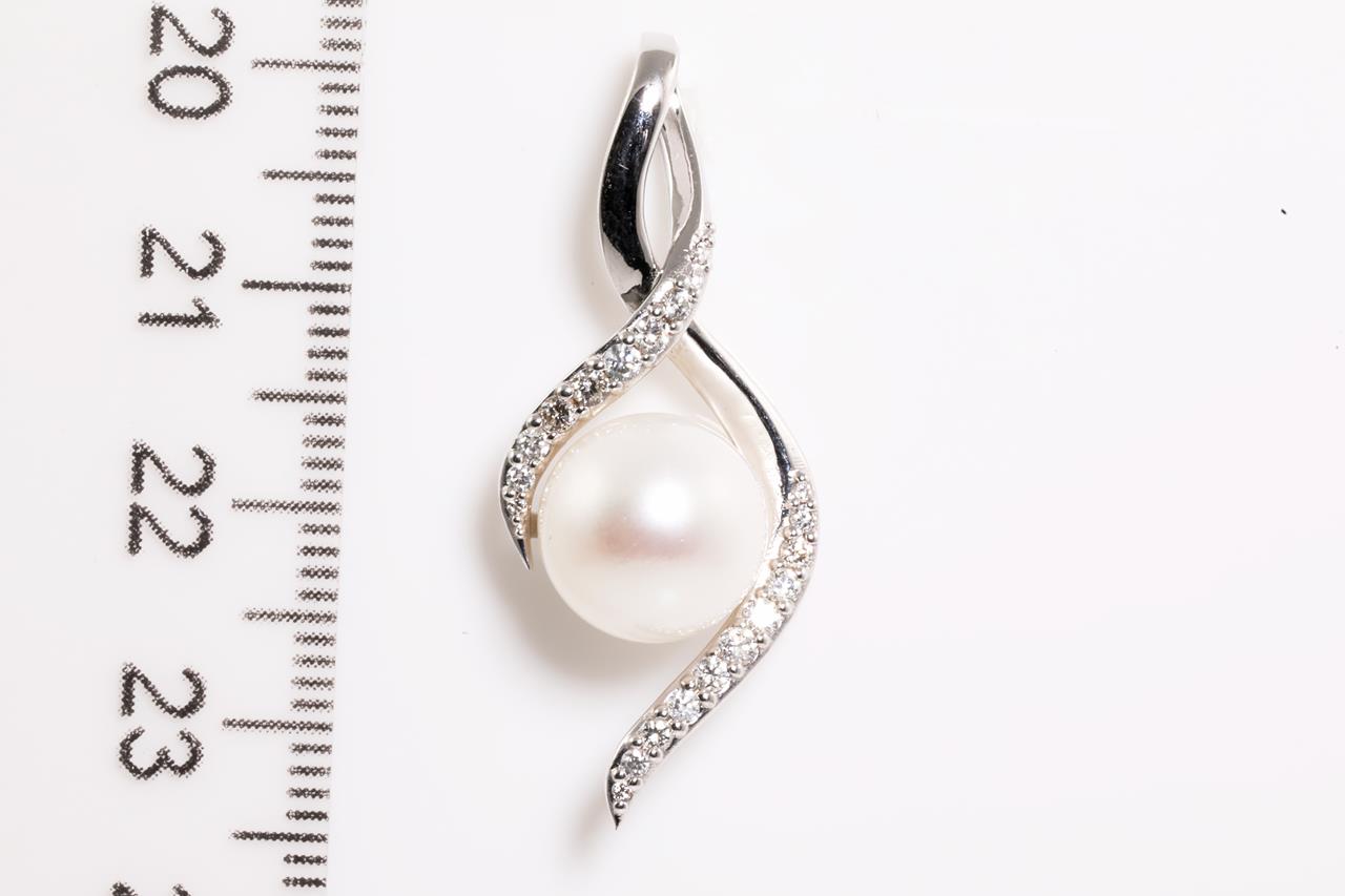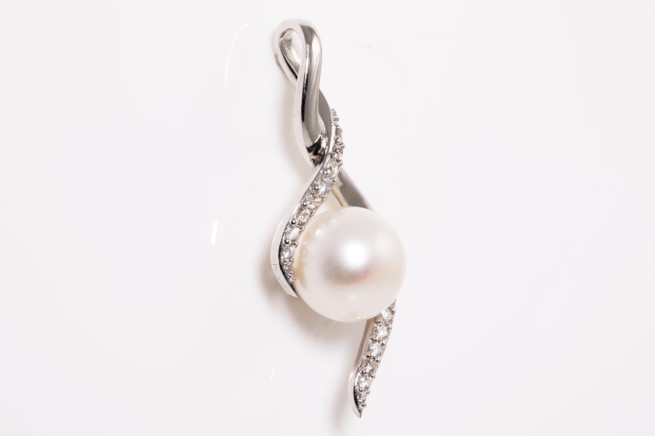Pearl and Diamond pendant with a South Sea Pearl of 10.2mm and Diamonds totalling 0.29cts. 18ct white gold. No chain provided. Weight: 4.2g. (As new)