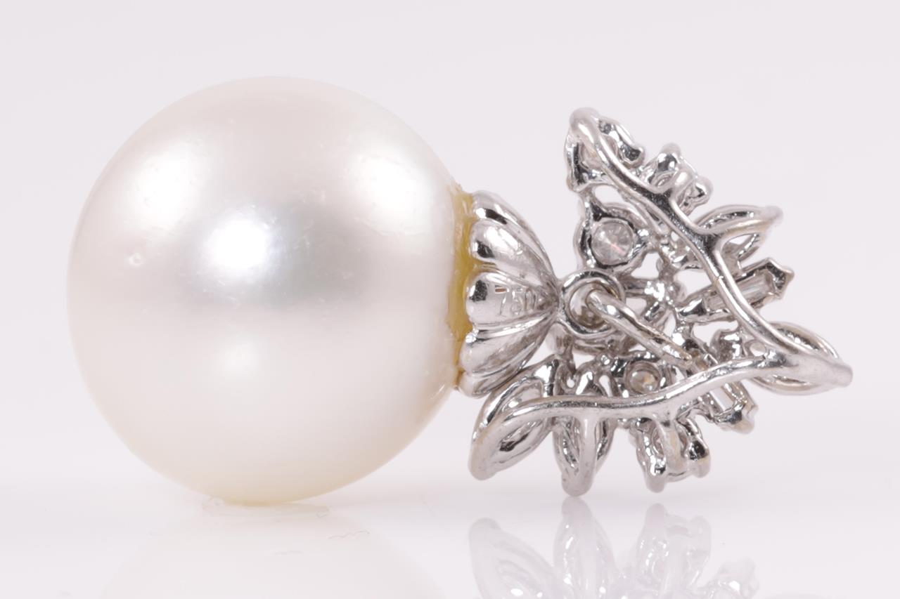 Pearl and Diamond Pendant with 16mm South Sea pearl with baguette, round and marquise cut Diamonds totalling approximately 0.50cts (Estimated grading: G VS). 18ct white gold. Weight 8.8g. (Pre-owned)