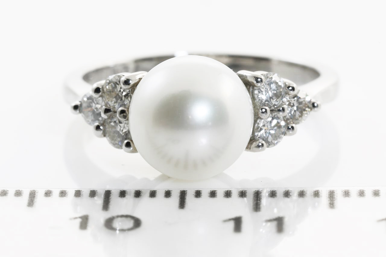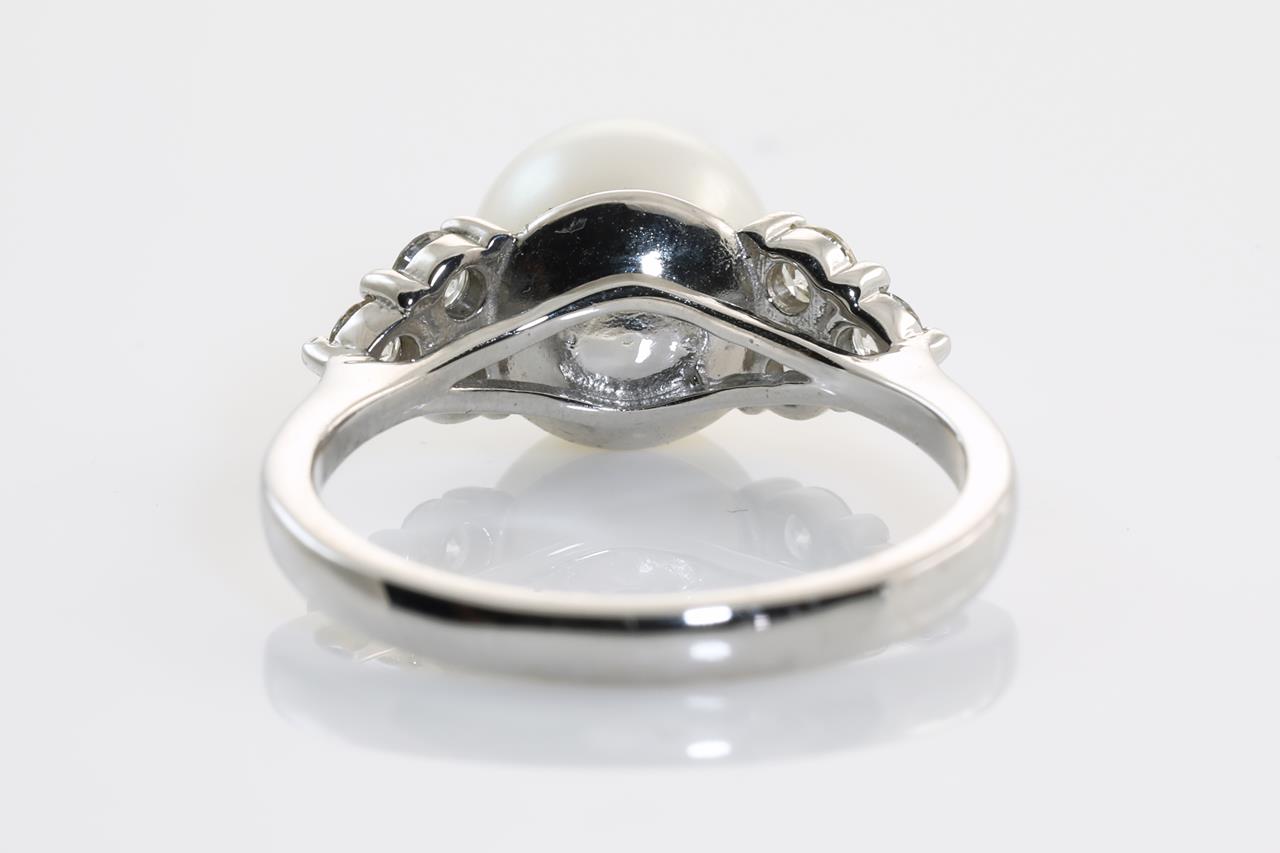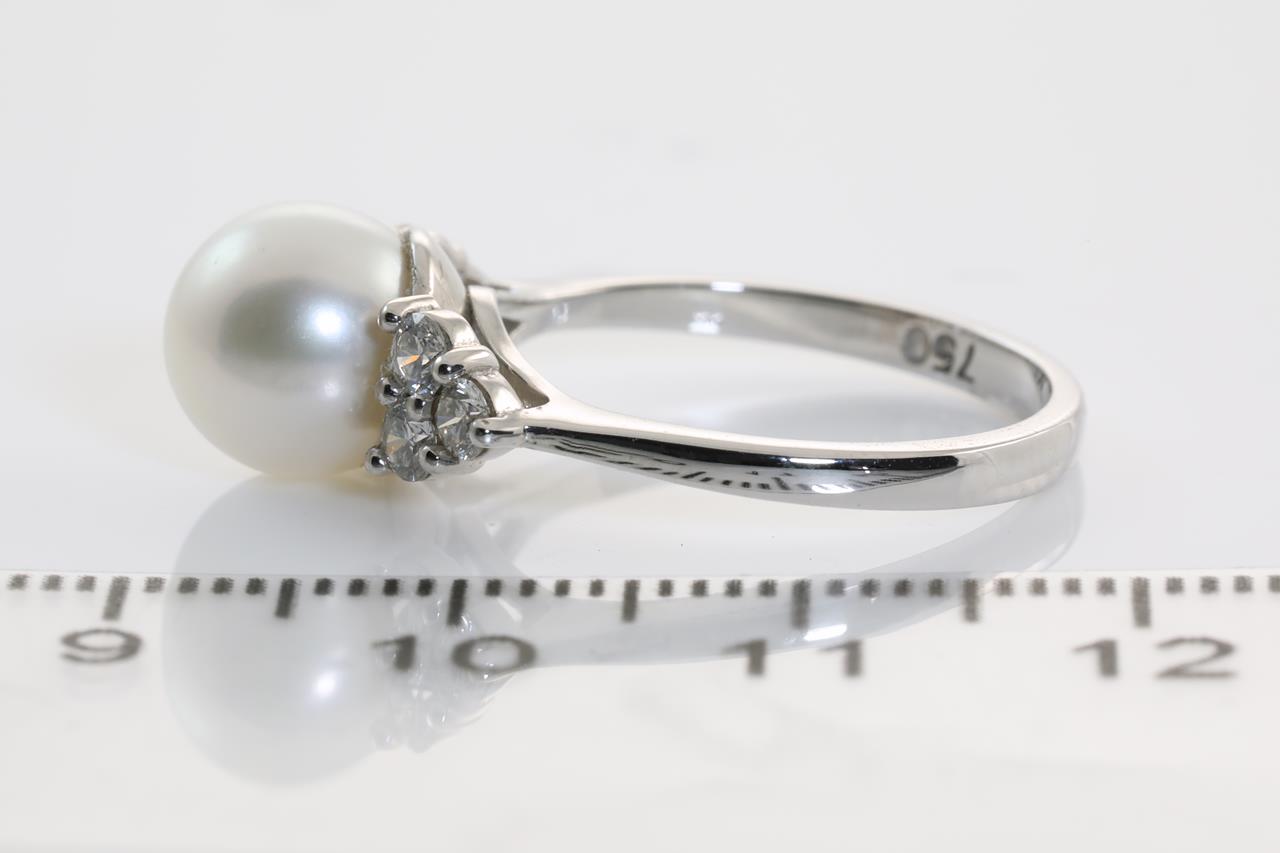 Pearl and Diamond Ring with a South Sea Pearl of 8.4mm and Diamonds totalling 0.38cts (Estimated grading: H SI). 18ct white gold. Weight: 4.0g. Ring size: L1/2. (As New)