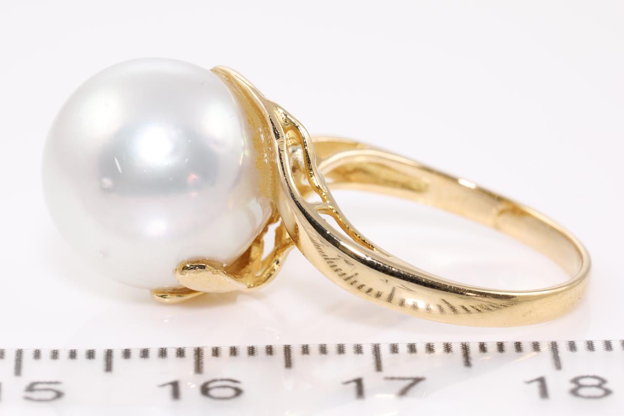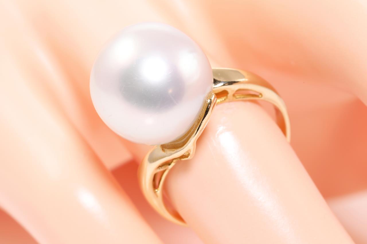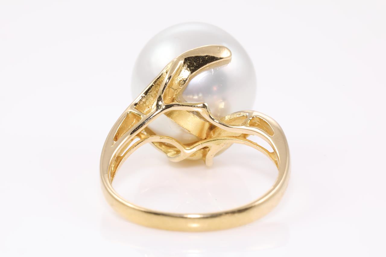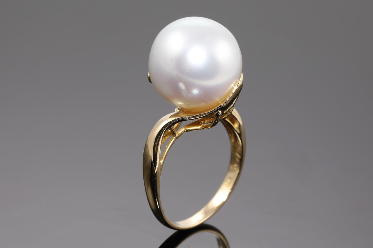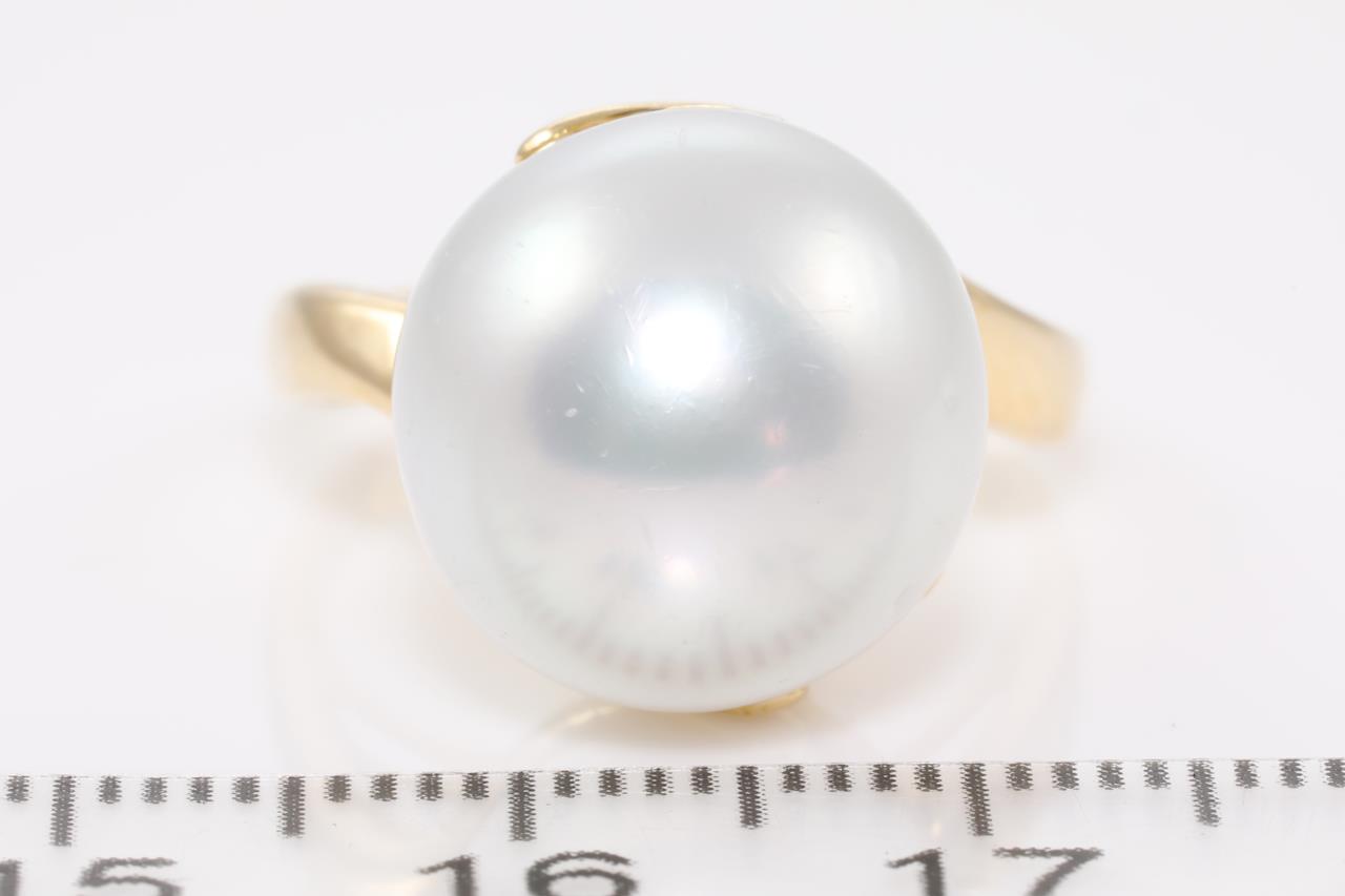 Pearl and Diamond Ring with white South Sea pearl of 13.2mm. 18ct yellow gold. Ring size L. Weight 6.7g. (Pre-owned)