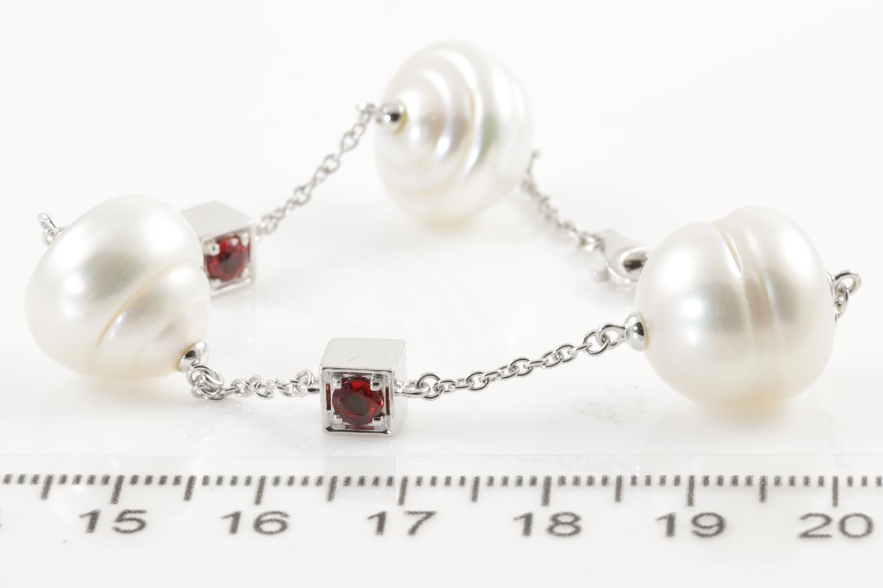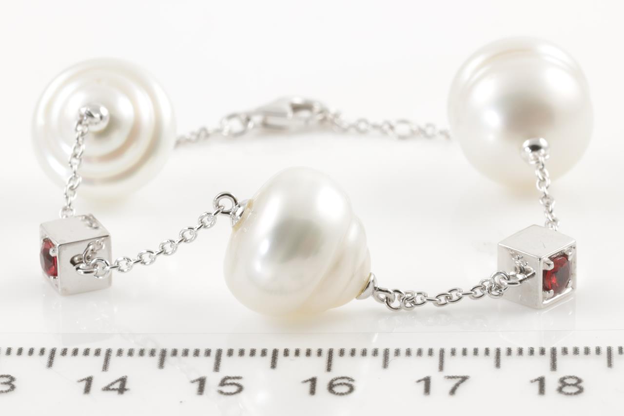 South Sea Pearl and Sapphire Bracelet with two round sapphires totalling approximately 0.30cts, three South Sea Pearls. 18ct white gold. Length 17.5cm. Weight 15.2g. (Pre-owned)