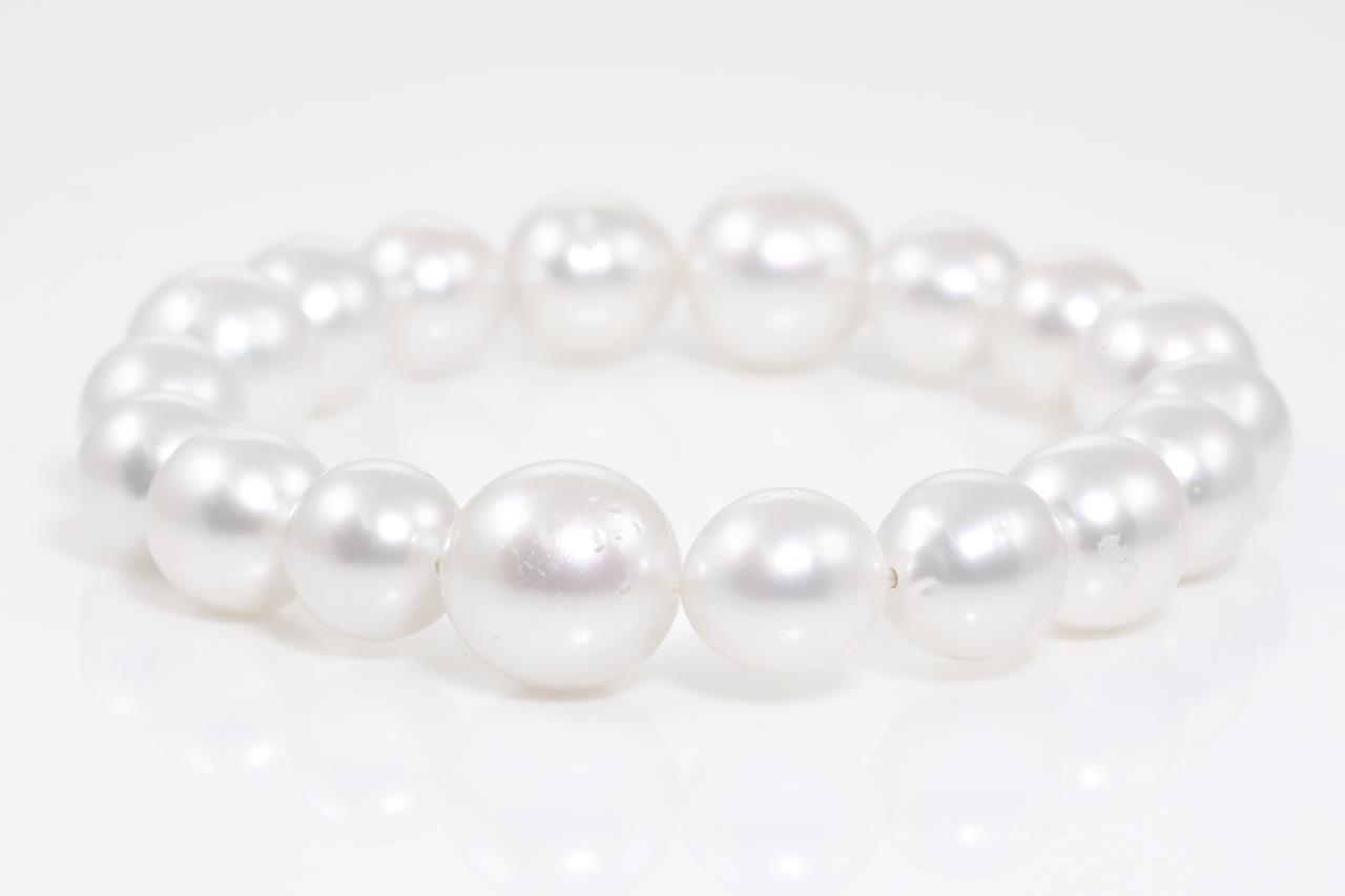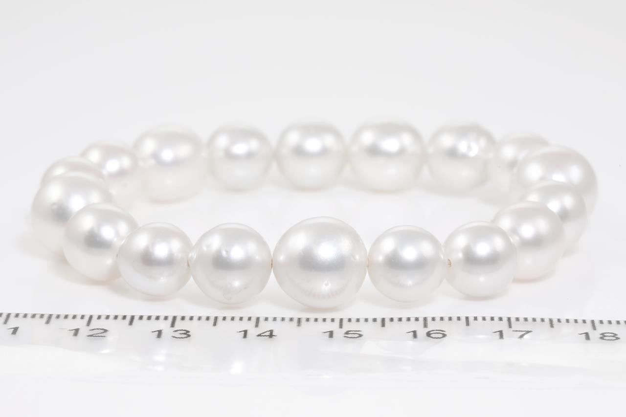 Pearl elasticated stretch bracelet with 18 white Australian pearls of 11.6-9.1mm. Circumference: 19cm. Weight: 26.9g. (New)
