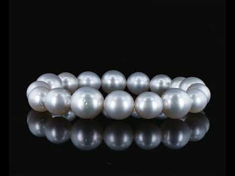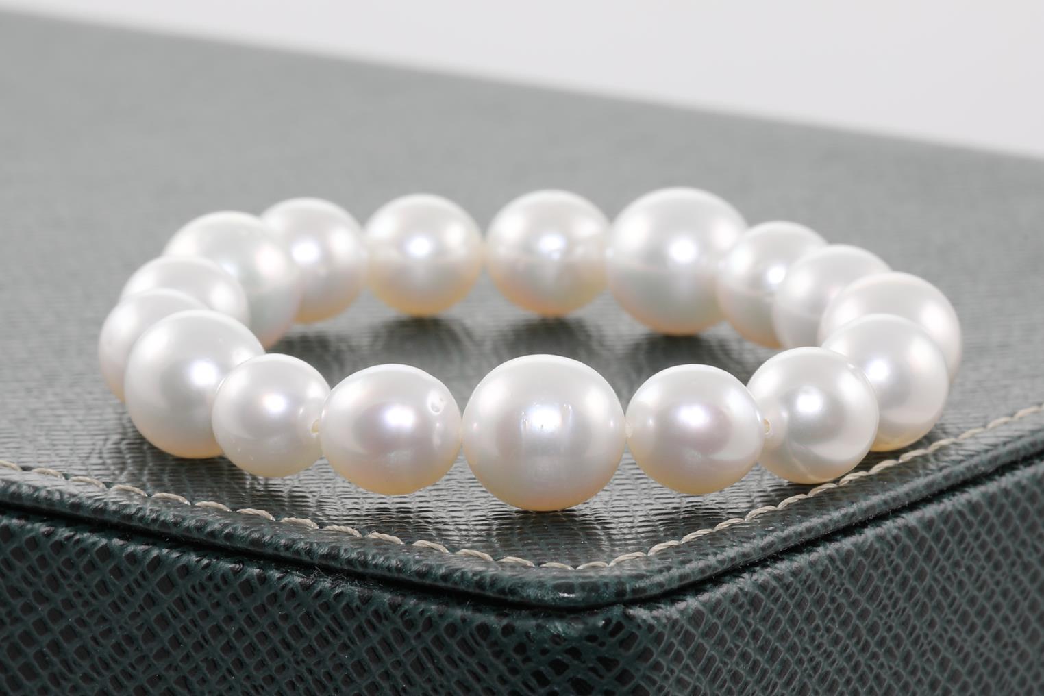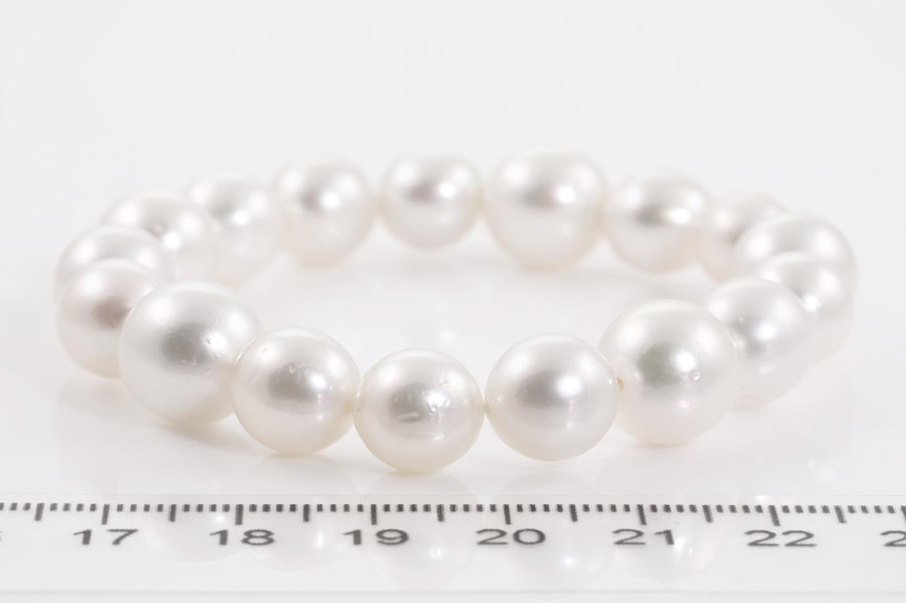 Pearl elasticated stretch bracelet with 17 white Australian pearls of 11.5-9.6mm. Circumference: 18cm. Weight: 27.6g. (New)