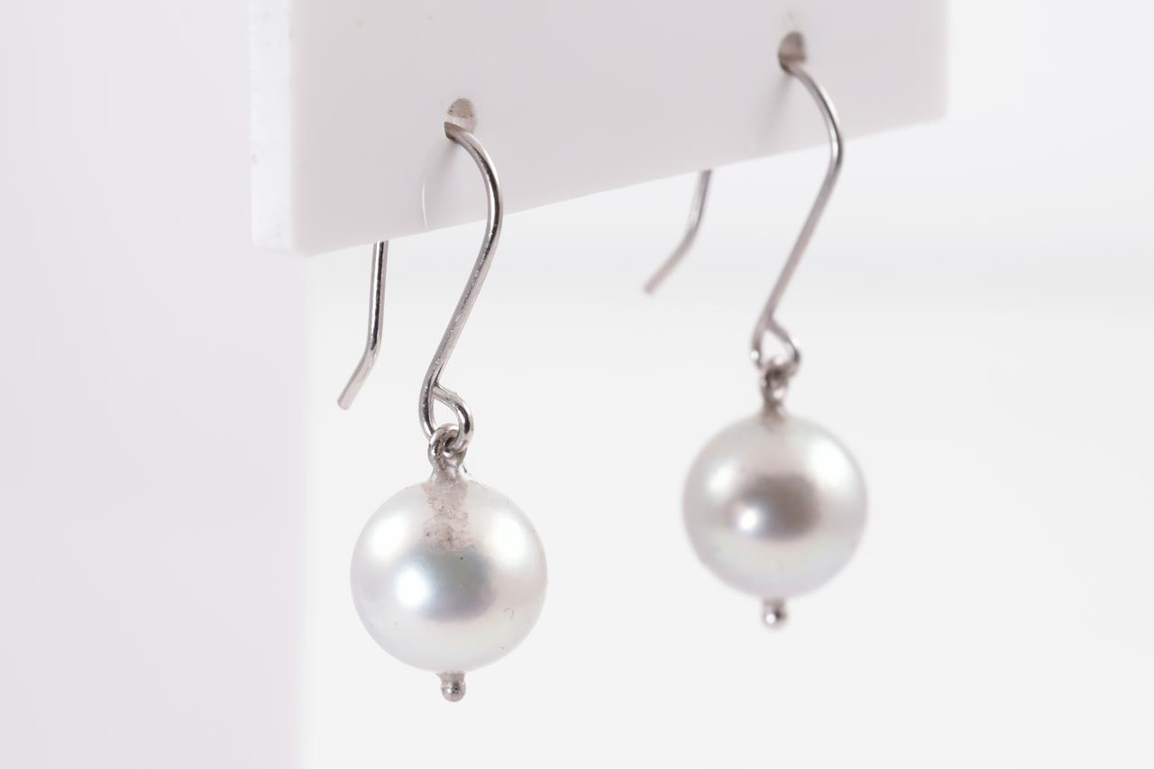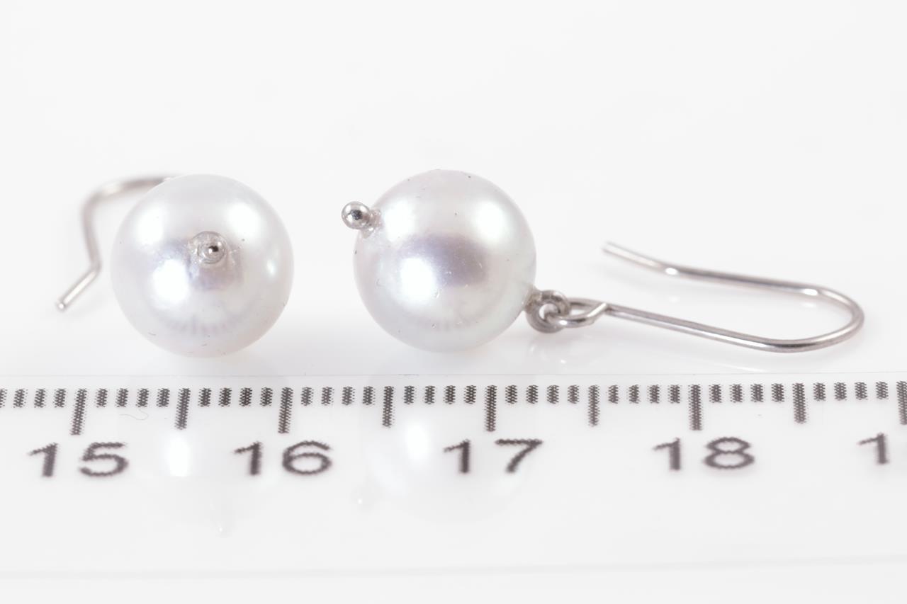 Pearl shepherds hook earrings with South Sea Pearls of 9mm. 18ct white gold. Weight: 2.7g. (As new)