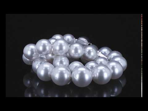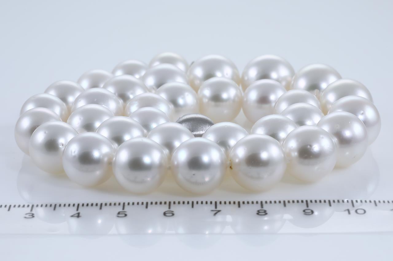 Pearl necklace with 33 graduated white, near round South Sea Pearls of 14.65mm - 12.00mm. 18ct white gold clasp with diamonds. Length: 45cm. With Certificate#413051. (New)