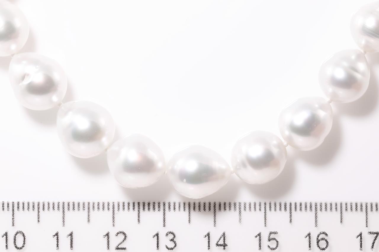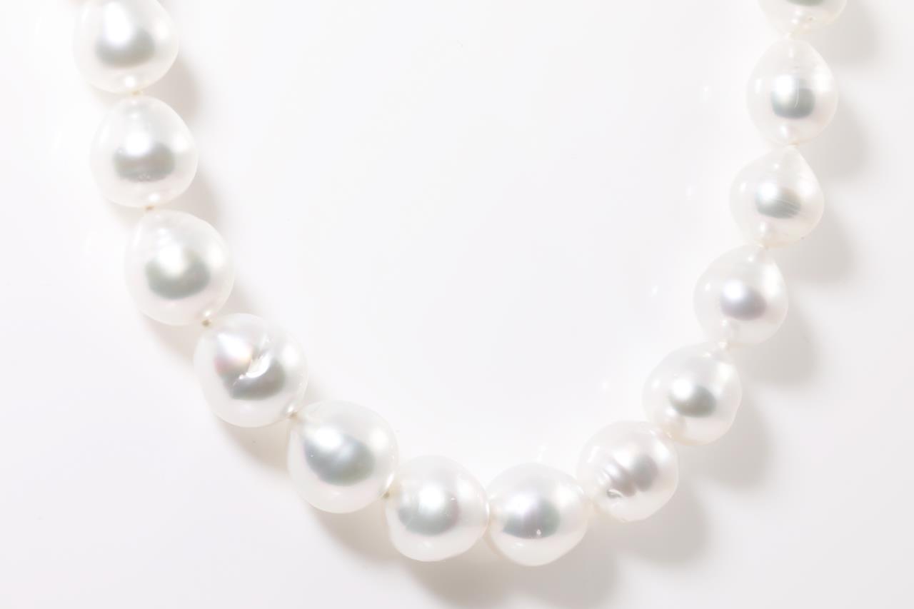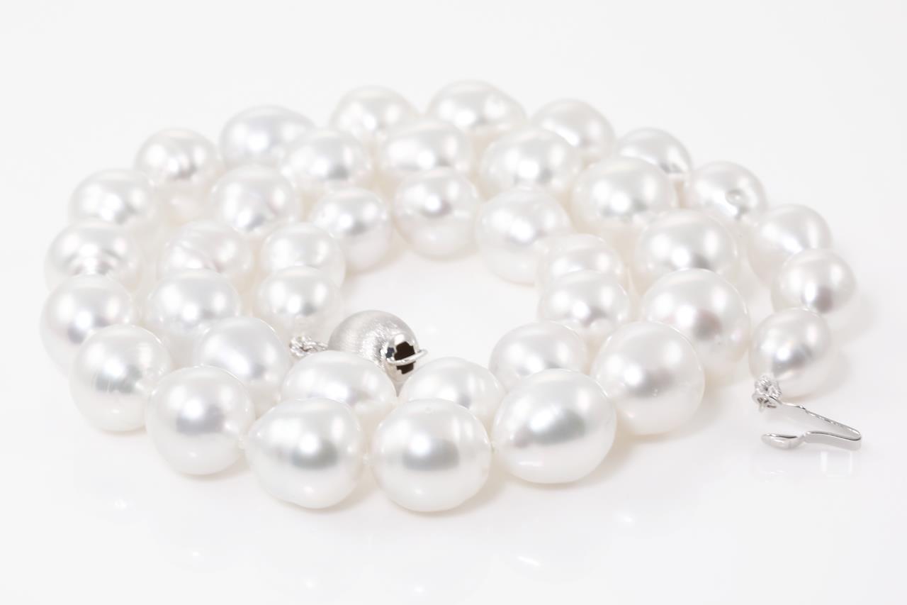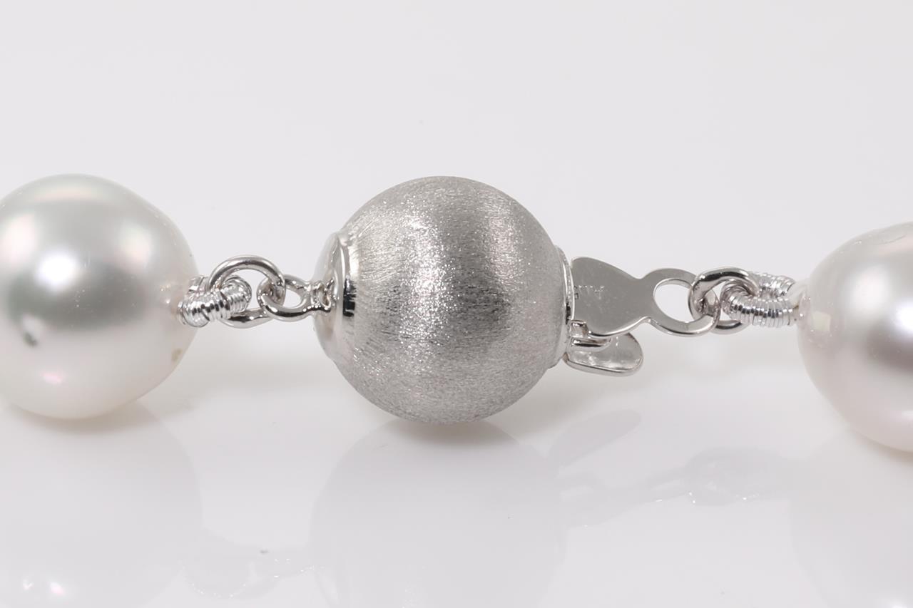 Pearl necklace with 39 Australian South Sea circle Pearls of 8.3mm-11.2mm. 14ct white gold clasp. Length: 45.5cm. Weight: 55.3g. (New)