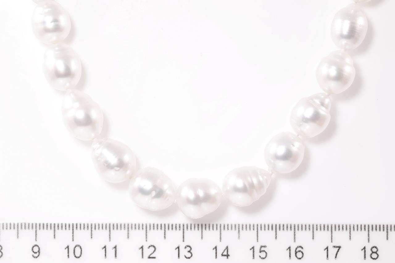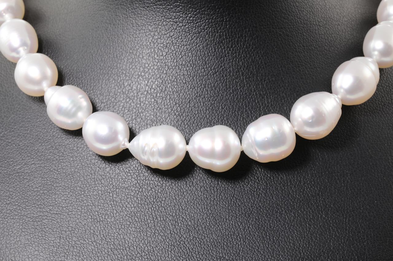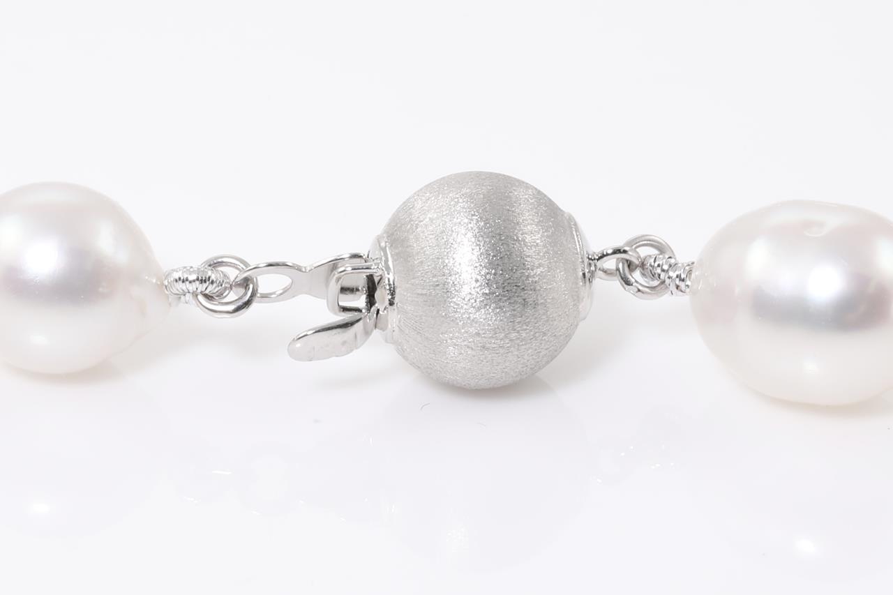 Pearl necklace with 35 Australian South Sea circle Pearls of 8.0mm-11.1mm. 14ct white gold 8mm matte finish clasp. Length: 45cm. Weight: 55.5g. (New)
