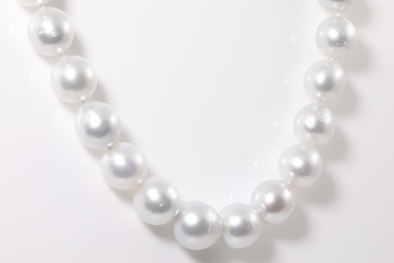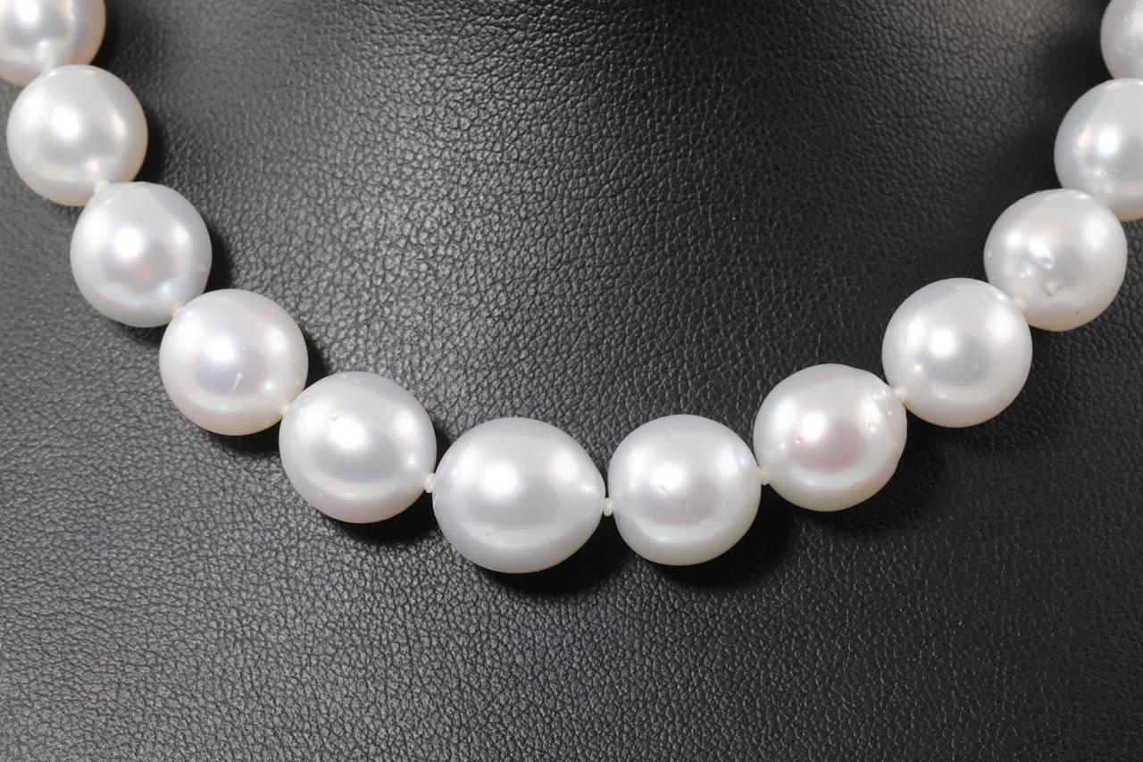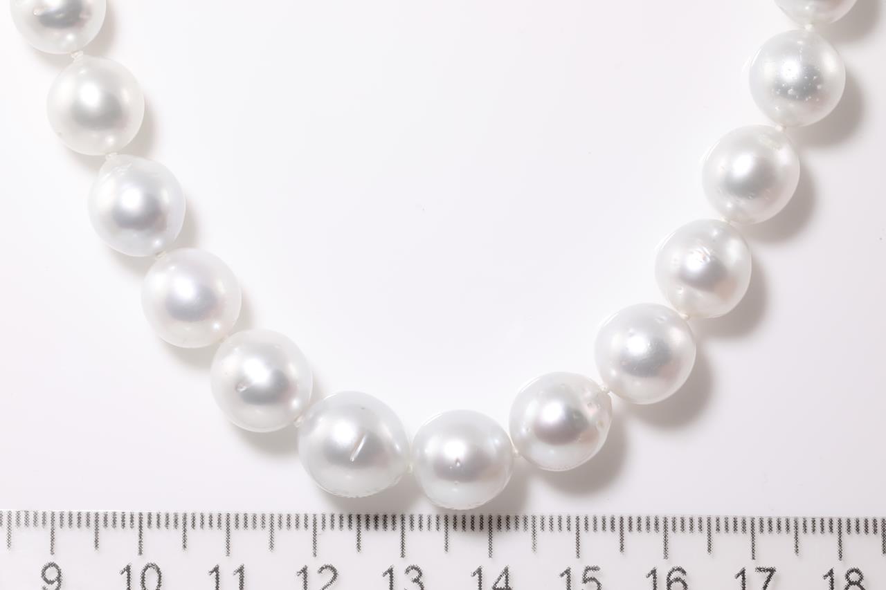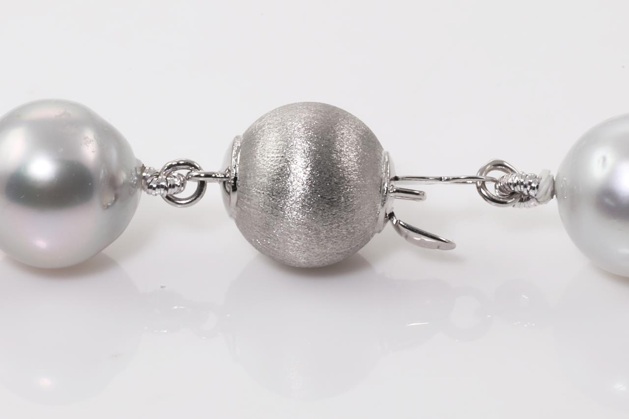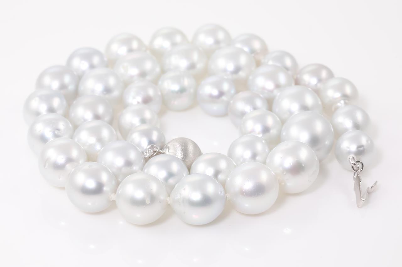 Pearl necklace with 39 Australian silver South Sea Pearls of 9.0mm-11.9mm. 14ct white gold clasp. Length: 45cm. Weight: 62.7g. (New)