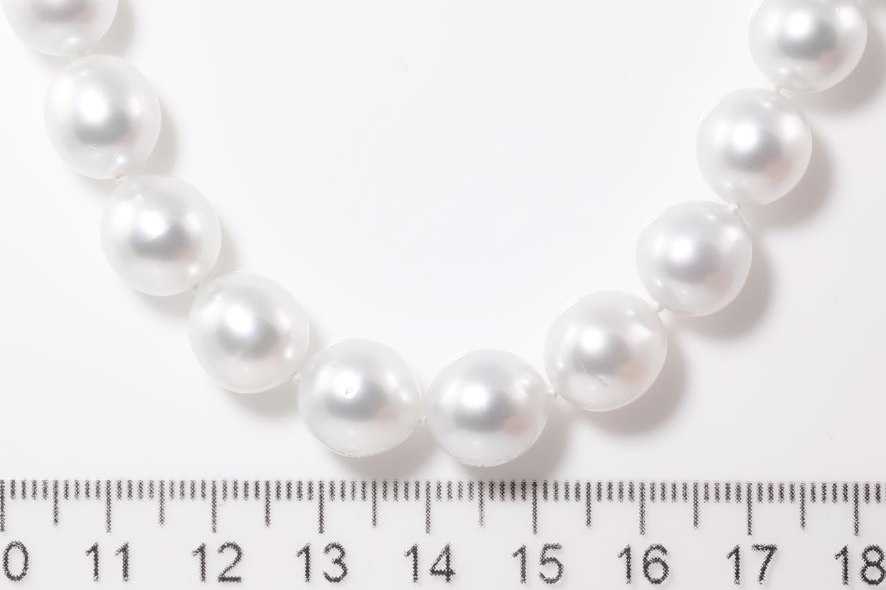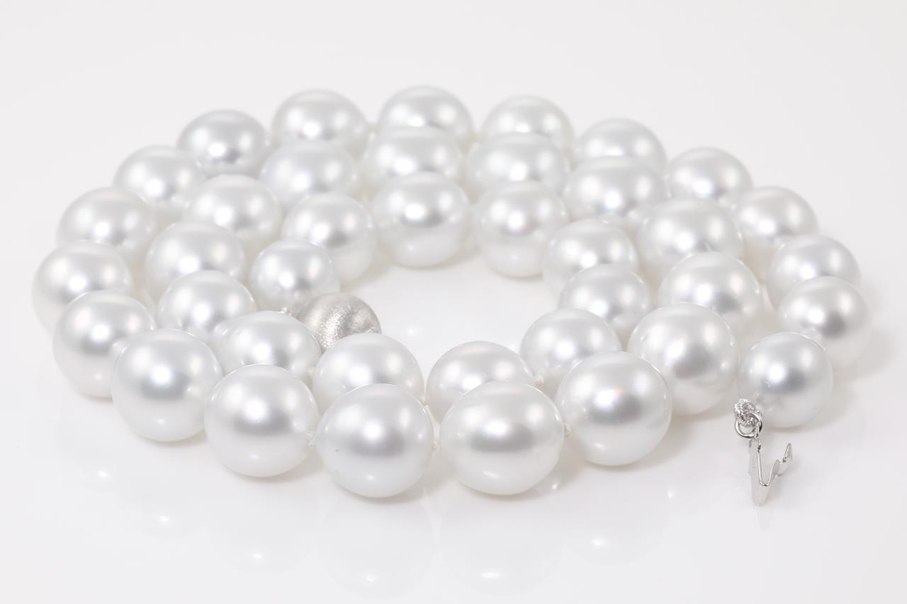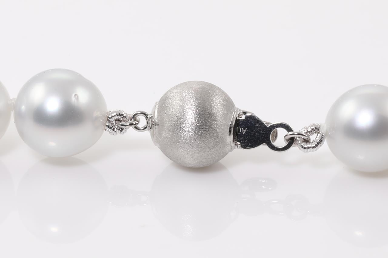 Pearl necklace with 39 Australian South Sea Pearls of 9.1mm-10.9mm. 14ct white gold clasp. Length: 46cm. Weight: 63.4g. (New)