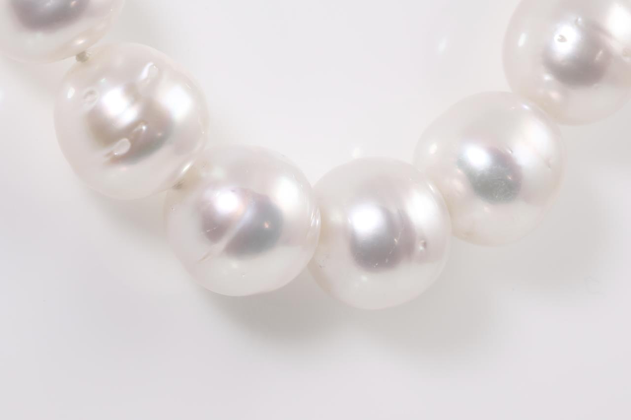 Pearl Necklace with 37 near round to ringed South Sea Pearl Strand of 10-12mm. 14ct white gold. Length 45cm. Weight 73.4g (As New)