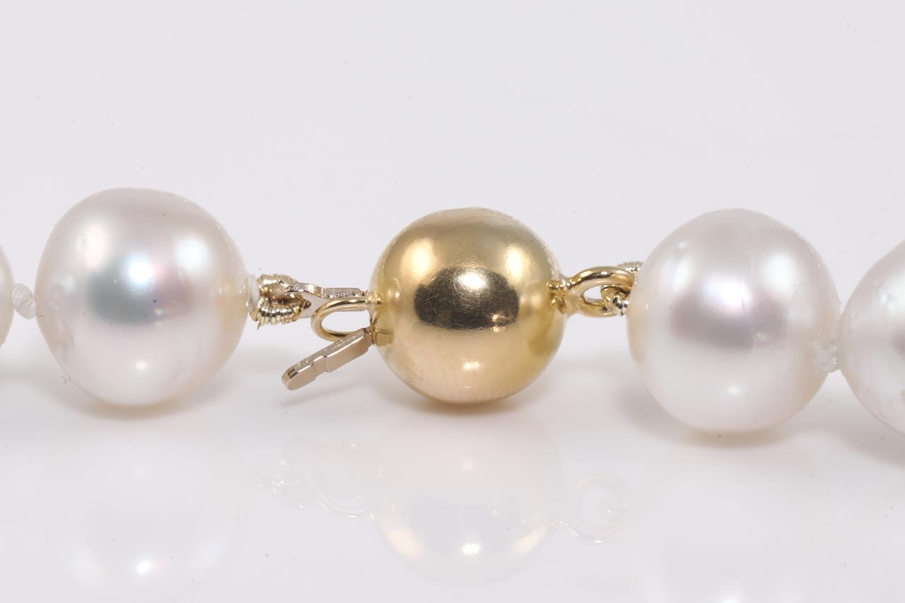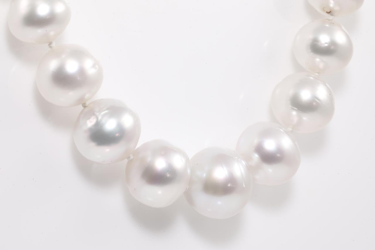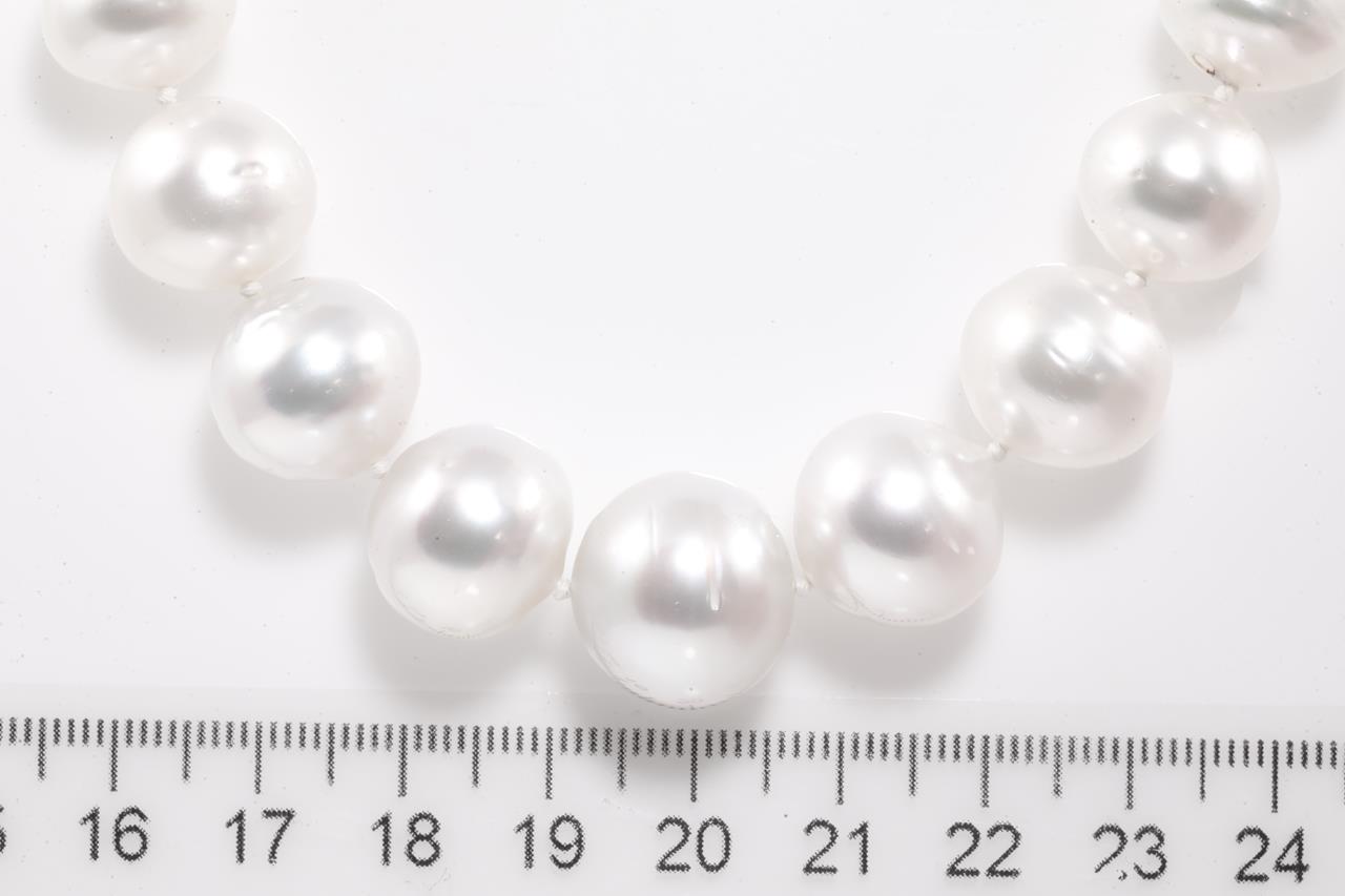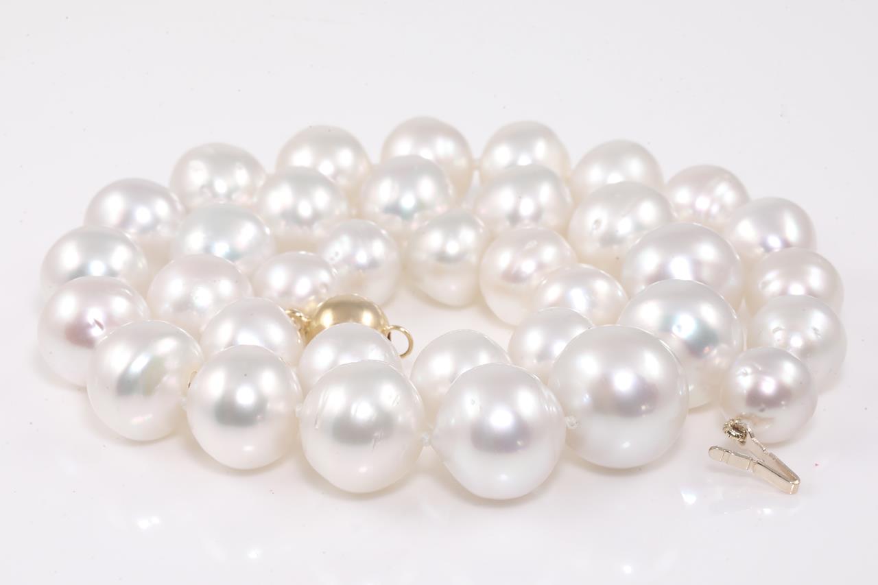 Pearl necklace with 35 graduated Australian South Sea pearls of 16.2mm-11.0mm. With 18ct yellow gold clasp. Length: 48cm. Weight: 105.2g. (New)
