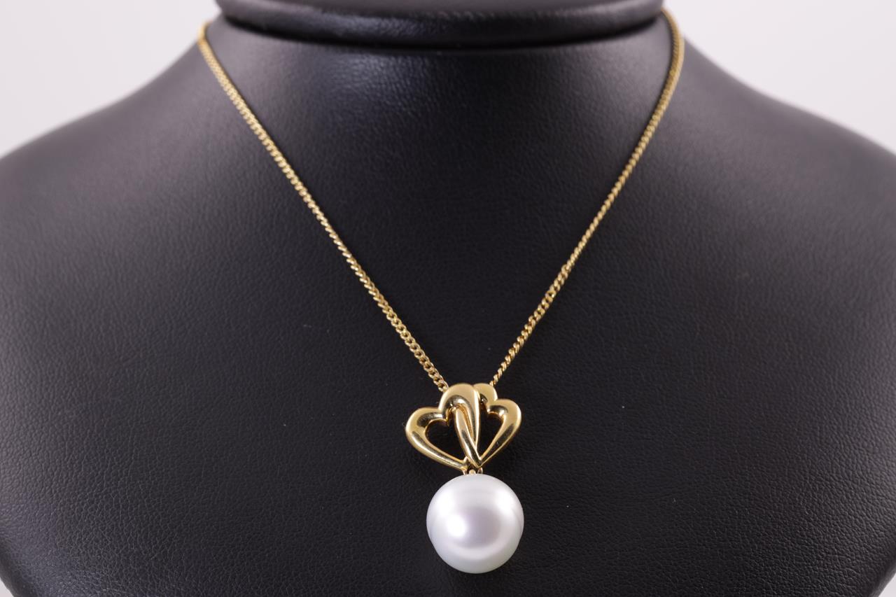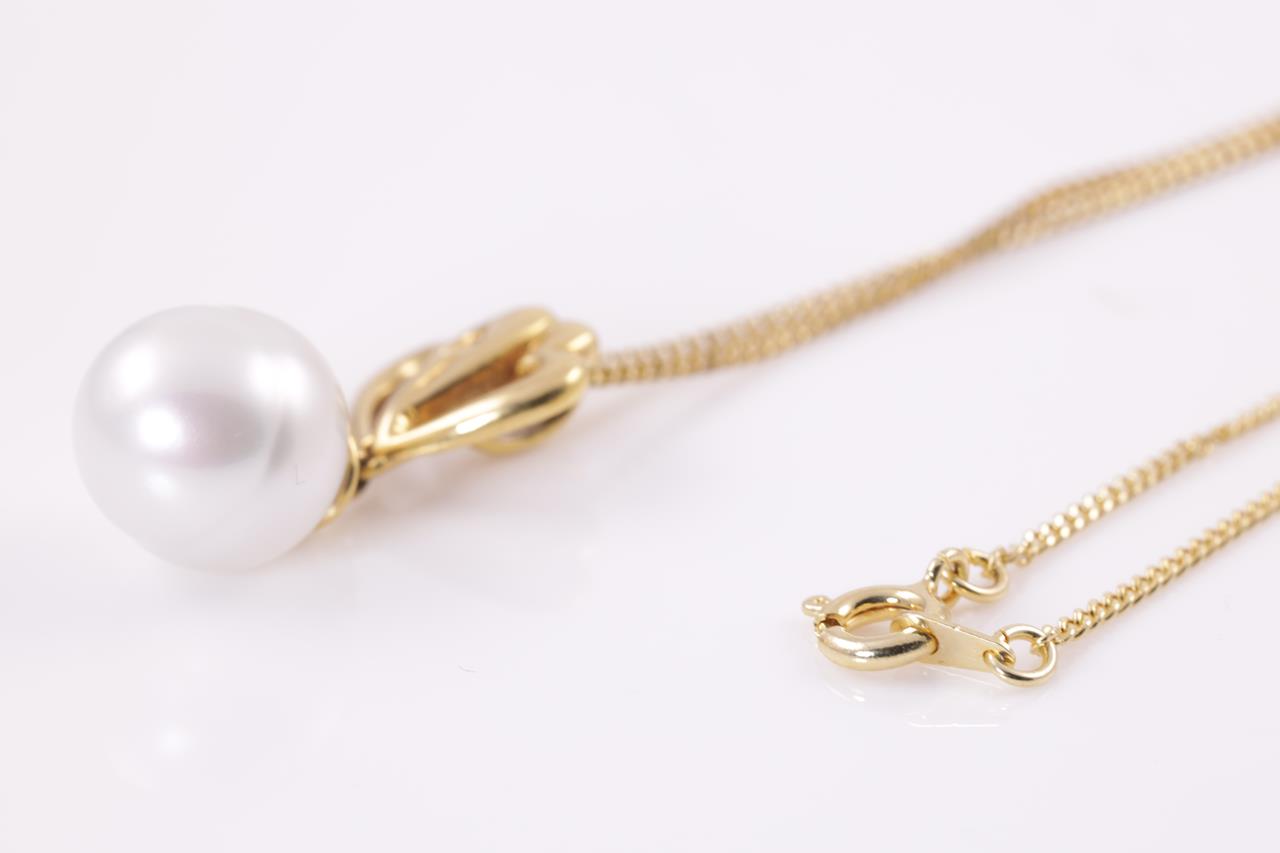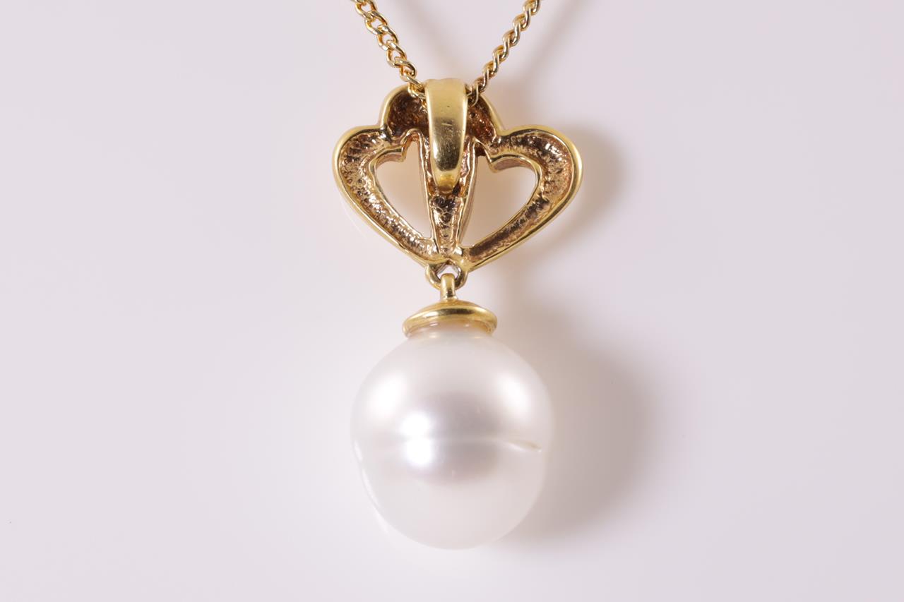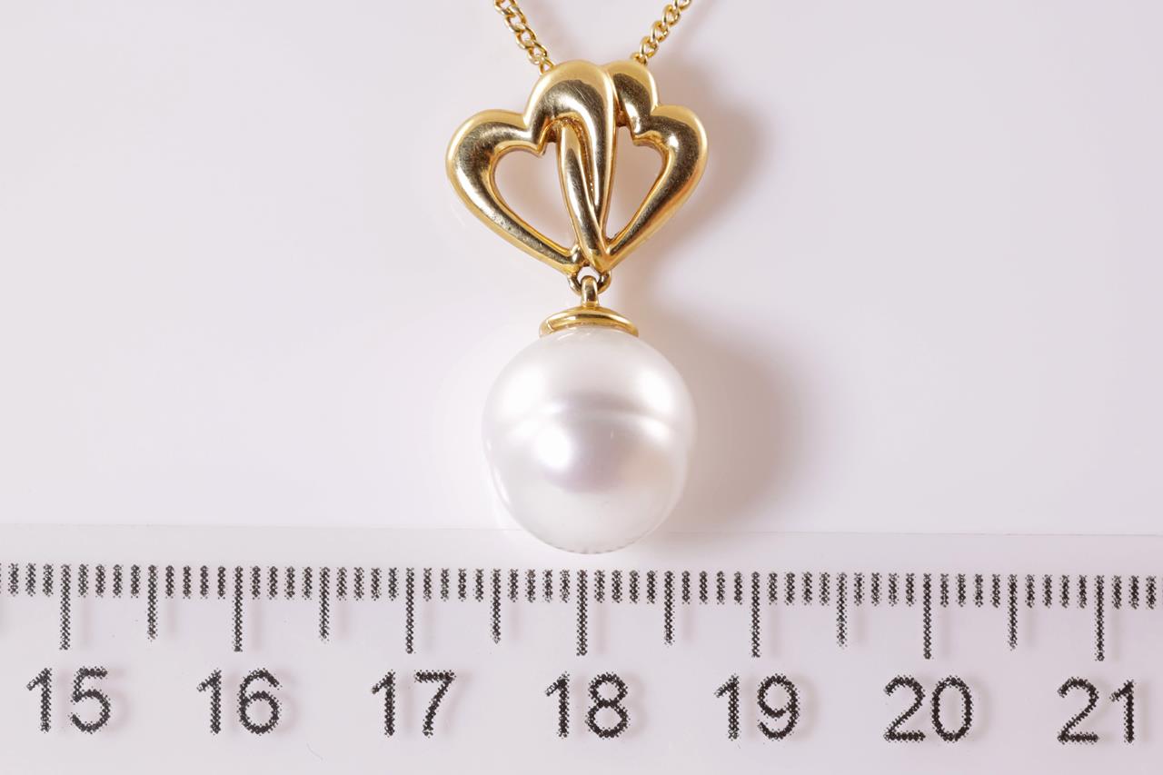 Pearl Pendant with ringed white South Sea Pearl of 12.3mm. 18ct yellow gold. With display chain (base metal). Weight 6.2g. (As new)
