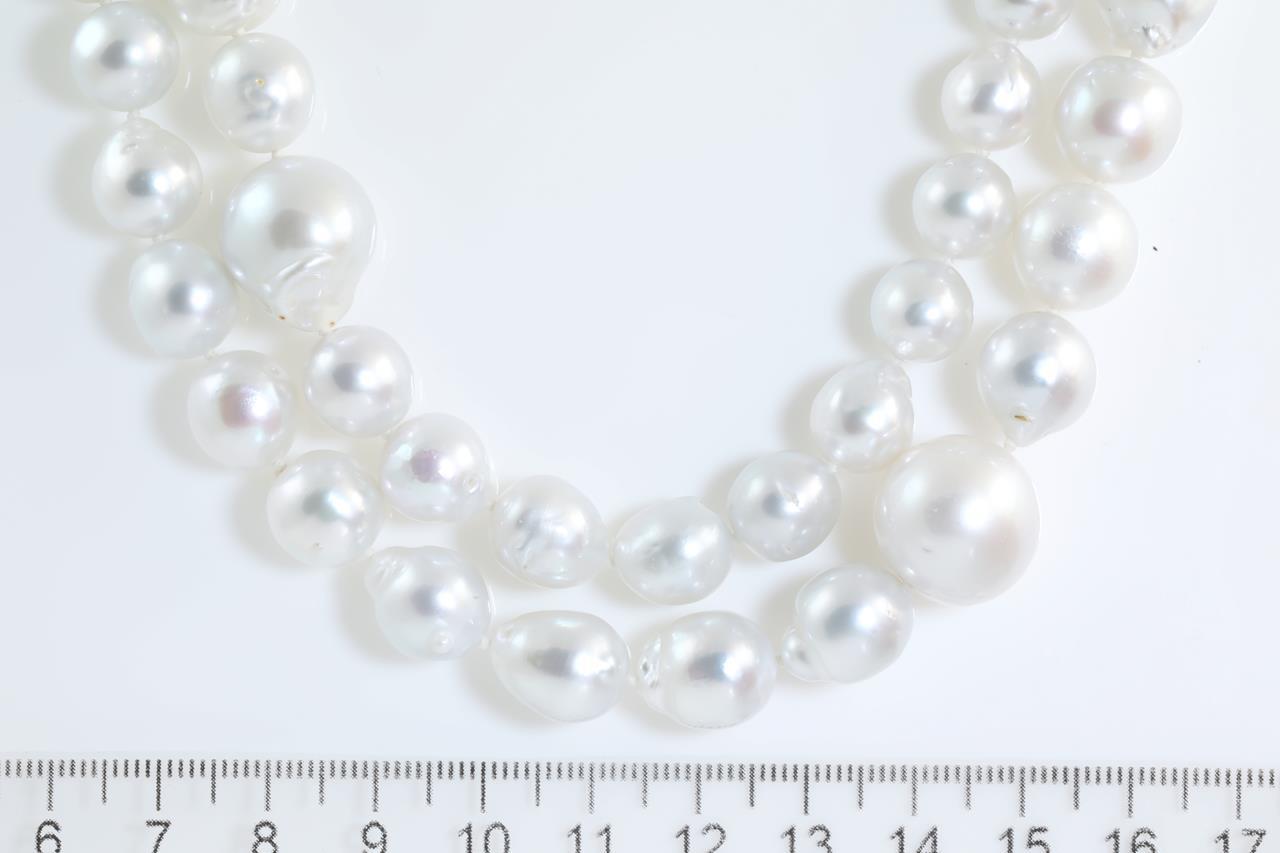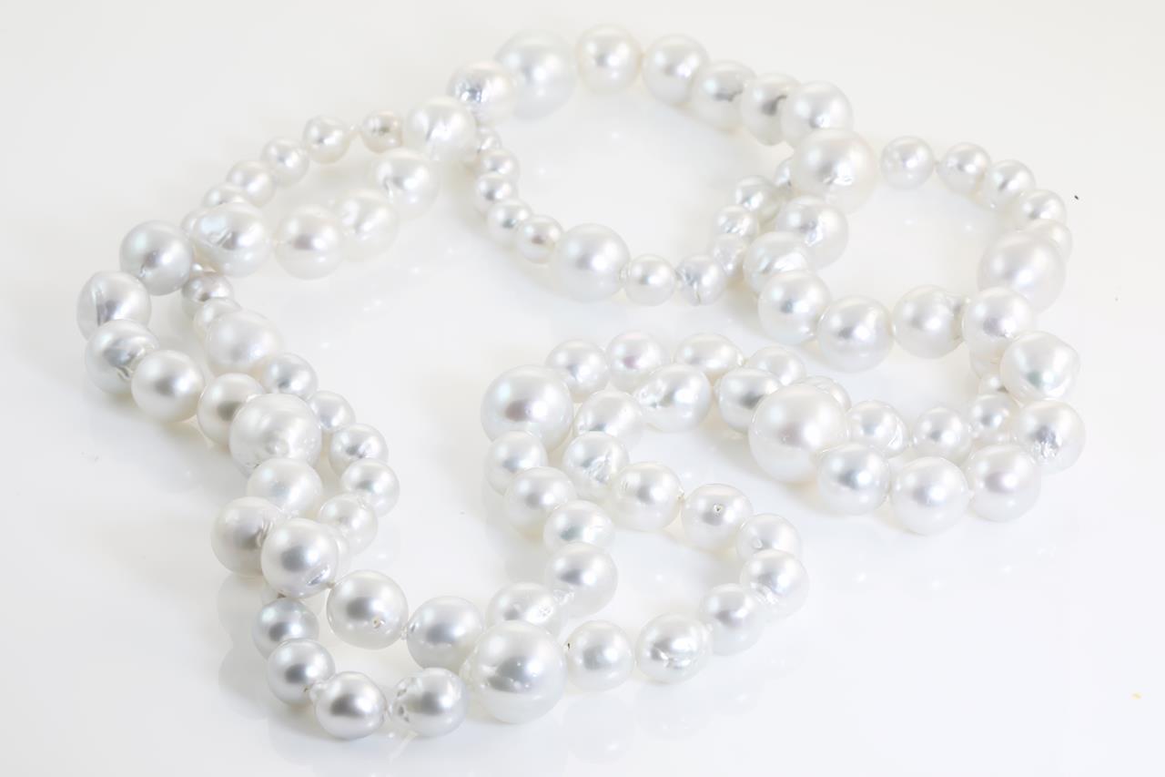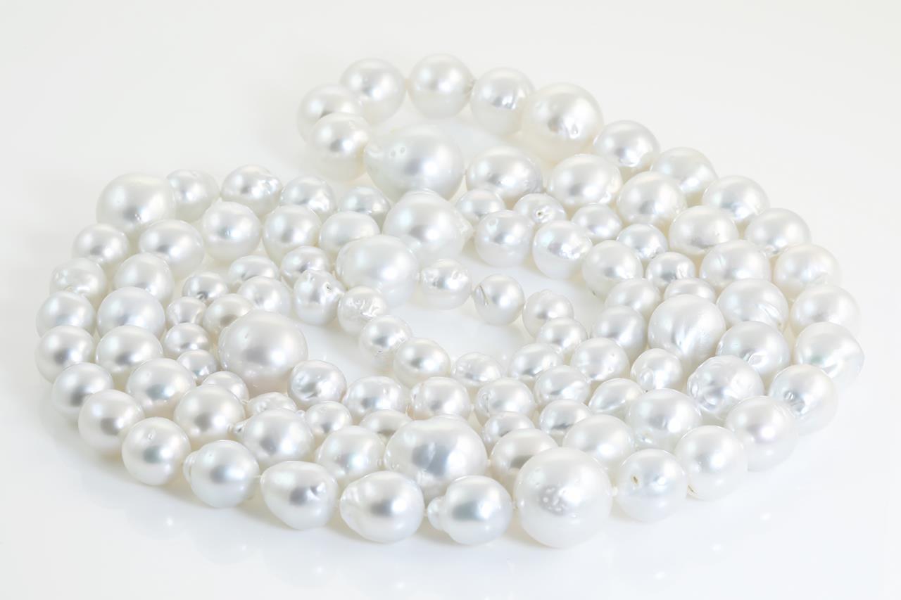 Pearl rope necklace with 107 South Sea Pearls of 7.8mm-15.6mm. Length 130cm. Weight: 209.5g. With Certificate #414062. (New)