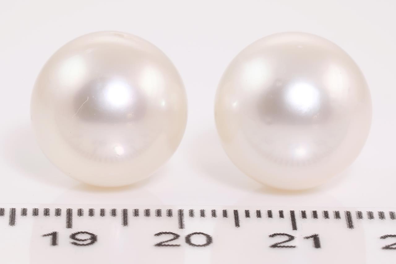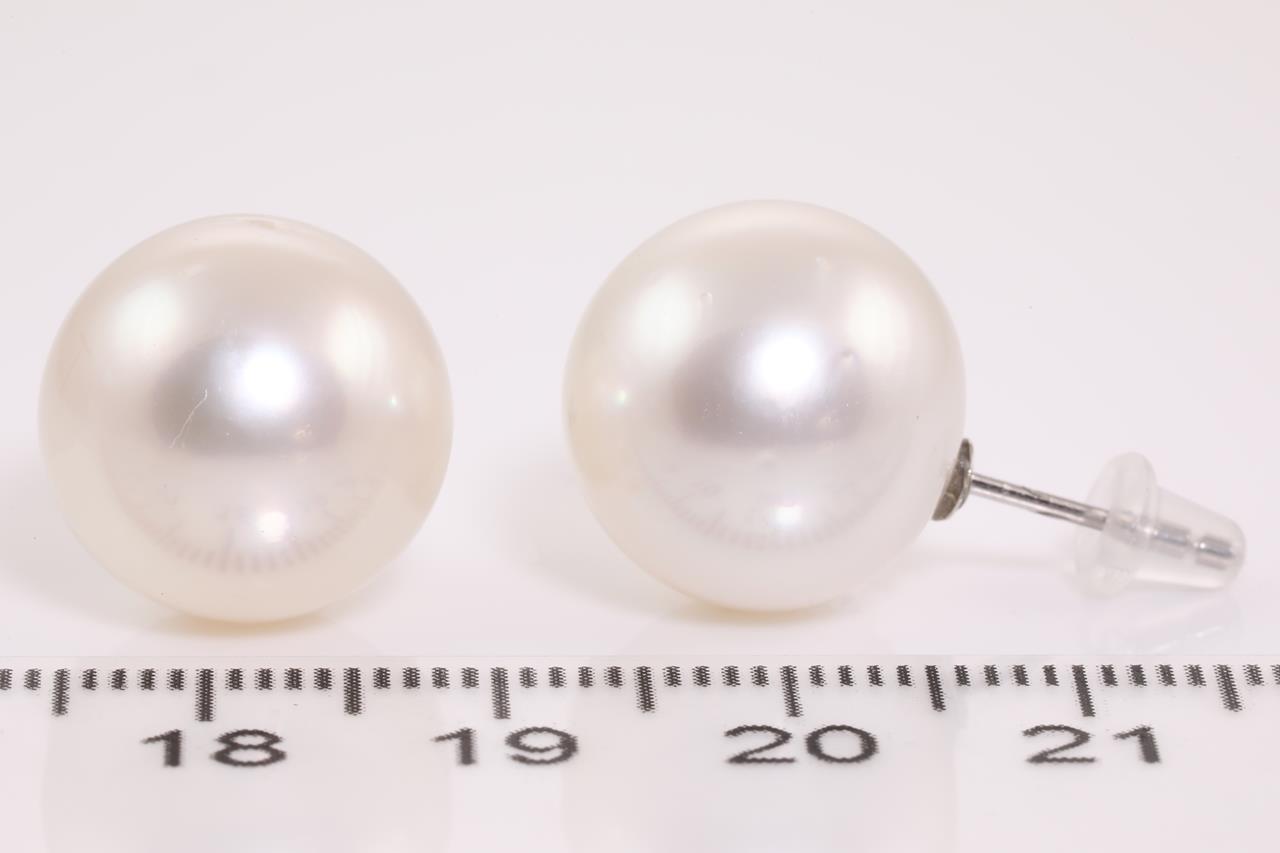 Pearl stud earrings with South Sea Pearls of 14mm. Platinum with silicon backs. Weight: 8.8g. (Pre-owned)