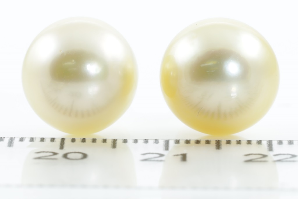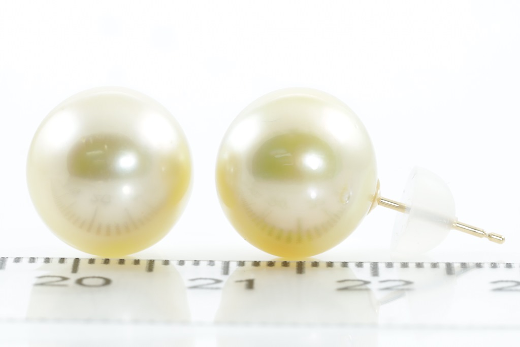 Pearl stud earrings with Golden South Sea Pearls of of 11.5mm-11.7mm. 18ct yellow gold with silicon backs. Weight: 4.5g. (Pre-owned)