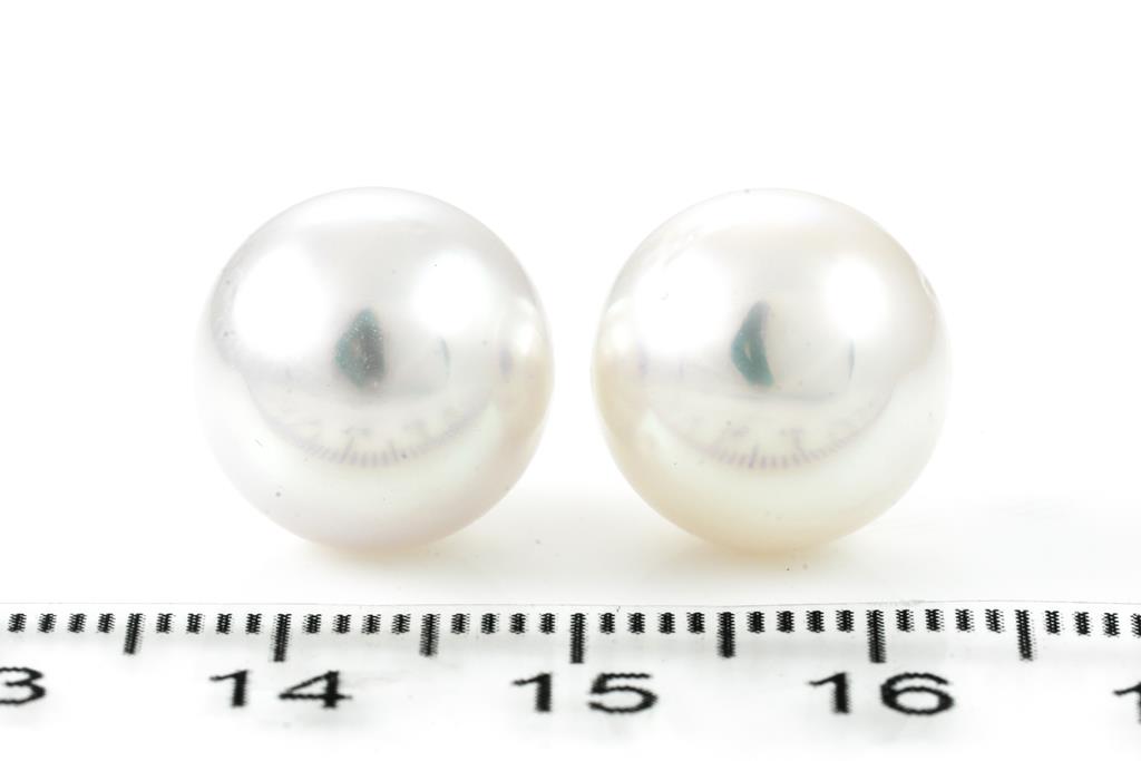 Pearl earrings with button shape South Sea Pearls of 12mm. 18ct white gold. Weight: 5.6g. (Pre-owned)