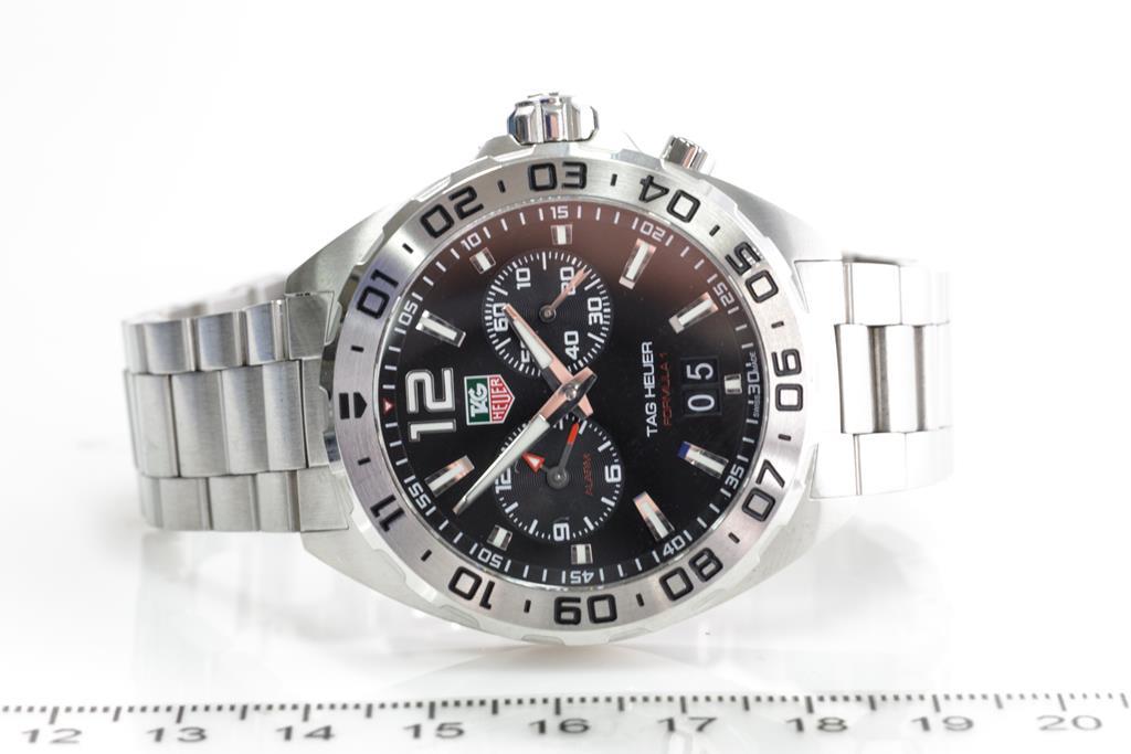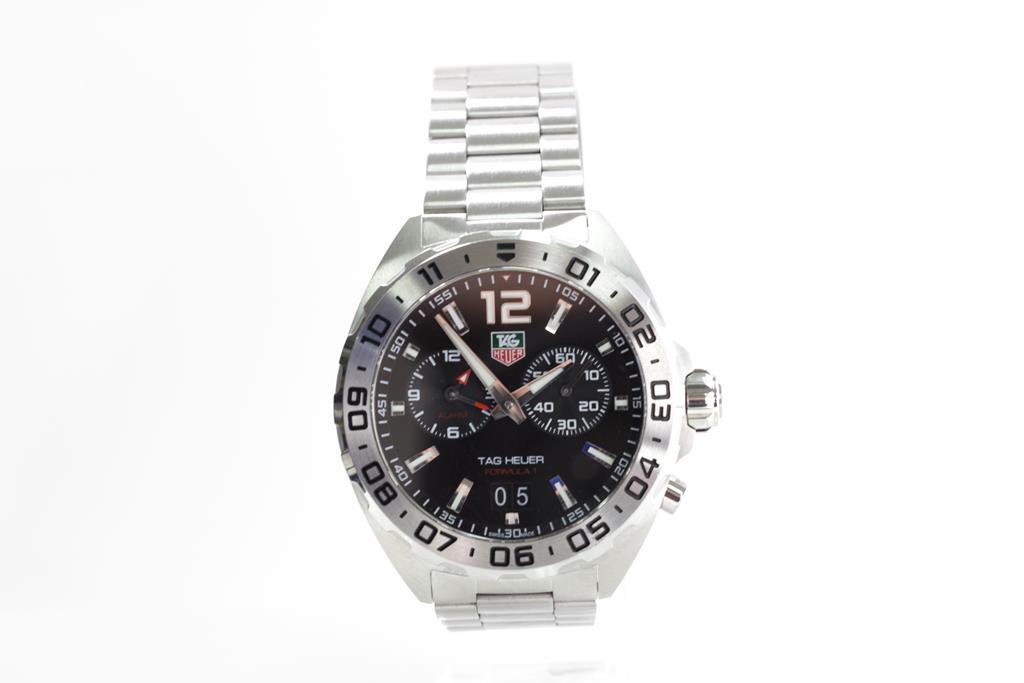 TAG Heuer Formula 1 stainless steel quartz mens watch. Black dial, date, case diameter: 41mm, wrist size: 20cm, Swiss made. Ref# WAZ111A.BA0875. With TAG Heuer stainless steel bracelet and clasp. With Certificate of Authenticity, TAG Heuer International Warranty Card dated 24/12/2018 and TAG Heuer box. 3 month FSA warranty. (Pre-owned)