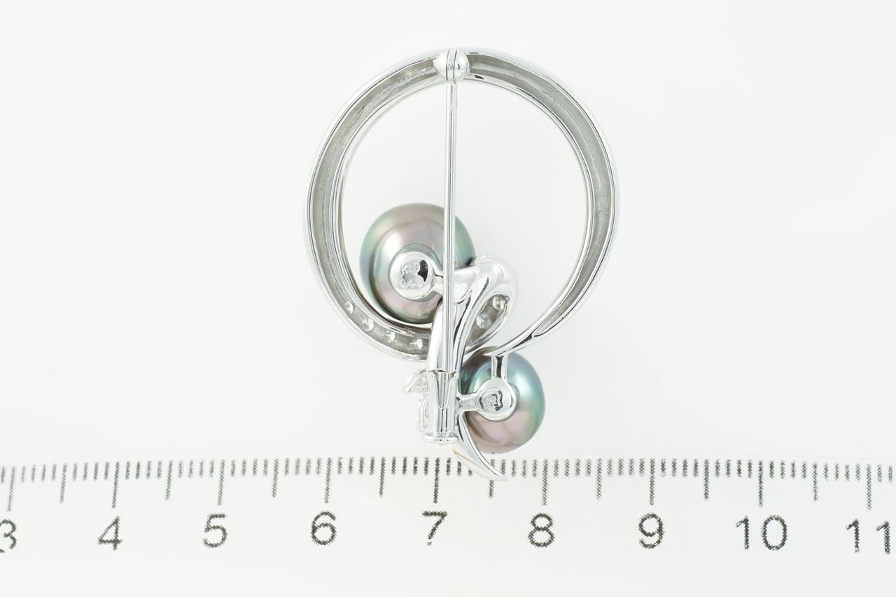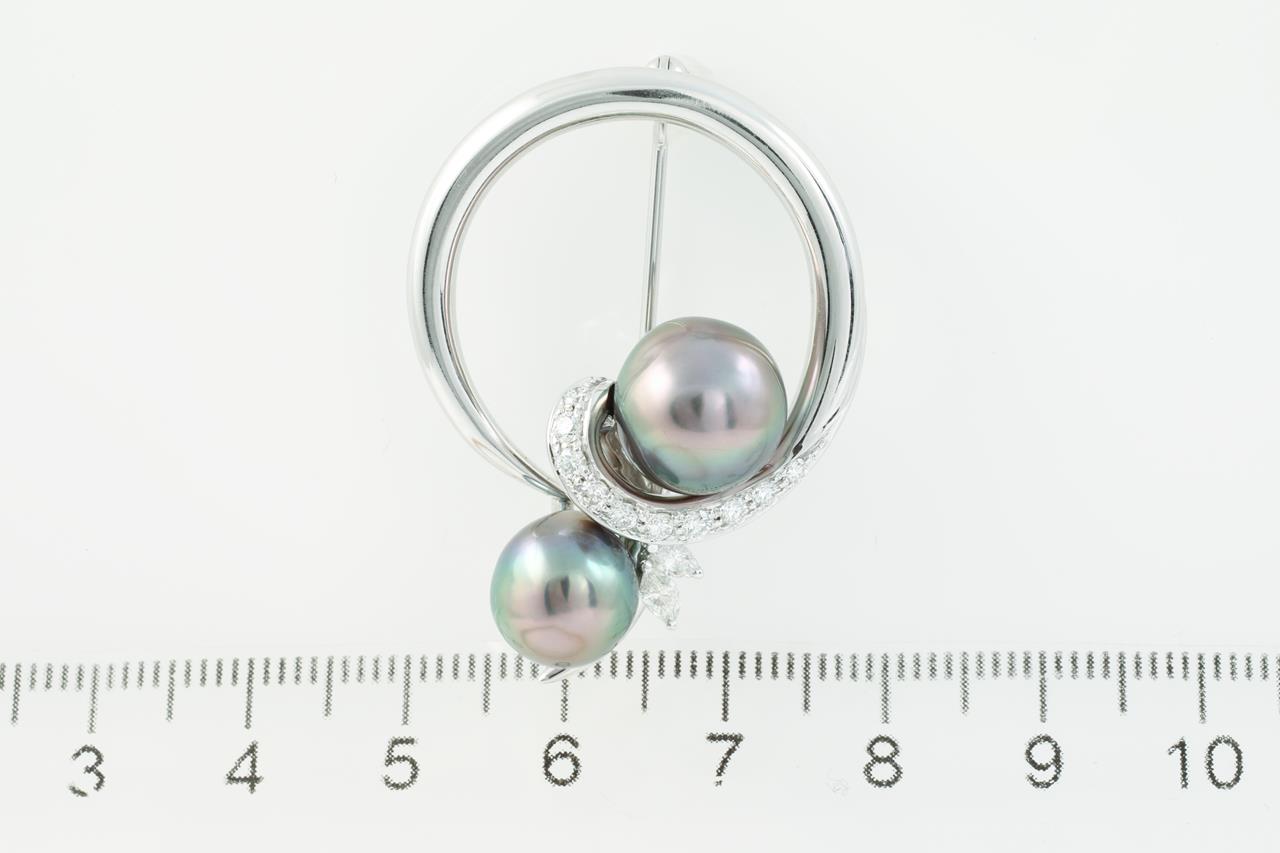 Pearl and Diamond brooch with Tahitian Pearl of 10.8mm-9.6mm and Diamonds totalling 0.43cts (Estimated grading: G VS-SI). 18ct white gold. Weight: 12.2g. (Pre-owned)