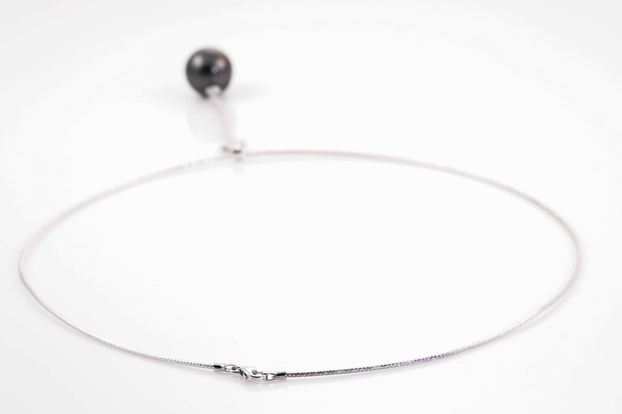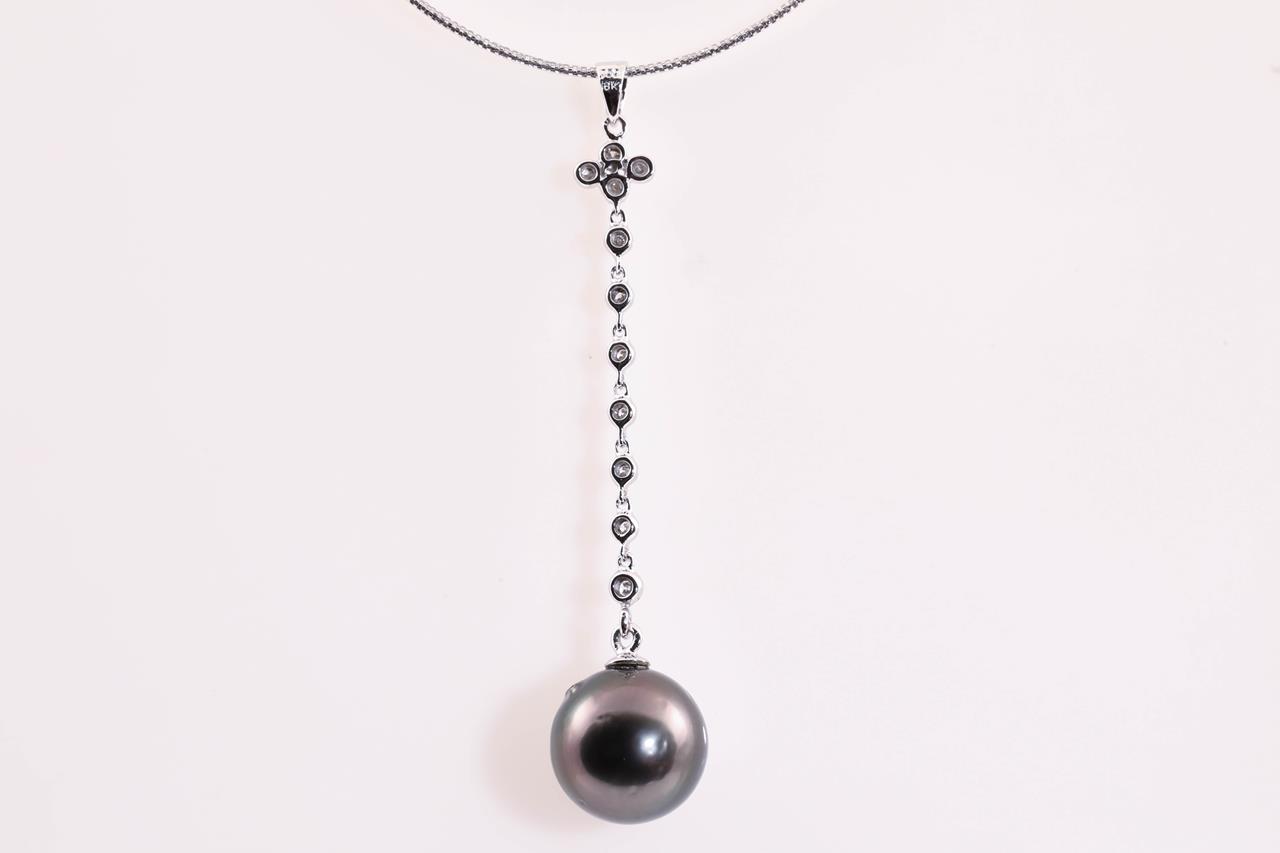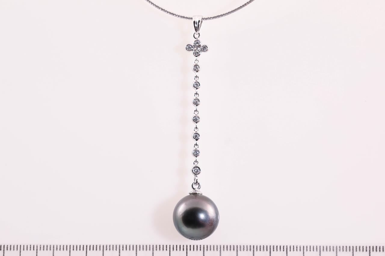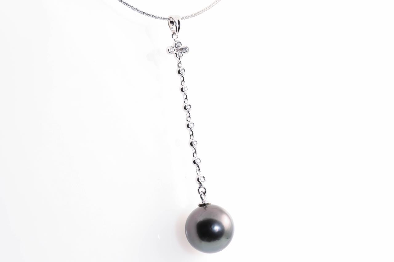 Tahitian Pearl and Diamond Necklace with 13.7mm diameter Pearl and round Diamonds totalling approximately 0.22cts. 18ct white gold with 41cm chain. Weight 5.6g. (Pre-owned)