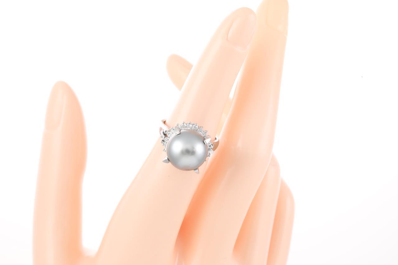 Pearl and Diamond ring with a Tahitian Pearl of 12mm and Diamonds totalling 0.40cts (Estimated grading: H SI-P1). Platinum. Ring size L1/2. Weight: 10.1g. (Pre-owned)