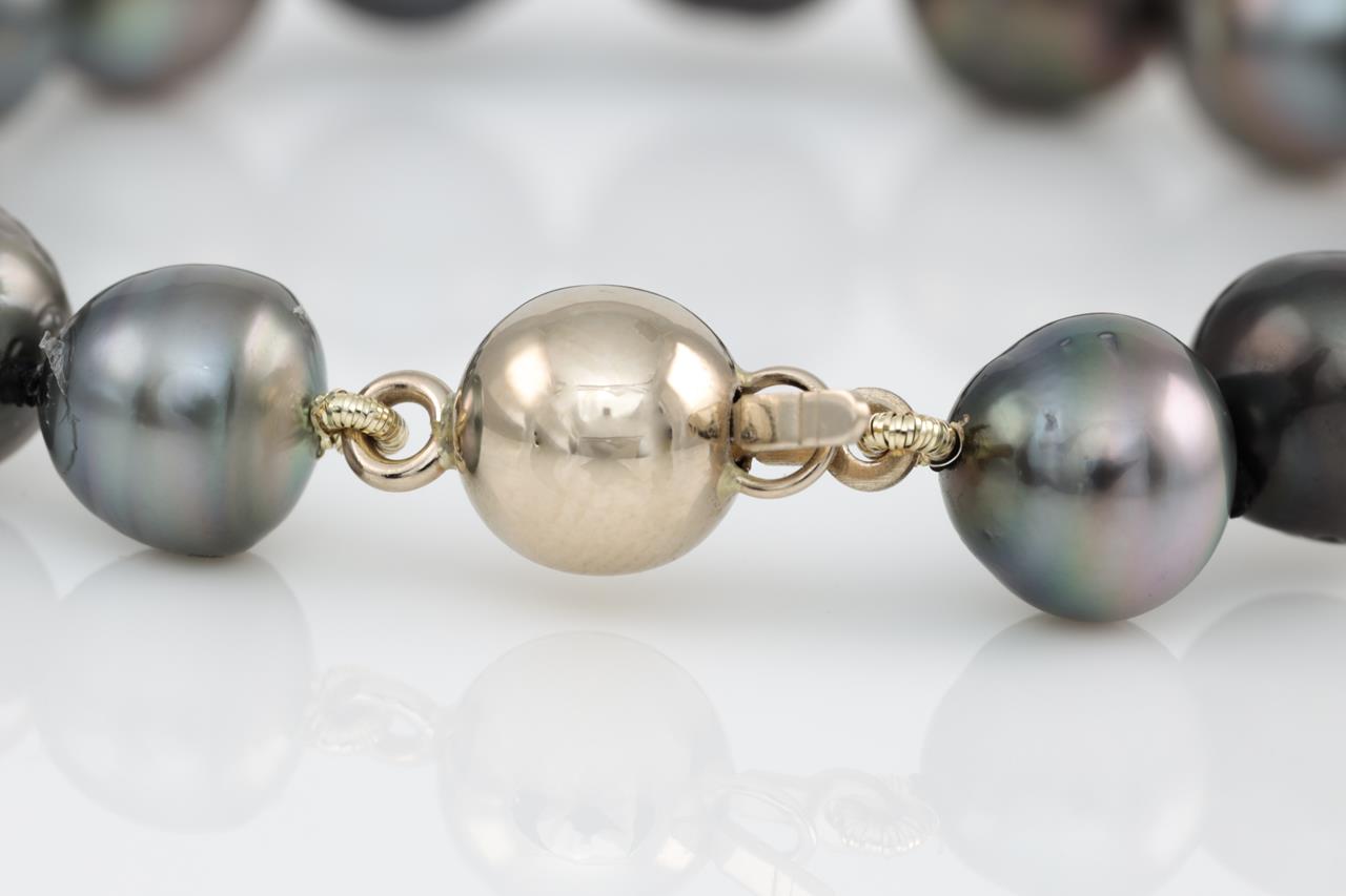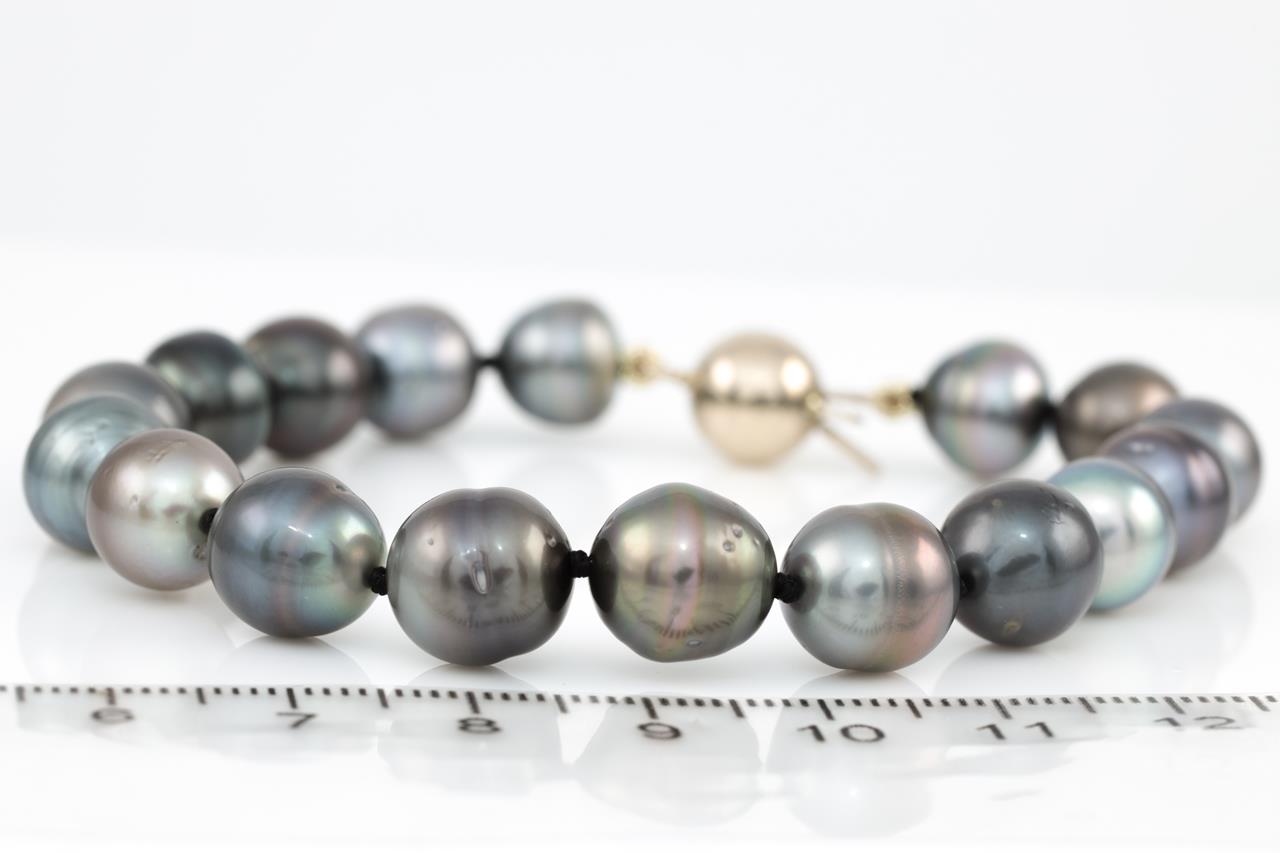 Pearl bracelet with 17 slightly graduated Tahitian Pearls of 9.0mm-10.2mm. 18ct yellow gold clasp. Length: 19.5cm. Weight: 17.8g. (Pre-owned)