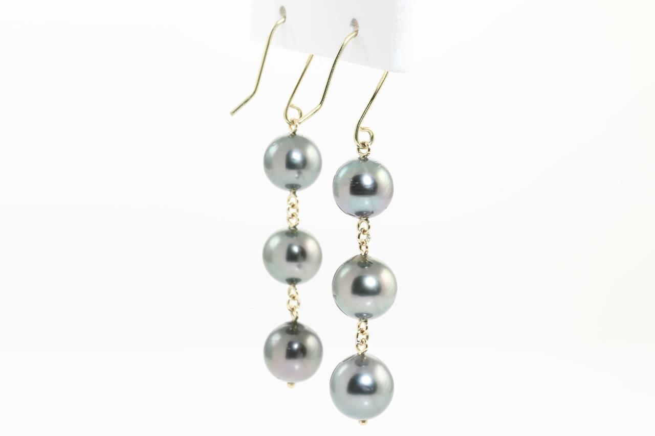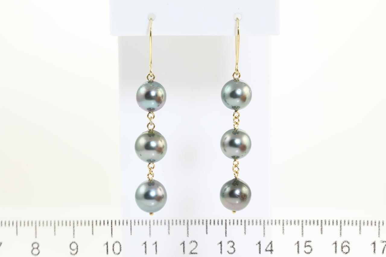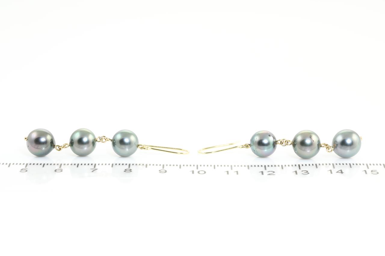 Pearl shepherds hook earrings with 6 Tahitian pearls of 8mm. 18ct yellow gold. Weight: 6.1g (New)