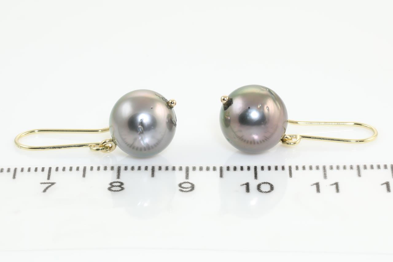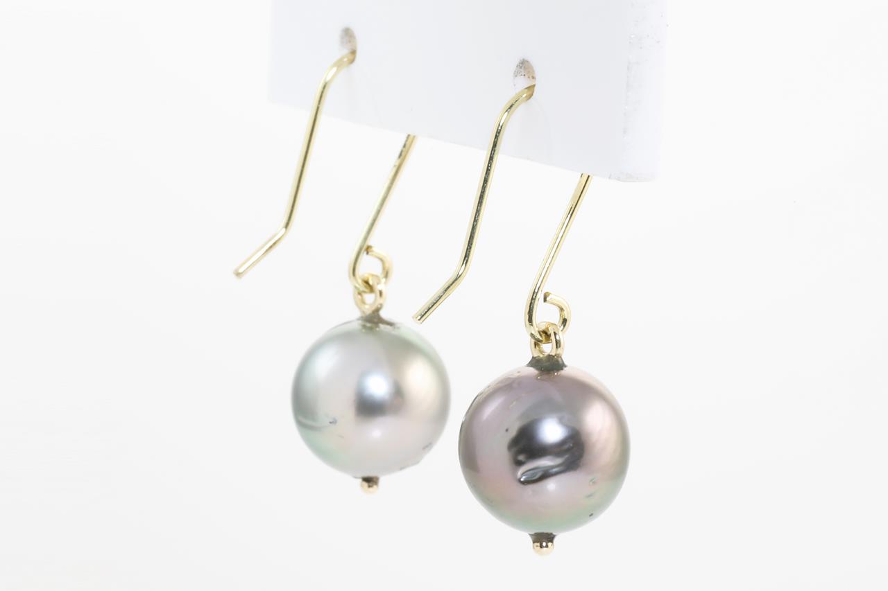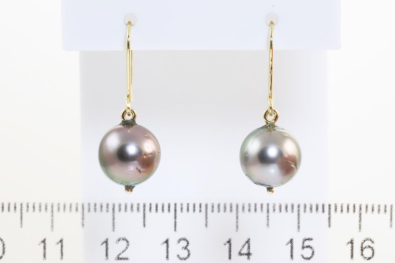Pearl shepherds hook earrings with Tahitan pearls of 10mm. 18ct yellow gold. Weight: 3.7g. (New)