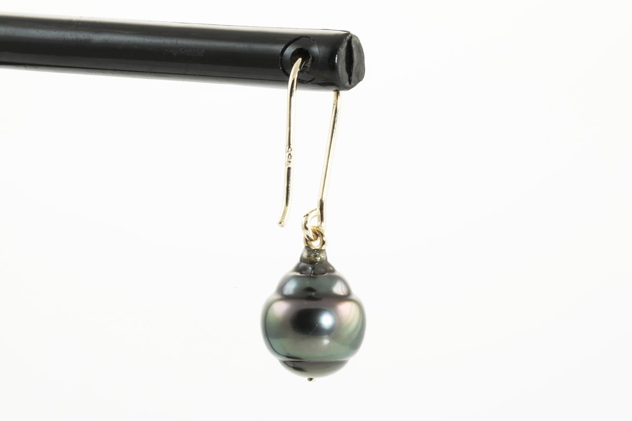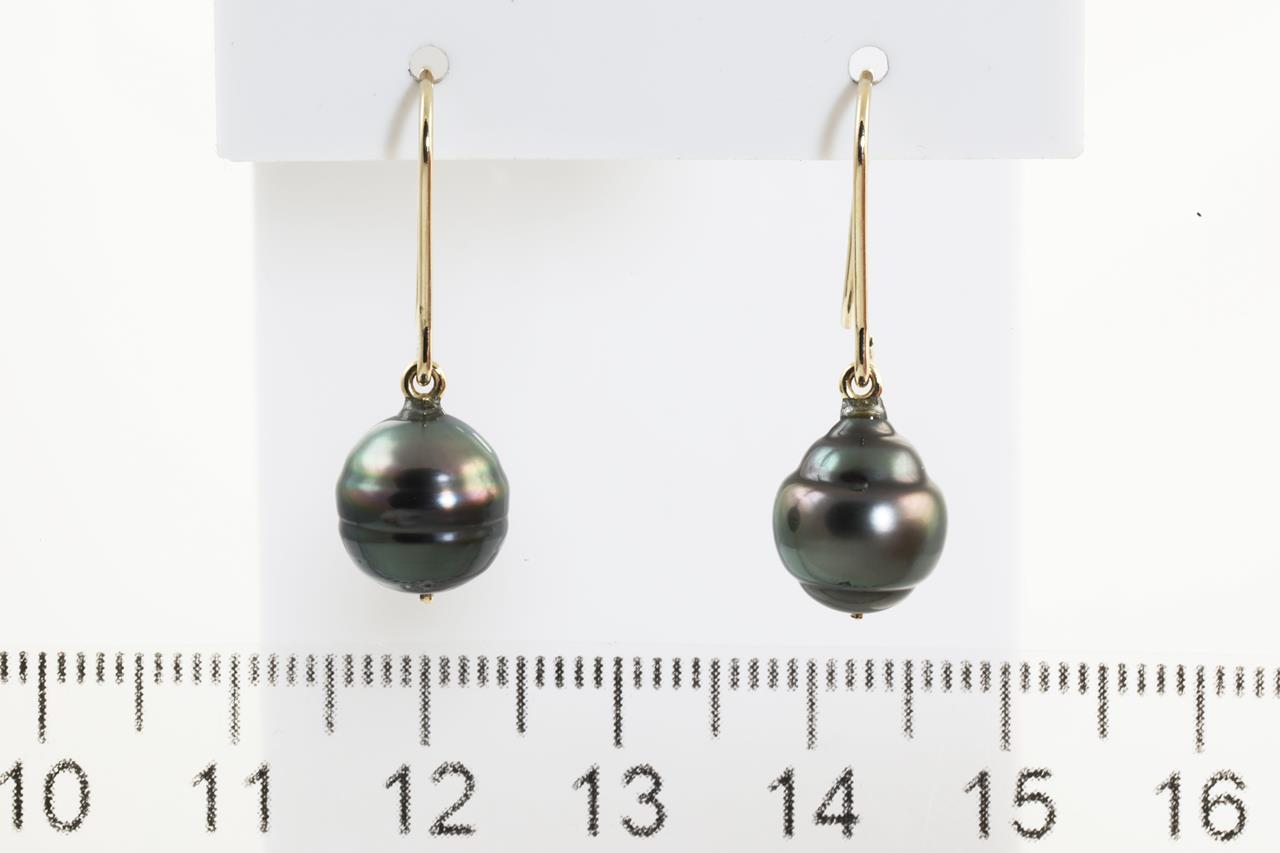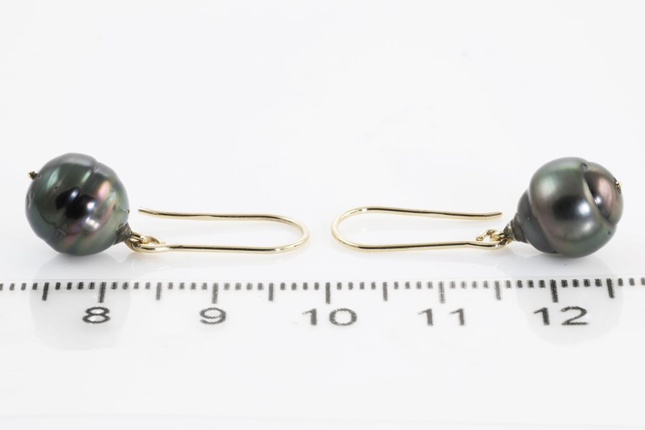 Pearl shepherds hook earrings with baroque Tahitian Pearls of 9.0mm. 9ct yellow gold. Weight: 2.8g (New)