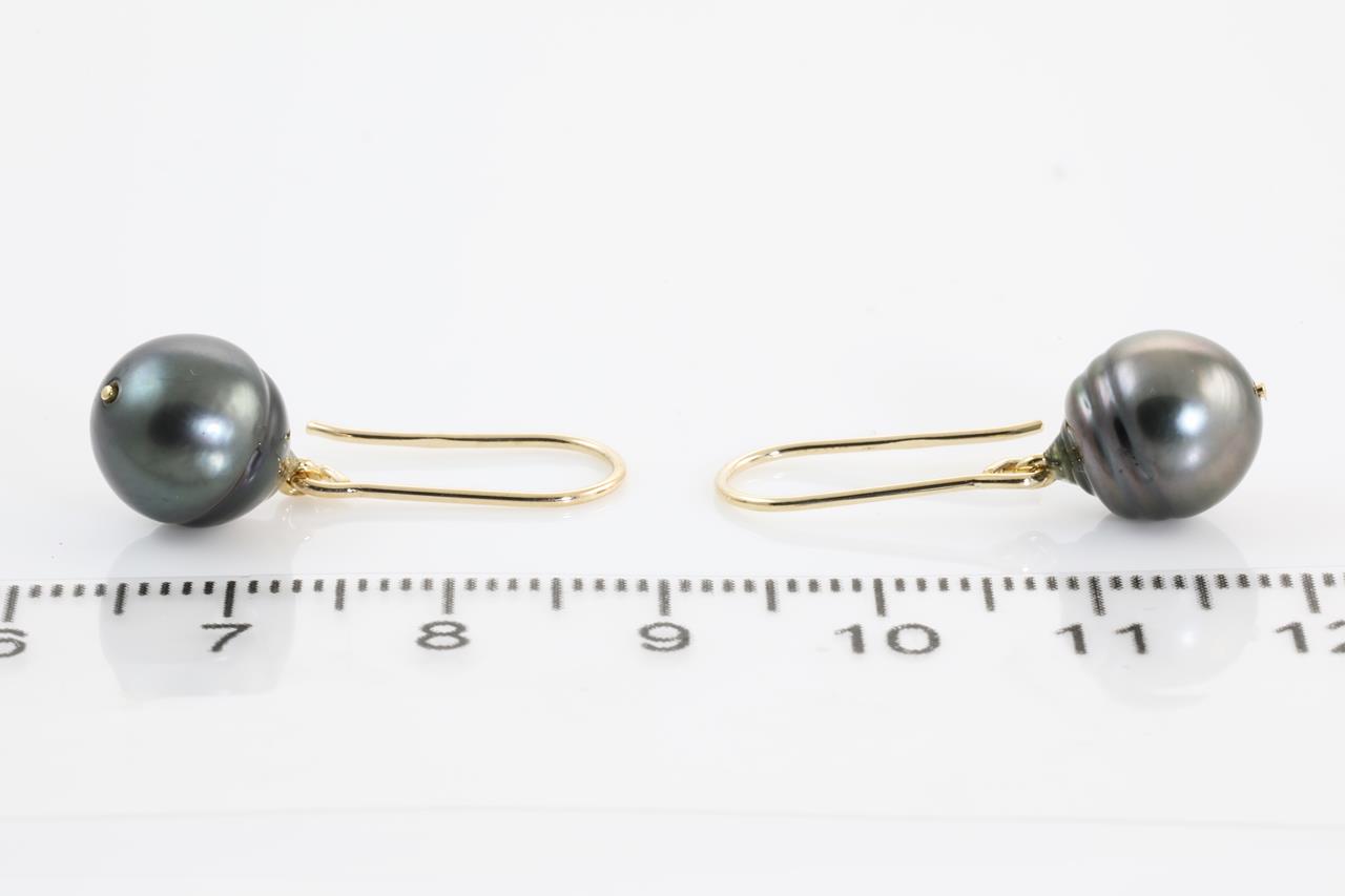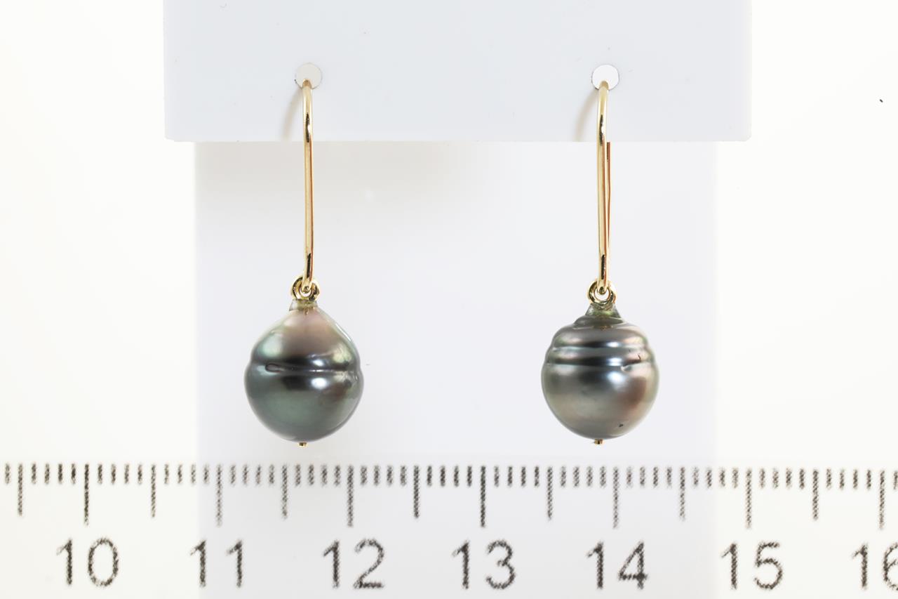 Pearl shepherds hook earrings with baroque Tahitian Pearls of 9.1mm. 9ct yellow gold. Weight: 2.8g (New)
