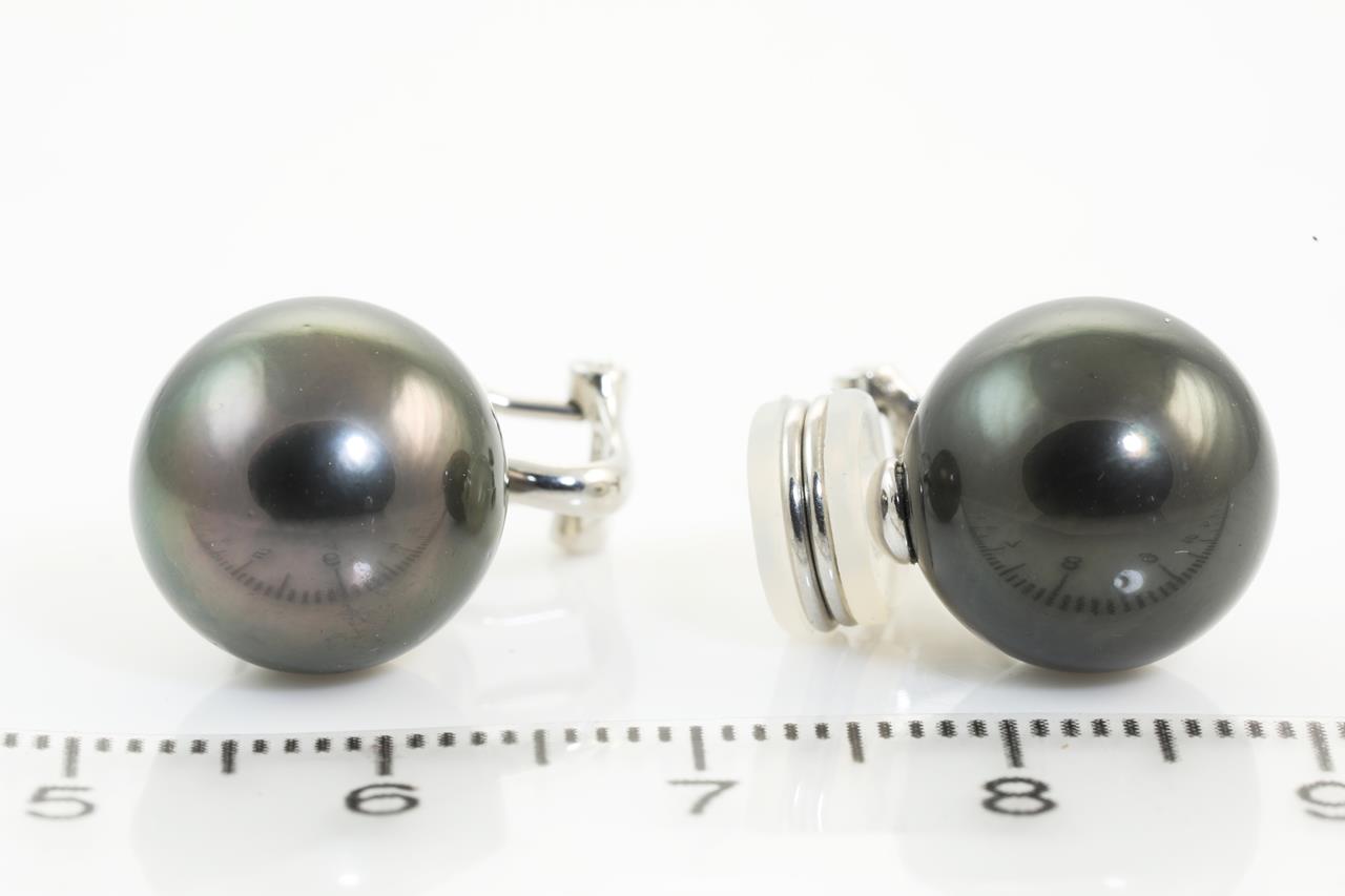 Pearl clip-on earrings with Tahitian Pearls of 12.5mm. Platinum. Weight: 8.3g (Pre-owned)