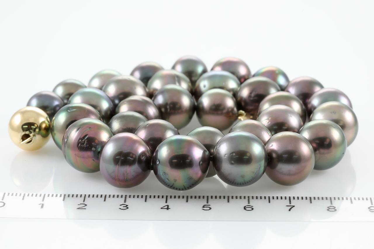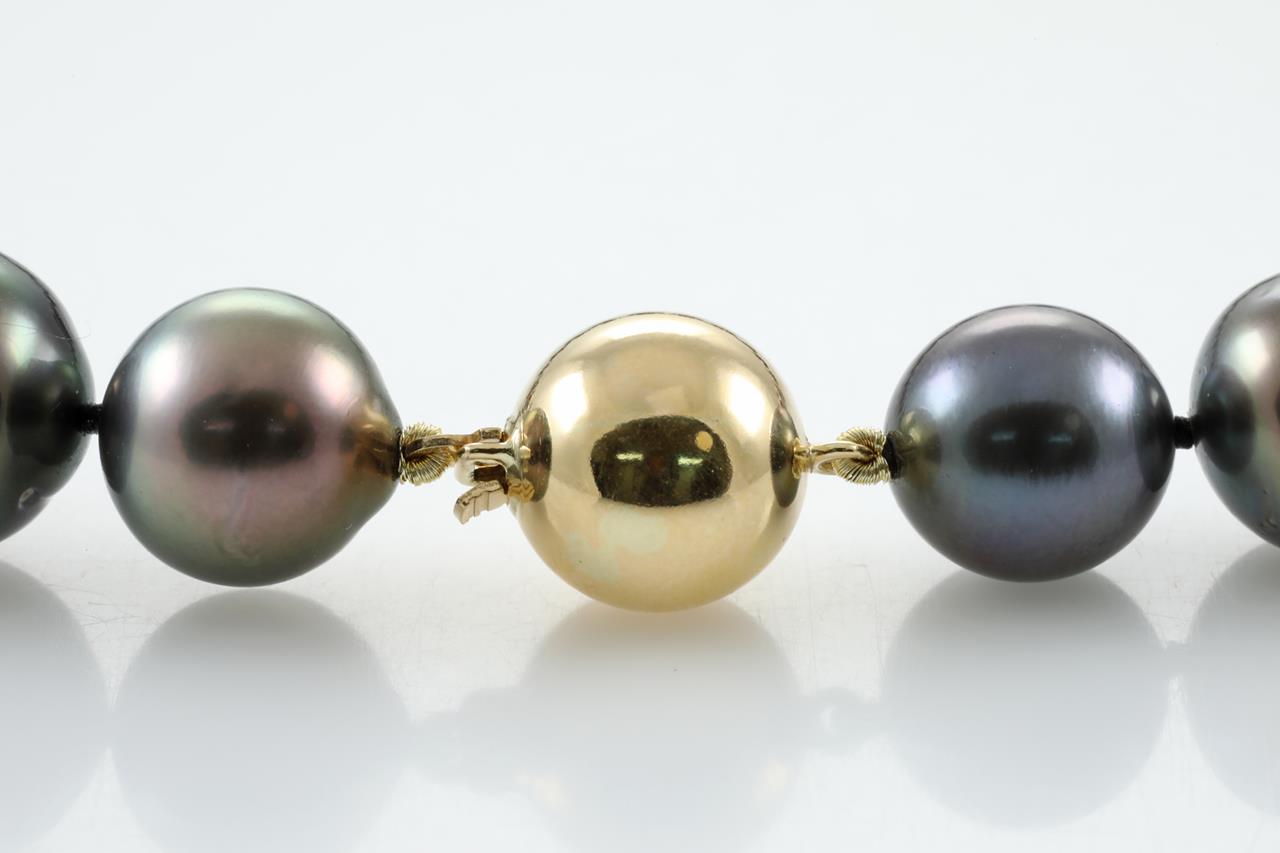Pearl necklace with Tahitian pearls of 11mm-14mm. With 18ct yellow gold Kohle clasp. Length: 42cm. (Pre-owned)